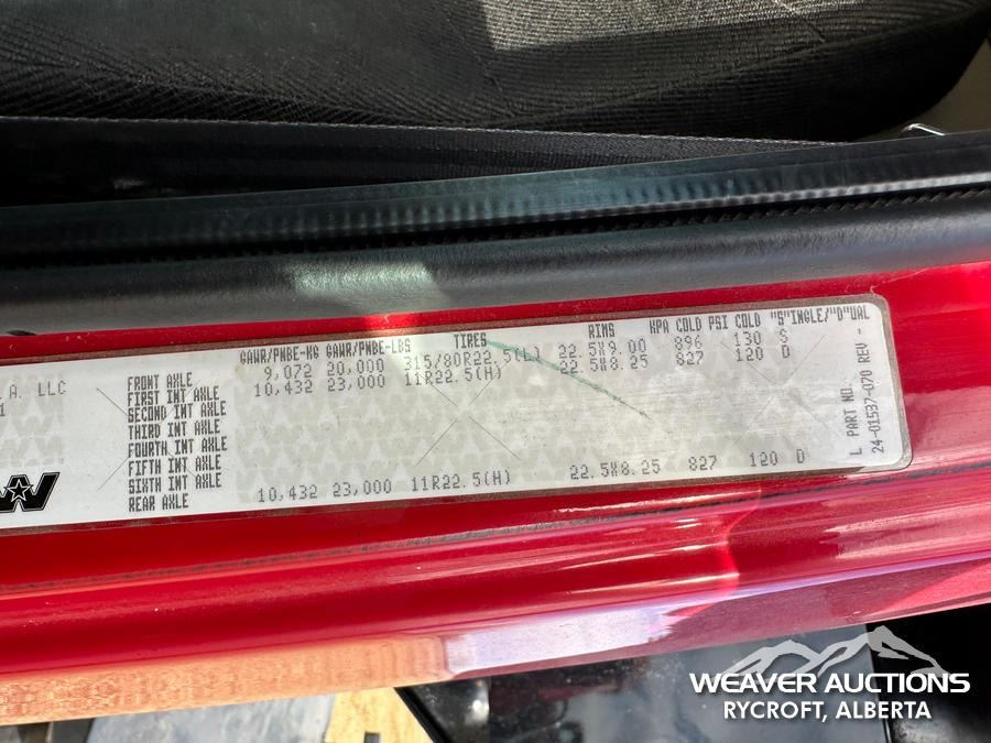 Specifications: DETROIT DD13 6 CYLINDER 12.8 470 HP ENGINE, ENGINE BRAKE, EATON FULLER RTLO-16918B 18-SPEED MANUAL TRANSMISSION, DOUBLE DIFFERENTIAL LOCKS, MERITOR RT-46-160 DRIVE AXLES, 4.30 AXLE RATIO, AIR RIDE CAB, AIR RIDE SUSPENSION, 214 IN WHEELBASE, DICKEY -JOHN CONTROL POINT, PTO, LANAU SANDER BOX, LIFT GROUP