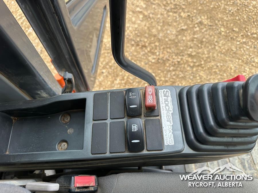 Specifications: AIR CONDITIONER, AIR RIDE SEAT, CONTROL PATTERN CHANGER, CAB SCREENS, POSITIVE AIR SHUTOFF, AUXILIARY HYDRAULIC PLUMBING, MANUAL QUICK COUPLER, DIGGING BUCKET, WEBASTO