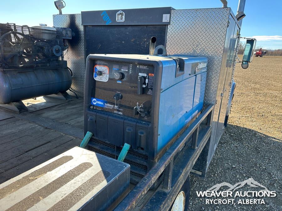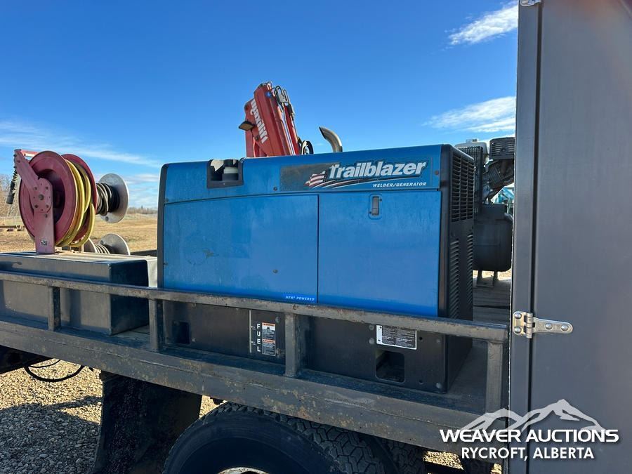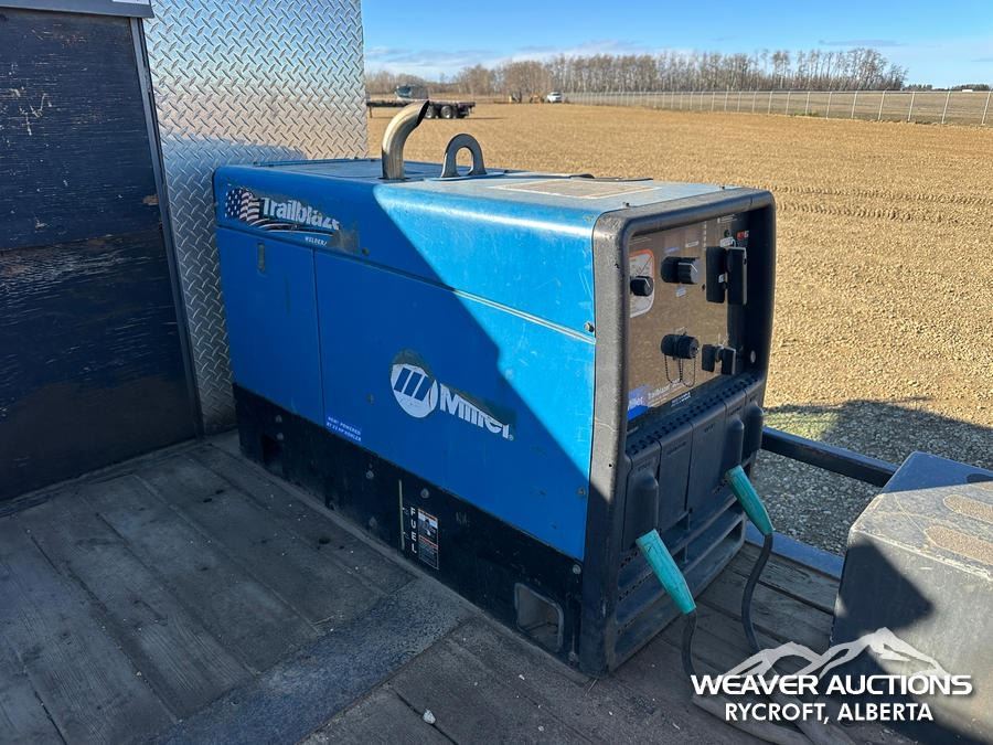 Specifications: SPRING SUSPENSION, MILLER TRAILBLAZER 302 WELDER METER: 976 HRS, MAXILIFT CORNER PICKER, DV AIR COMPRESSOR