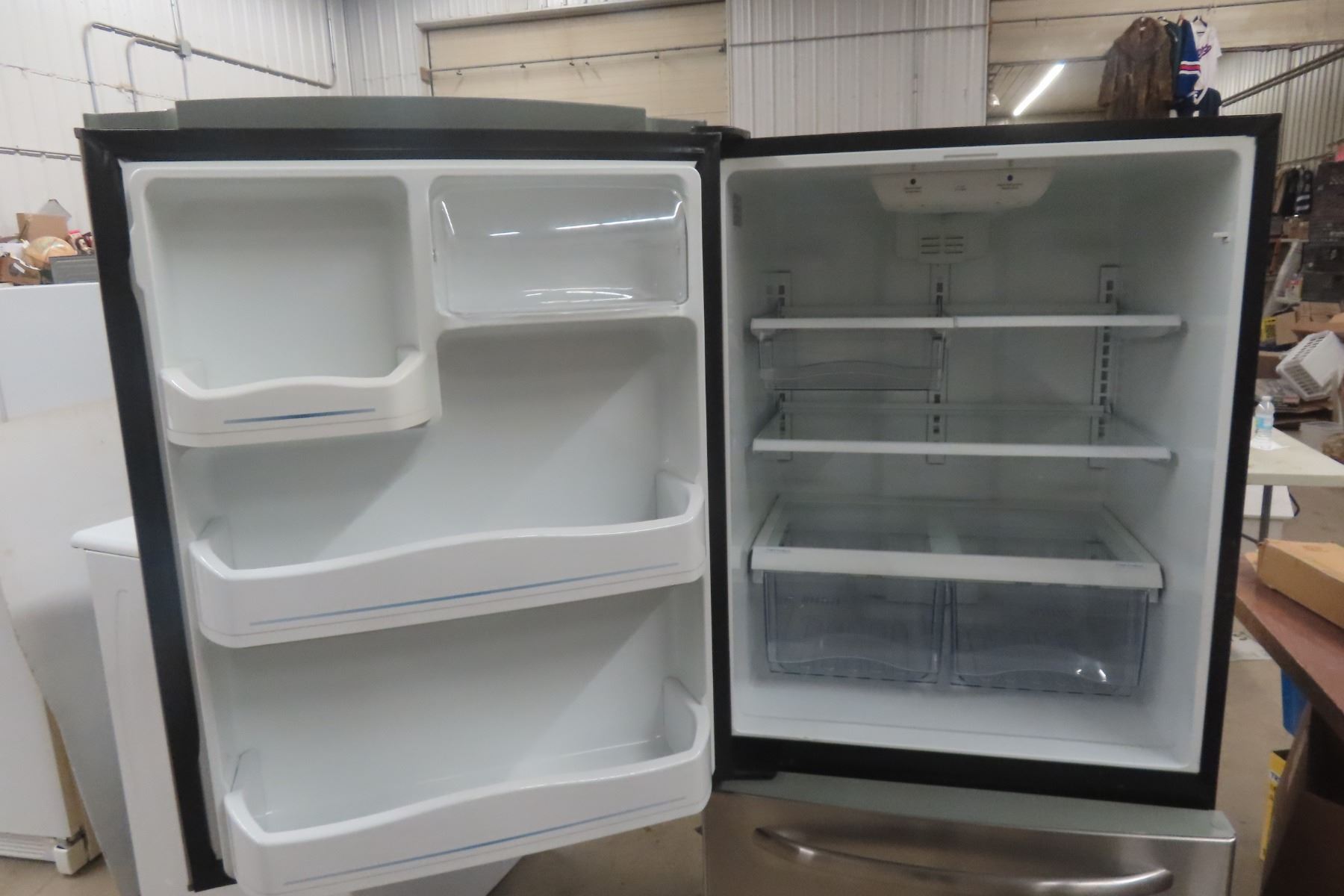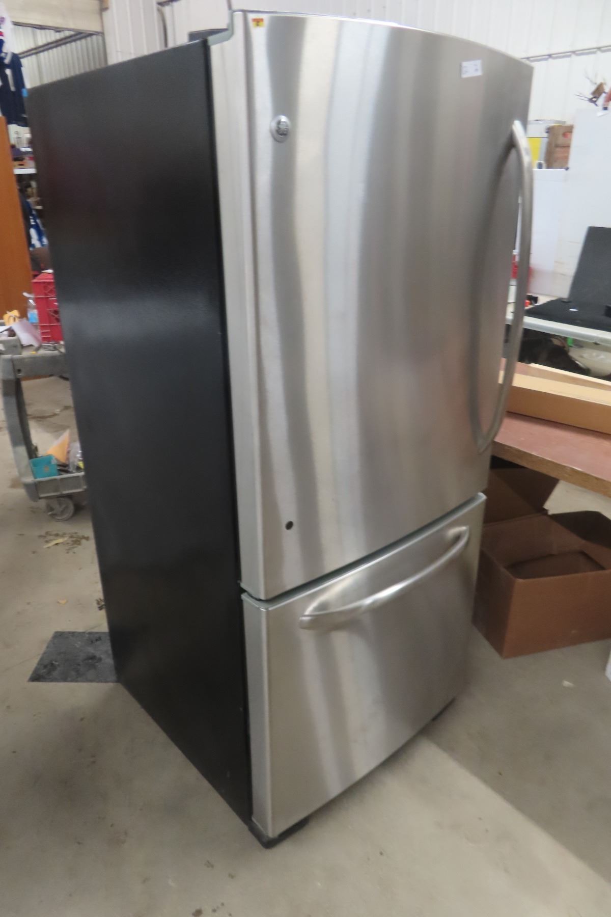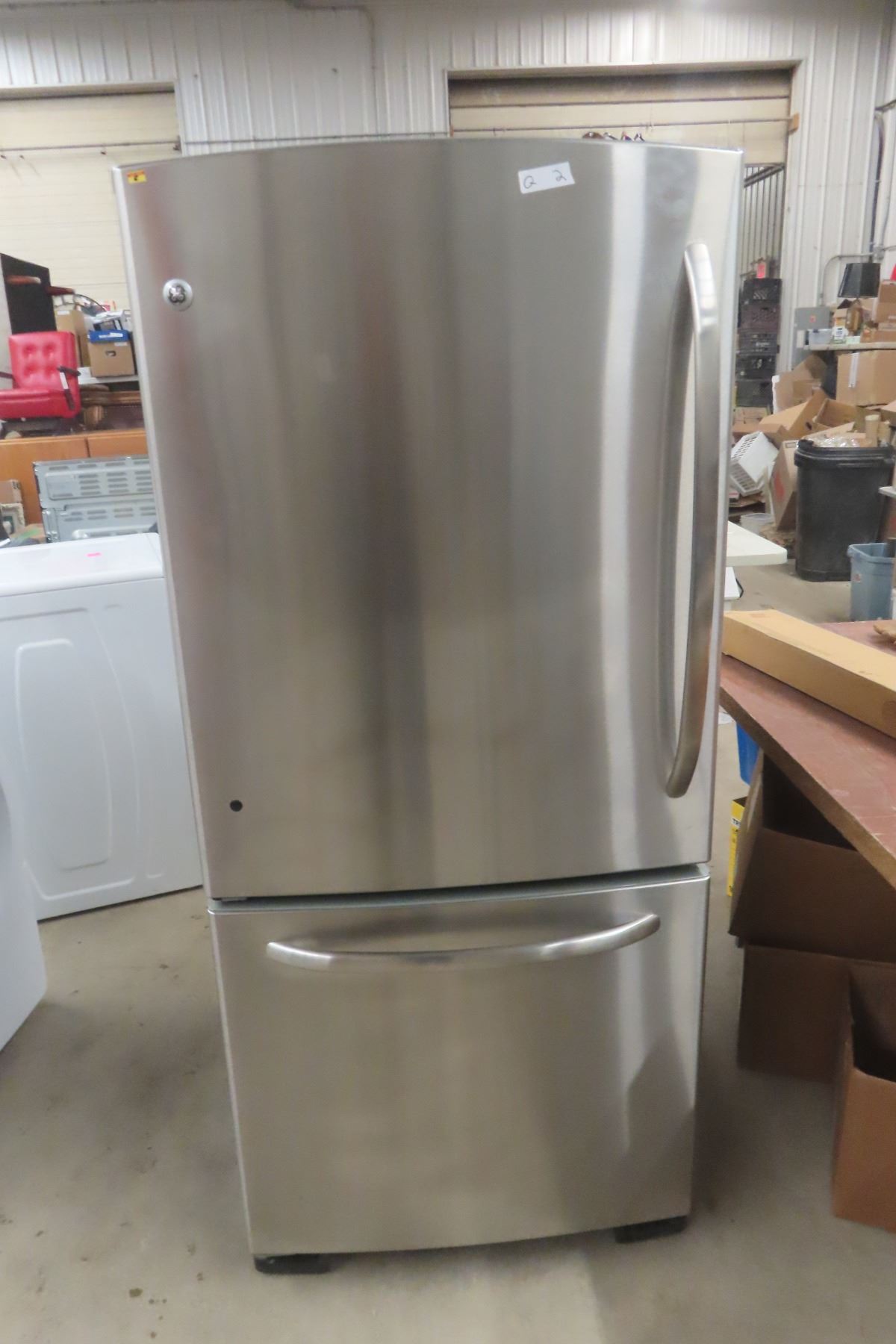 GE Stainless Fridge w/ Bottom Freezer, 67" x 32" x 30"