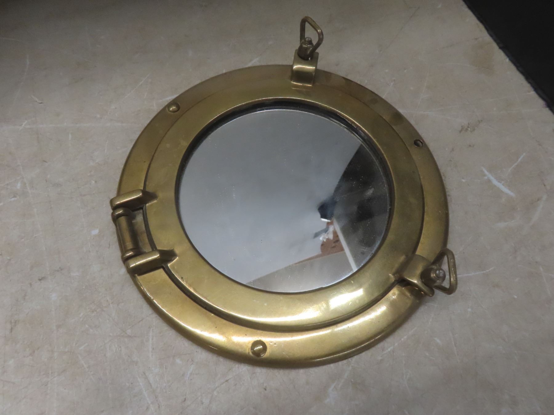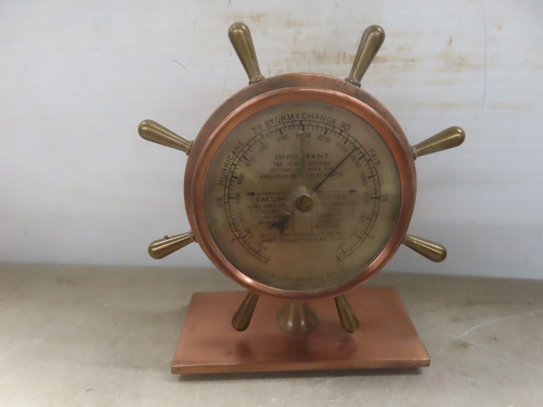 Lot 224 Vintage Swift and Anderson Ships Wheel Barometer Brass Porthole Mirrors Griswold Film Slicer Stetho
