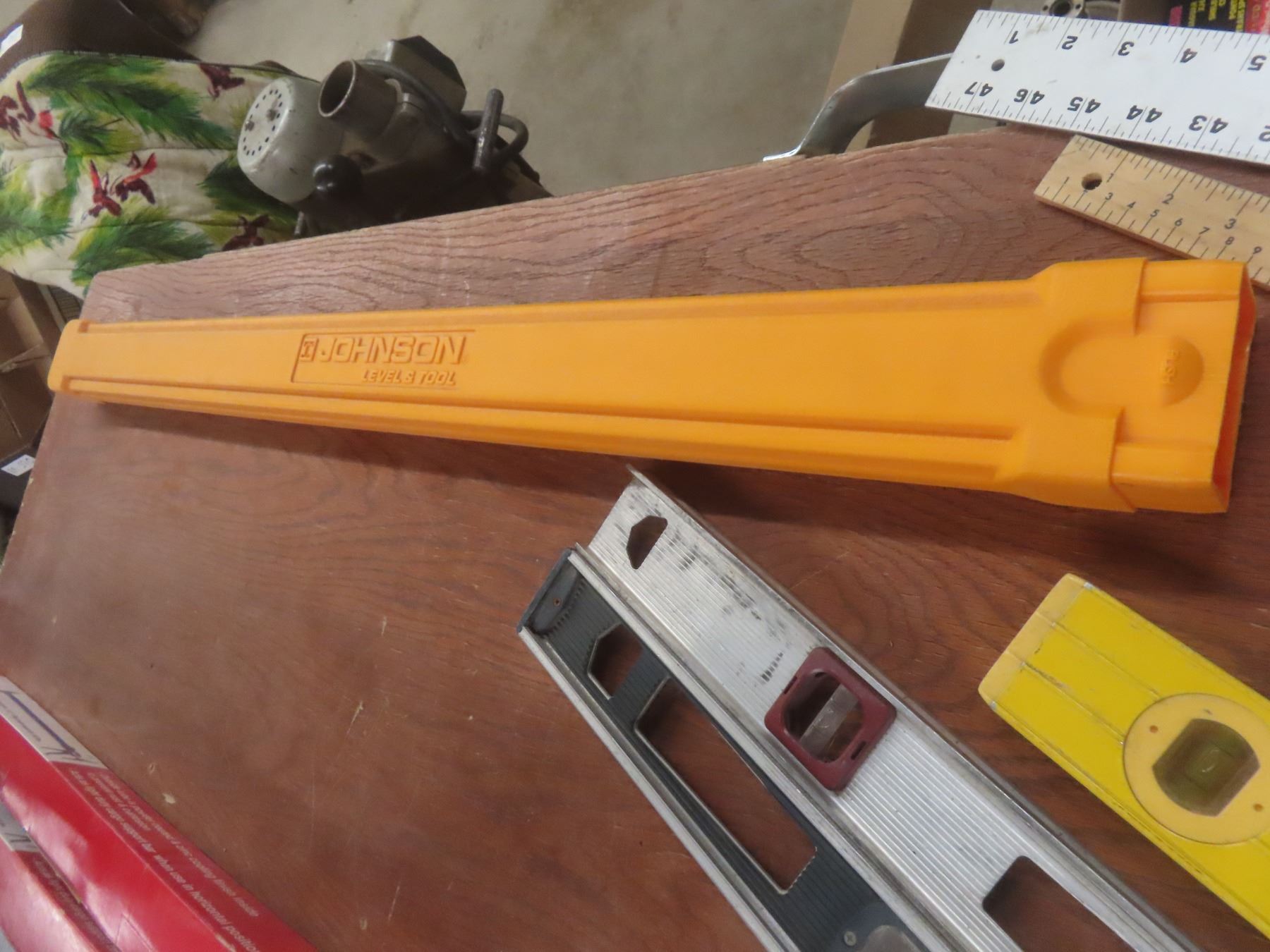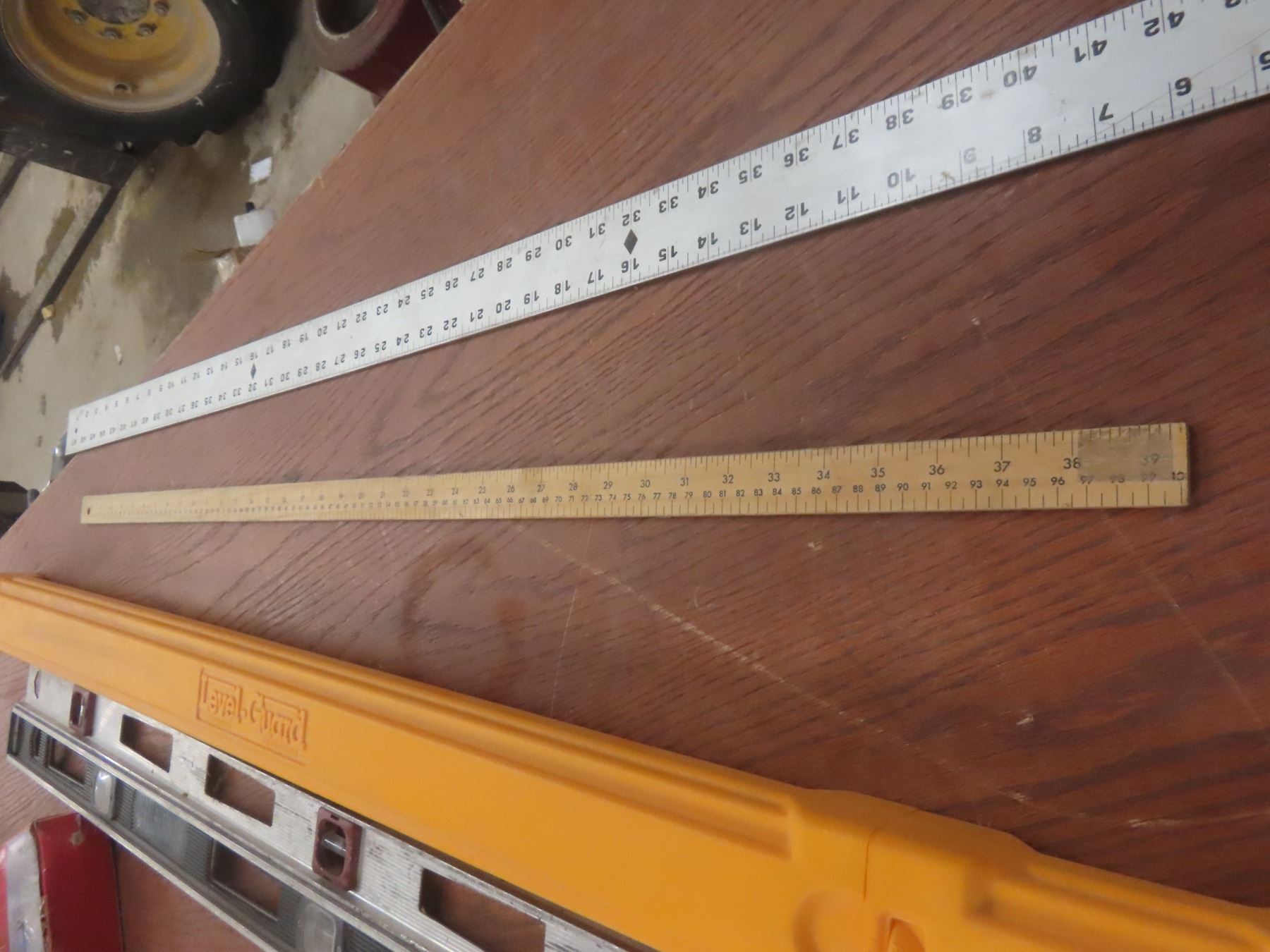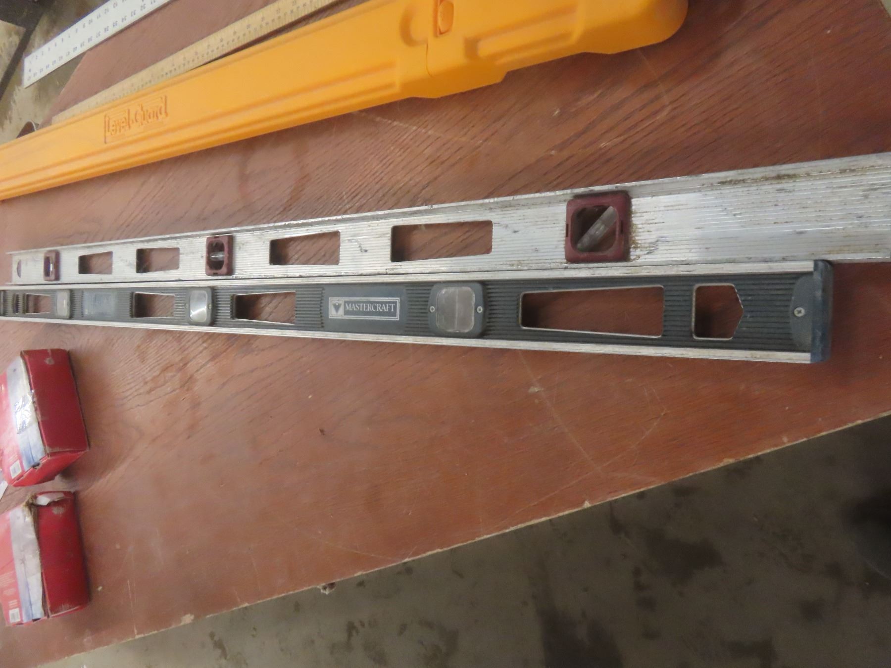 Three Levels Including 48 Inch Level T Square and Meter Stick