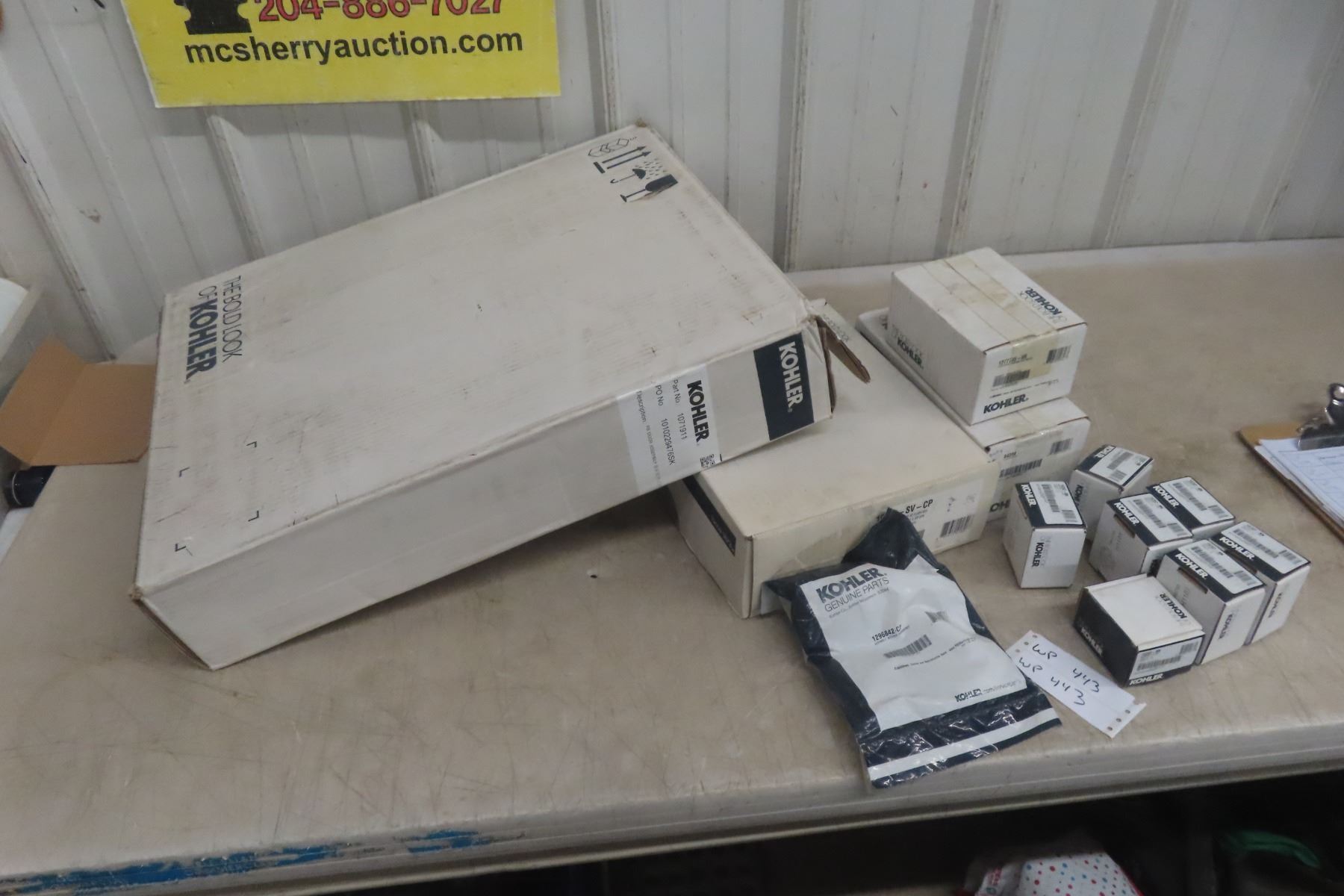 Lot 443 New Kohler Items - Door Assembly, Touchless Wave Flush, Kitchen Hand Spray, Lever Assembly, and Mor