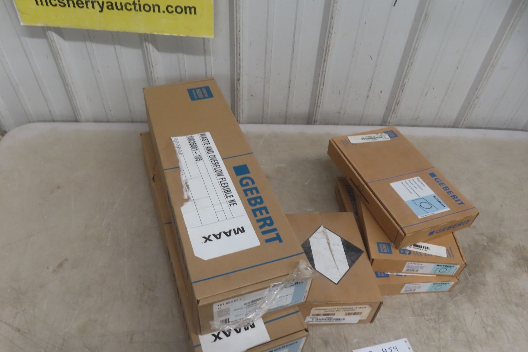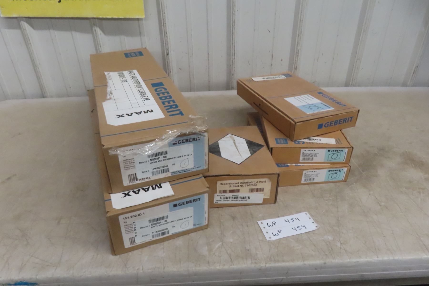 Lot 454 New Geberit Flexible Neck Repair Kit, Duravit Durasolo Chrome Plates, Qty 3