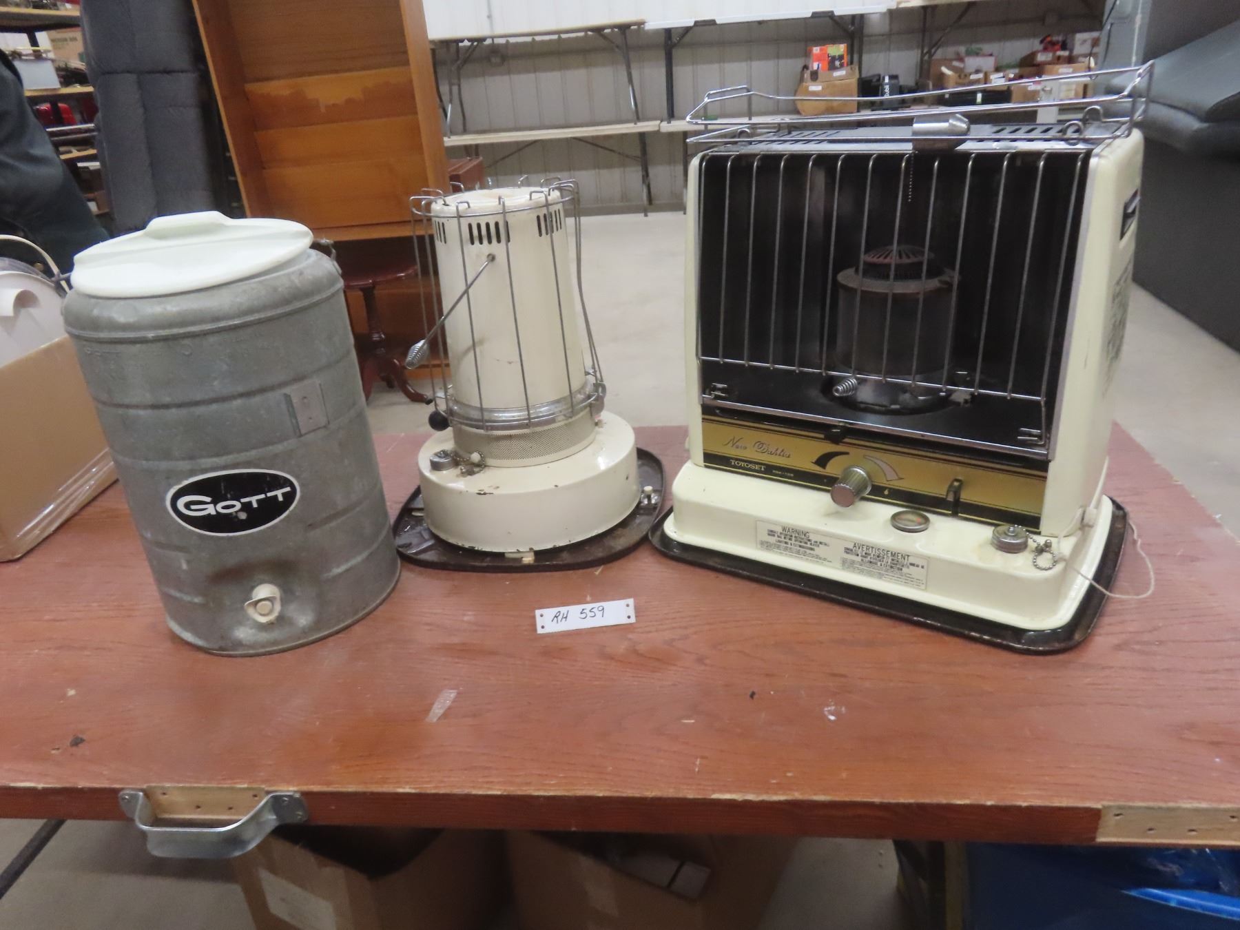 Lot 559B Kerosene Portable Heater (9,400 BTU) With Galvanized Insulated Drink Dispenser