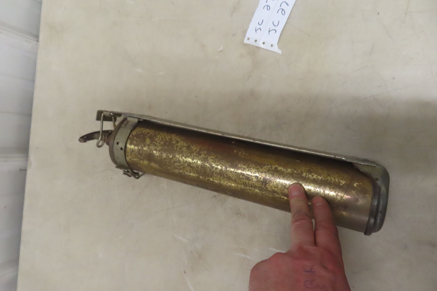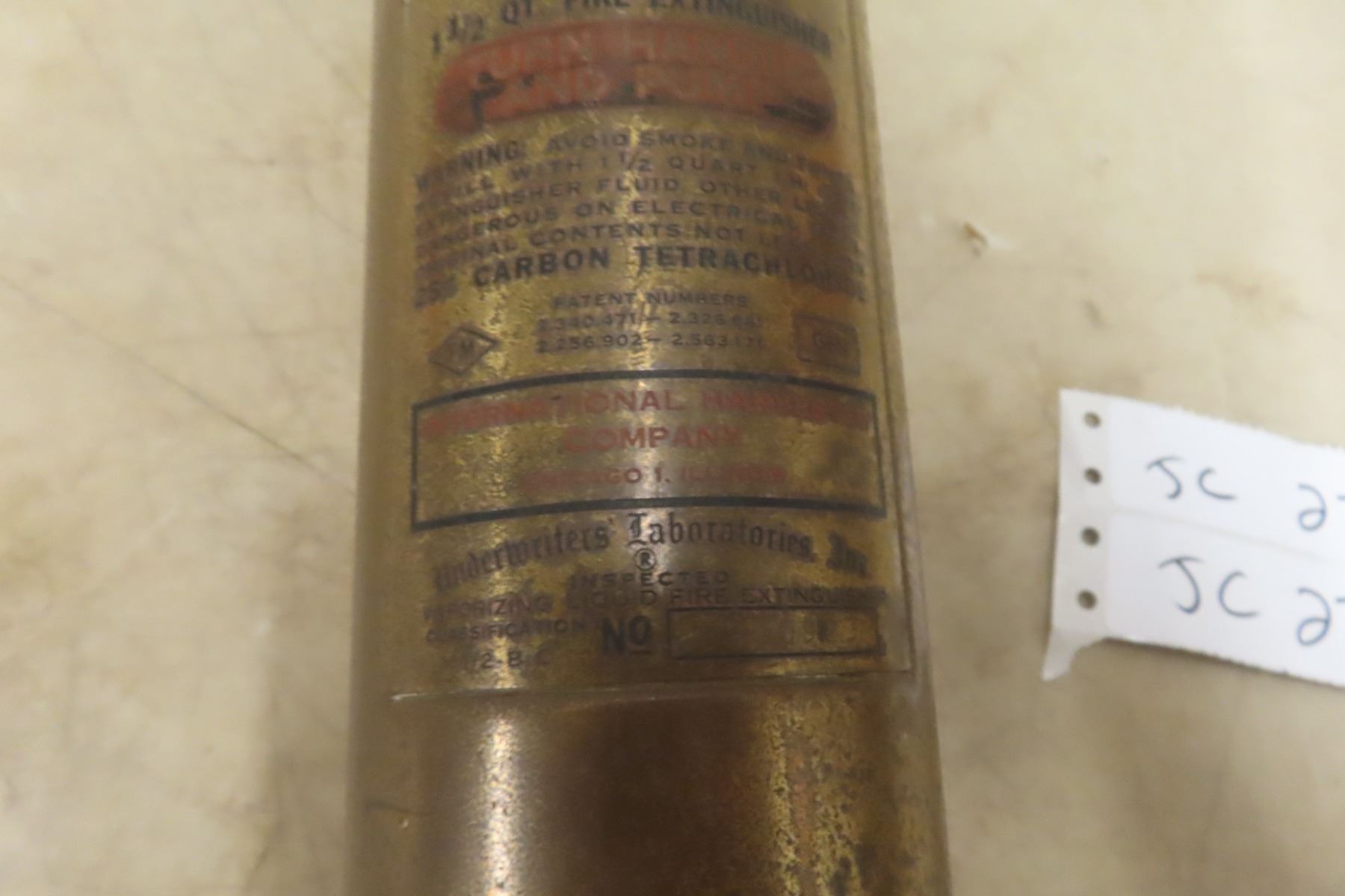 Lot 27 International Brass Fire Extinguisher With Wall Mount, 17" Long