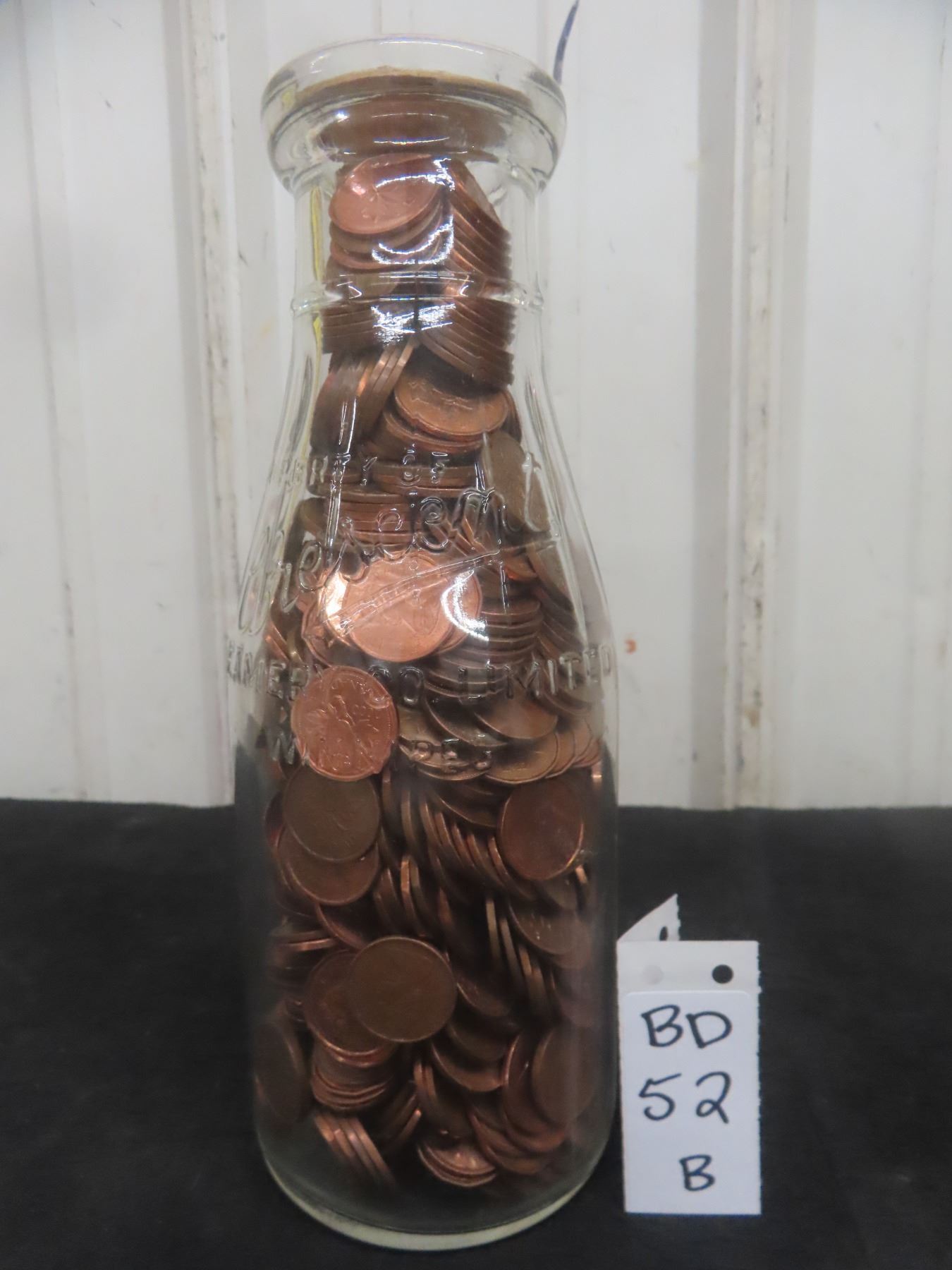 Lot 52 Vintage Crescent Creamery Milk Bottle Filled With Pennies - Over 5lbs