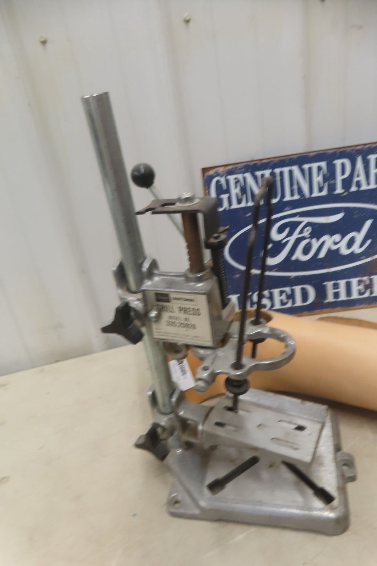 Craftsman Press for a Drill, Modern Ford Sign, and Roll of Leather