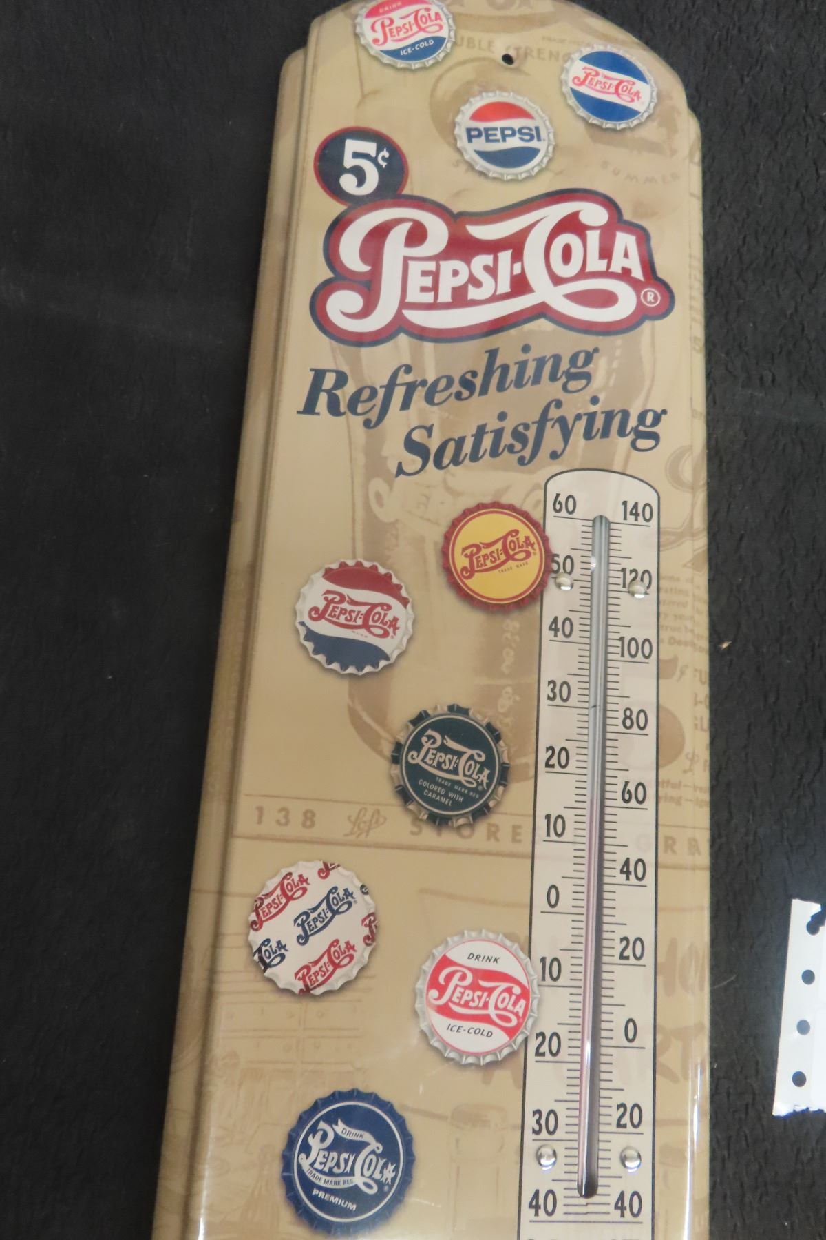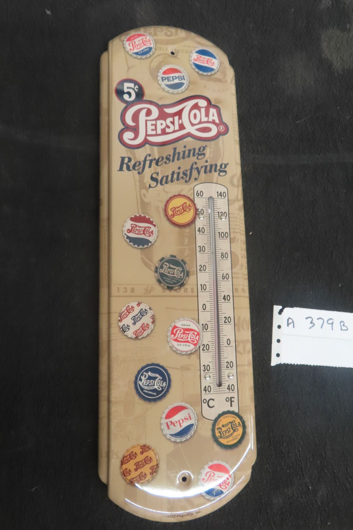 Lot 379B Pepsi Advertising Metal Thermometer, 17" x 5"
