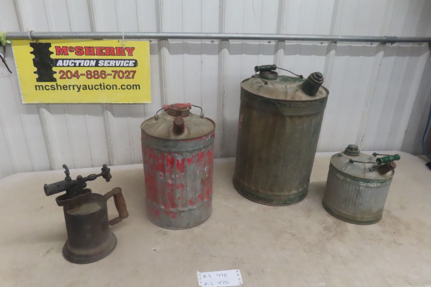 Lot 470 3 Gas Cans and Blow Torch