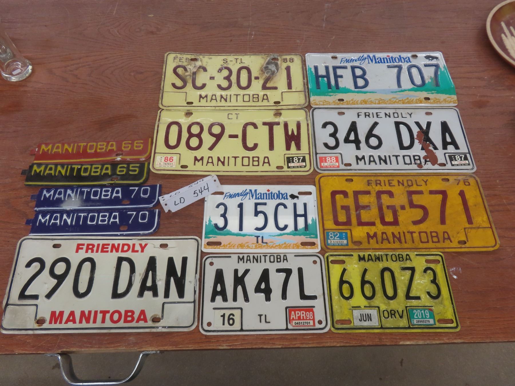Lot 544 Manitoba License Plates With 4 Tags From 1965, 1966, and 1970