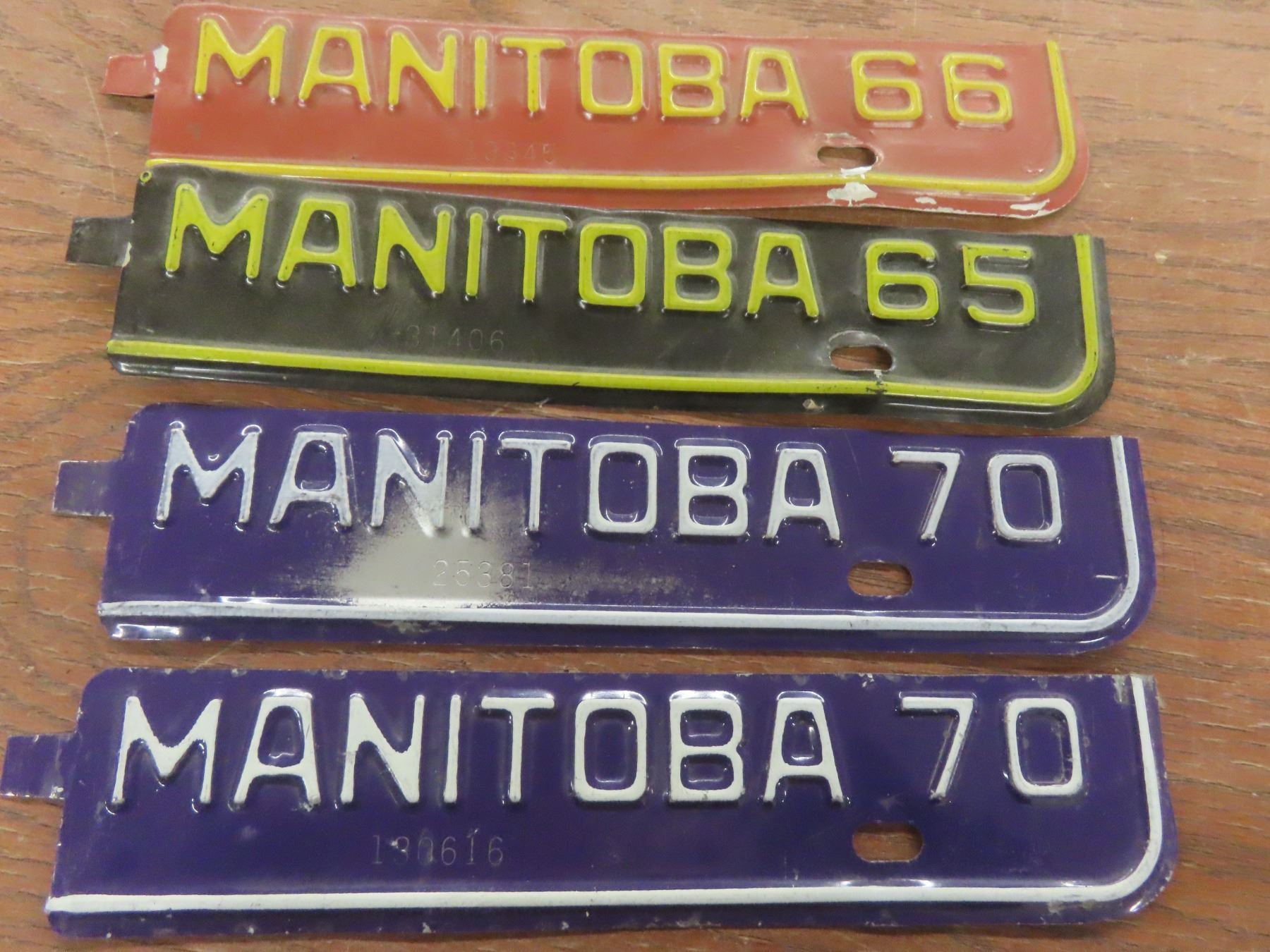 Manitoba License Plates With 4 Tags From 1965, 1966, and 1970