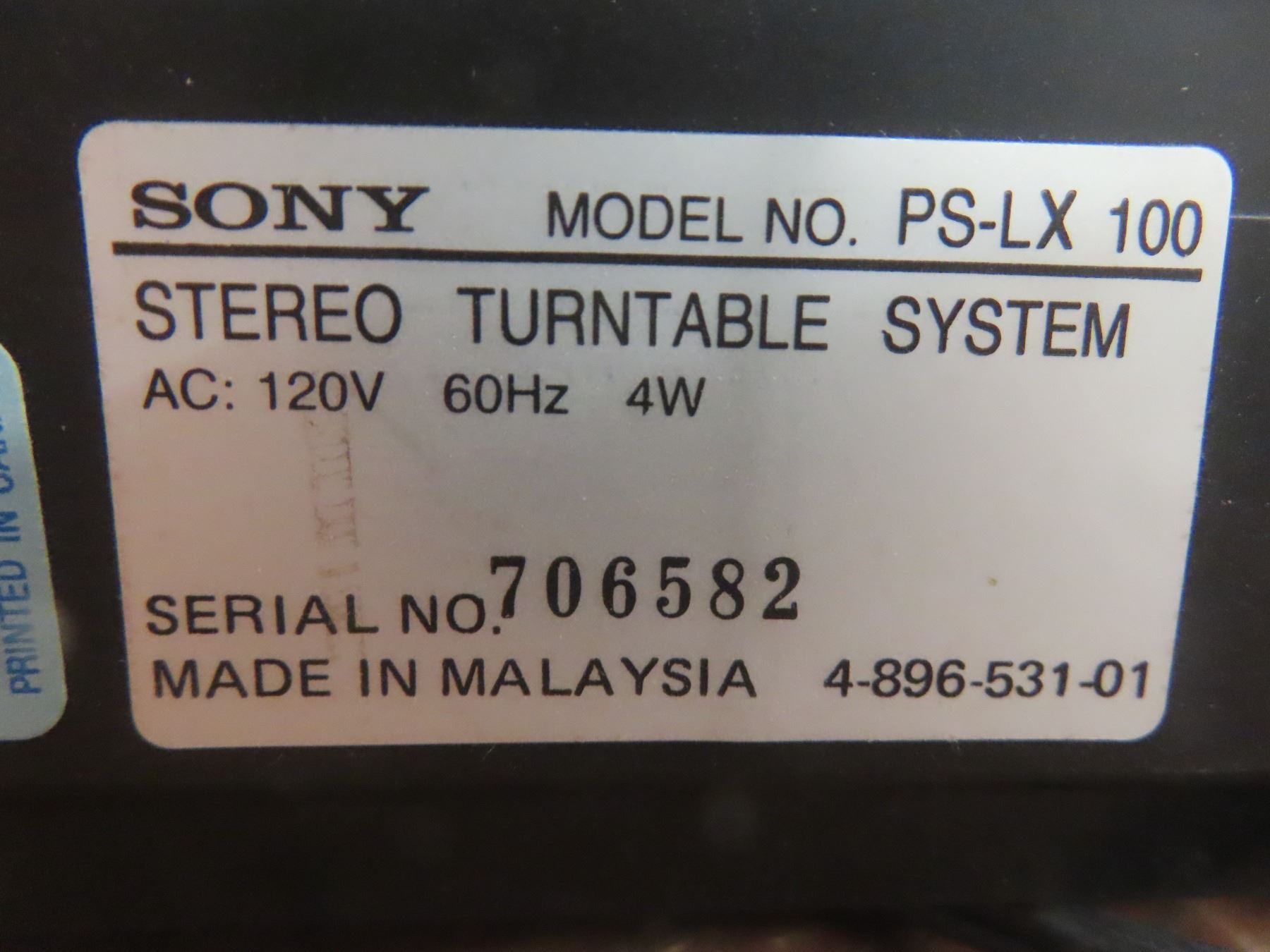 Sony Stereo Turntable, Model PS-LX100, With Dust Cover