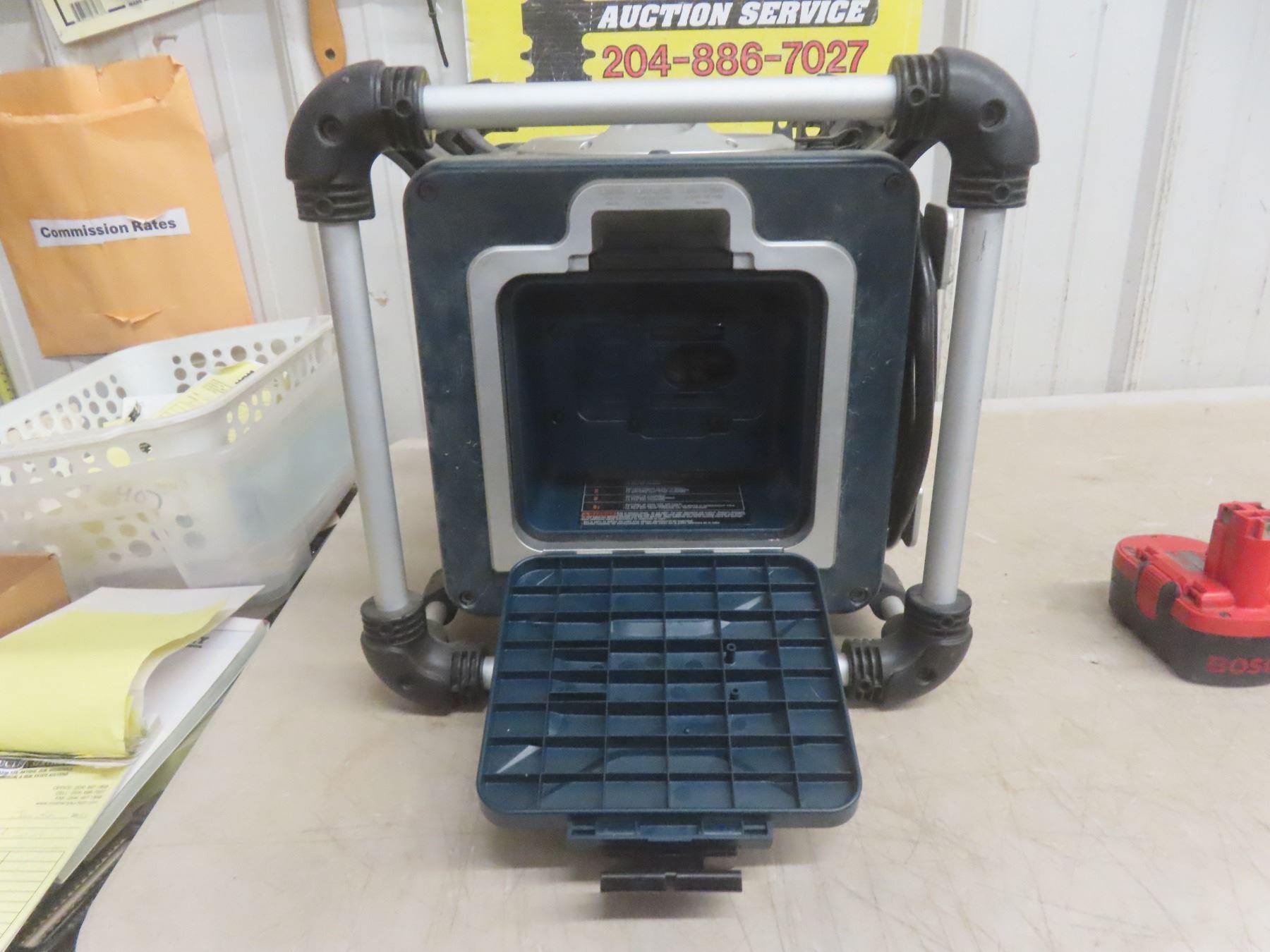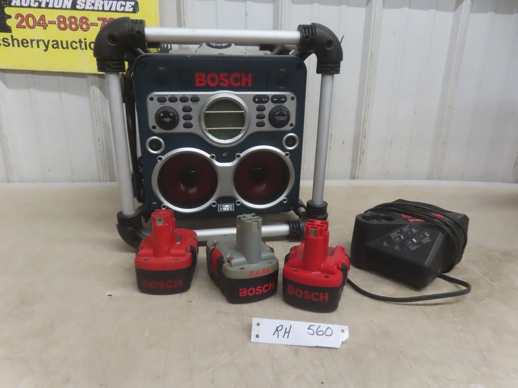 Lot 560 Bosch Charger/Battery Bay Radio With 3 Bosch Batteries (18V, 14.4V, and 16V) and Charger