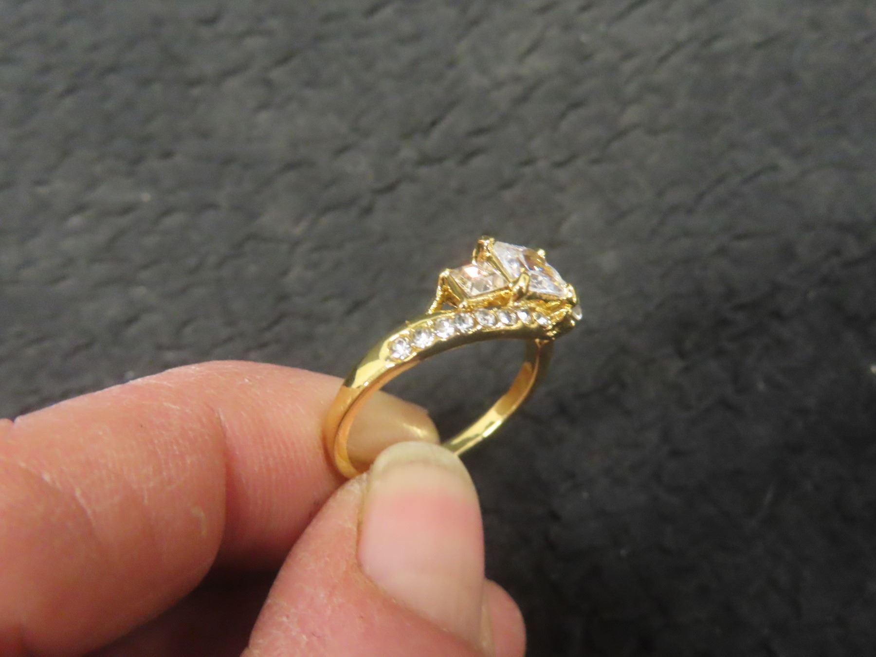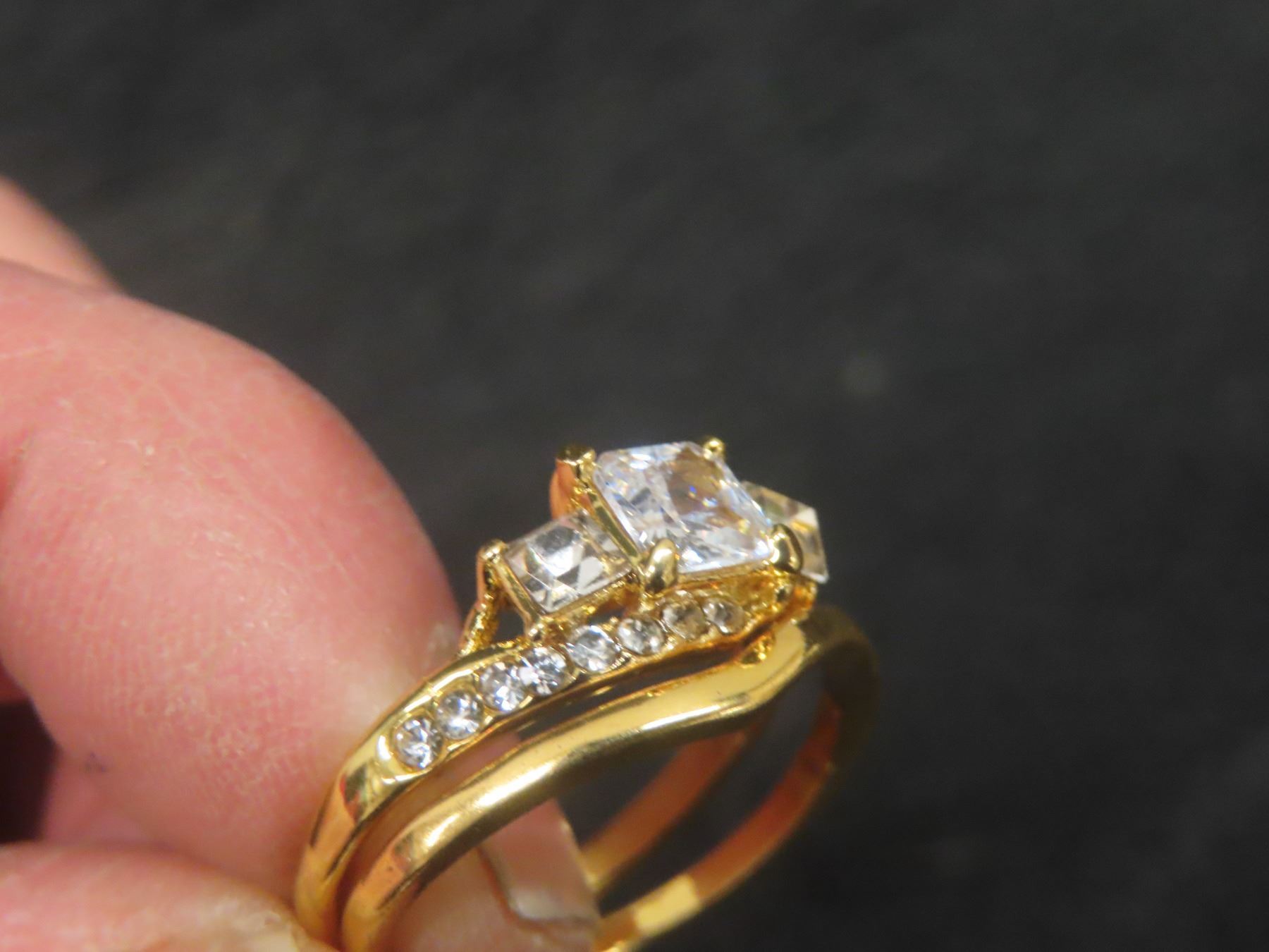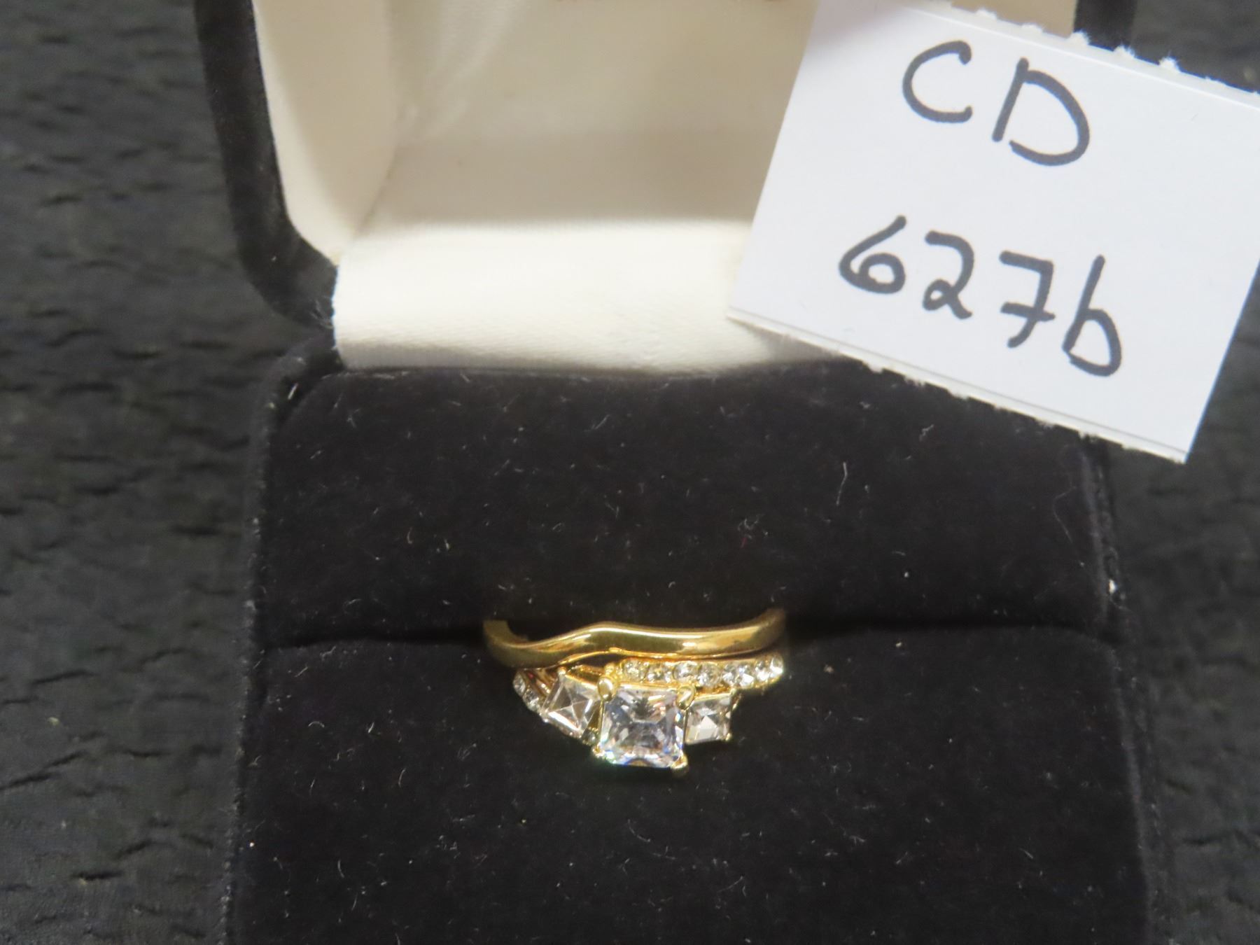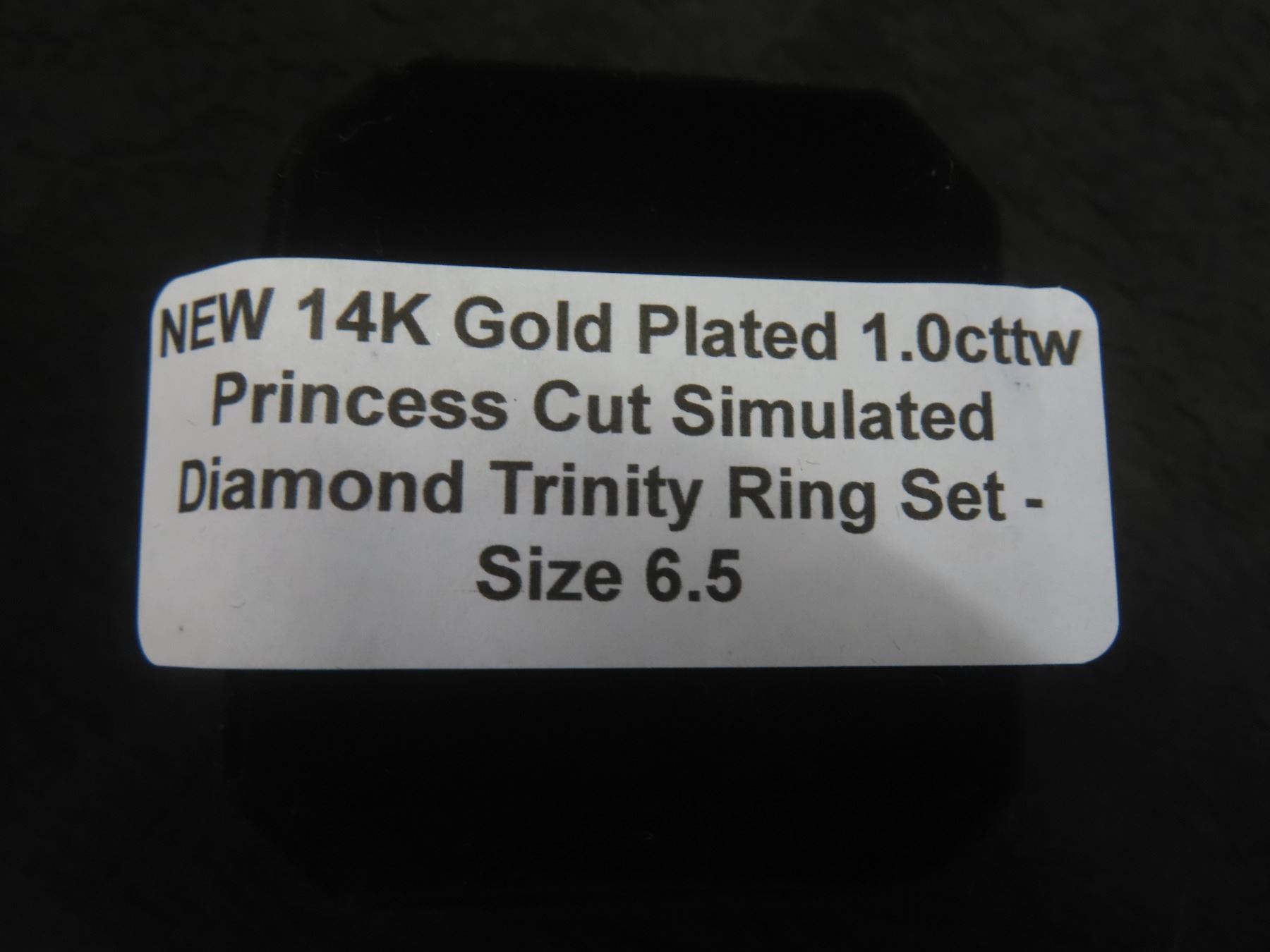 Lot 627B New 14K Gold-Plated 1.0 CT Princess-Cut Simulated Diamond Trinity Ring Set, Size 6.5