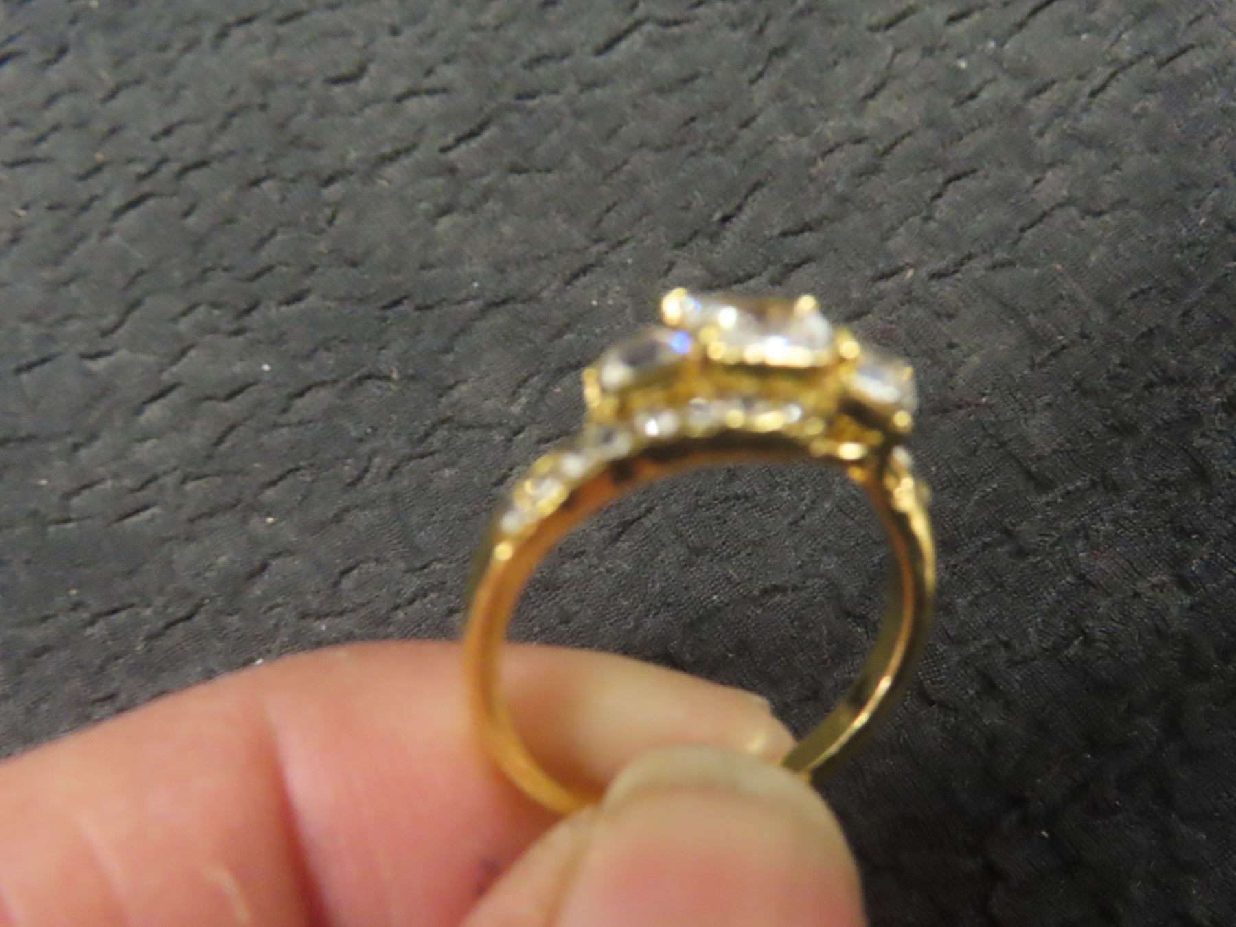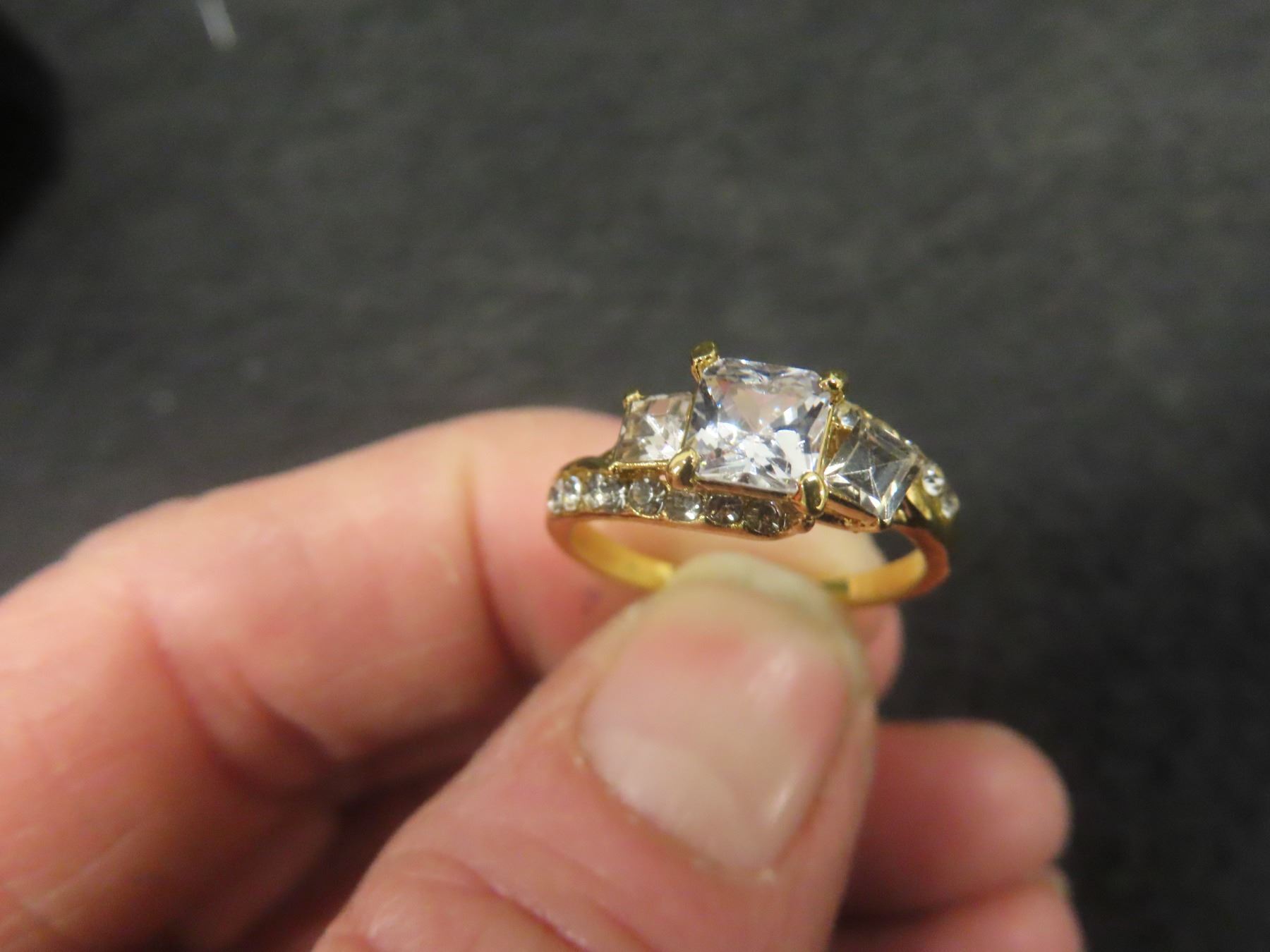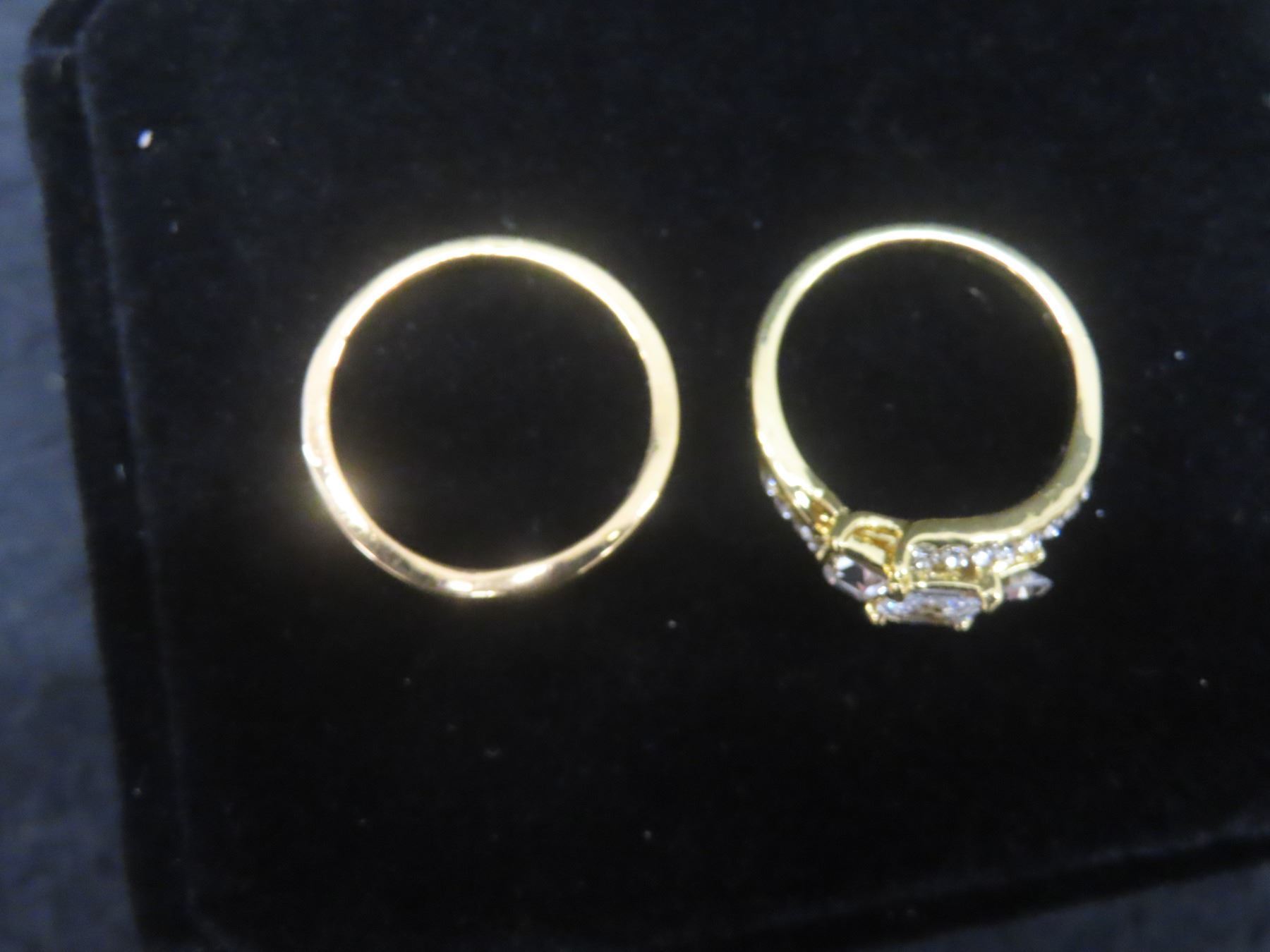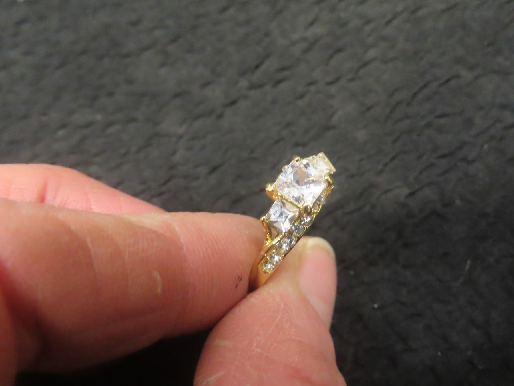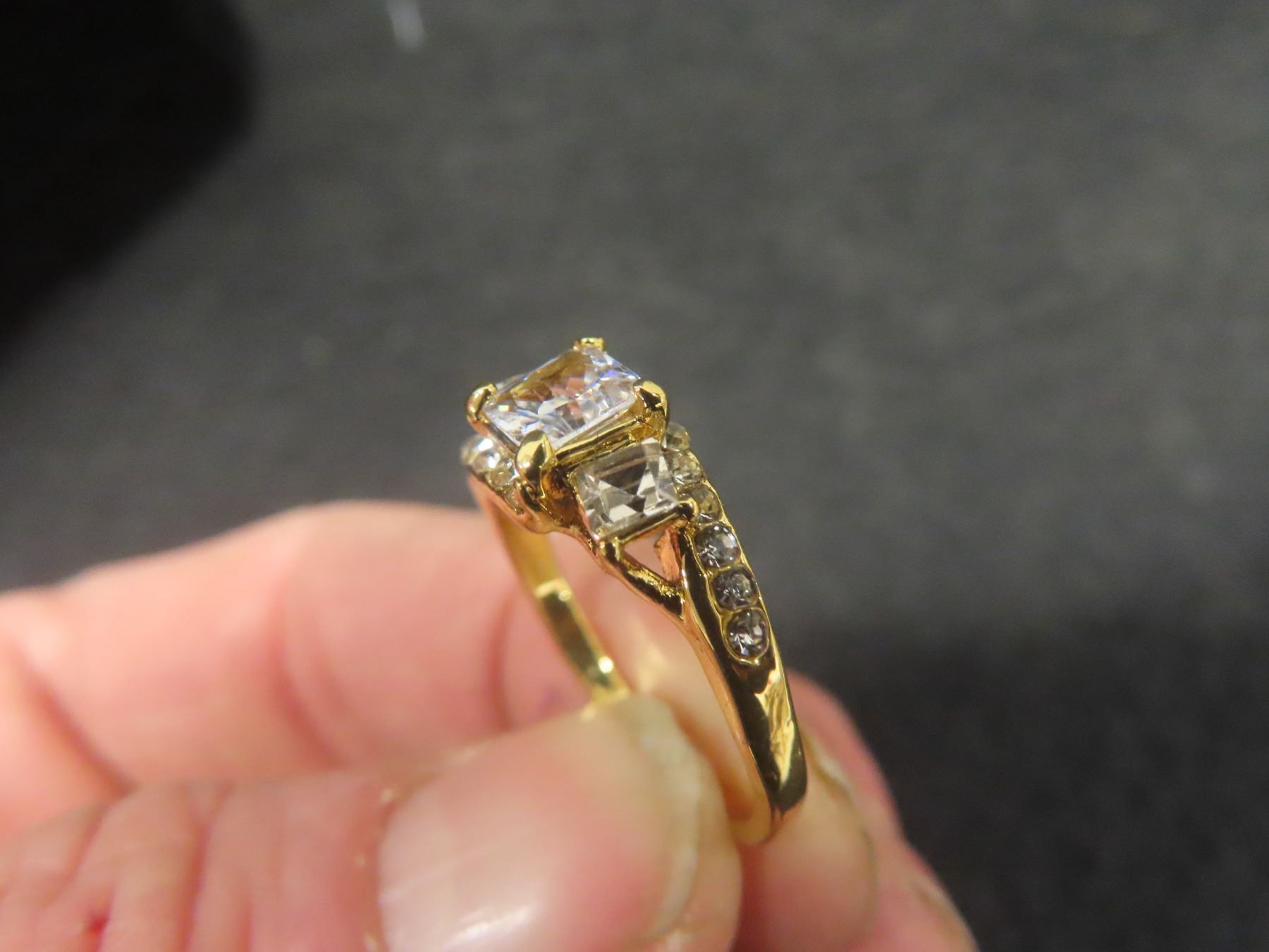 Lot 627B New 14K Gold-Plated 1.0 CT Princess-Cut Simulated Diamond Trinity Ring Set, Size 6.5