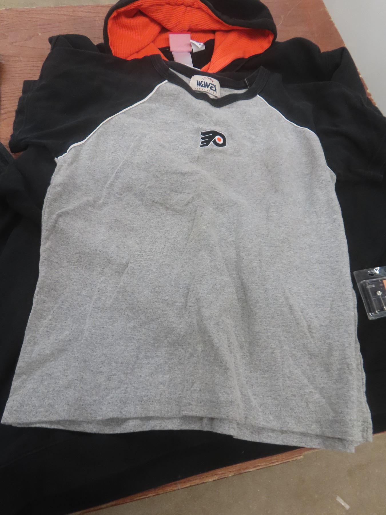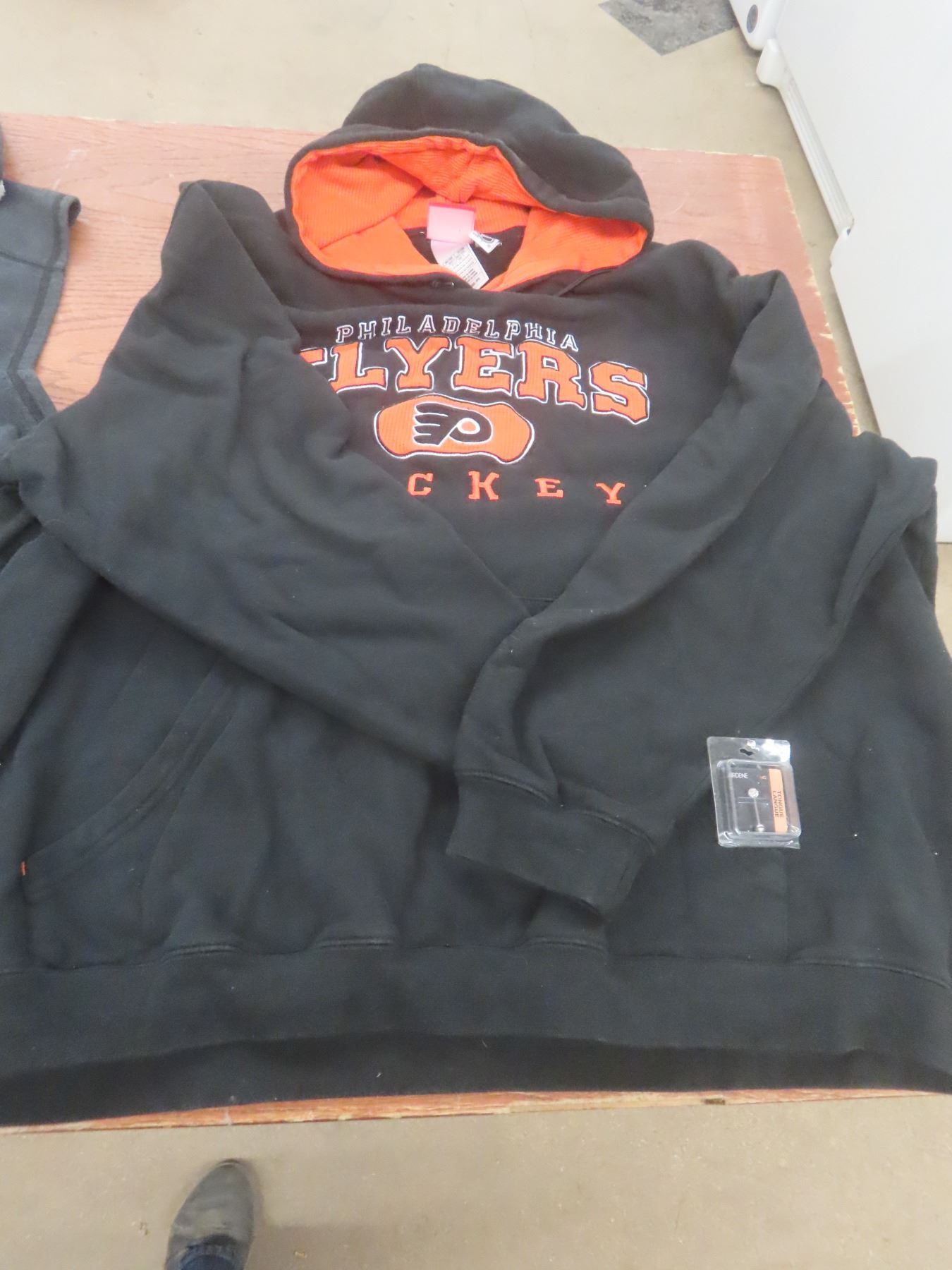 Philadelphia Flyers Jersey (Size Large), Nike Zip-Up Sweater (Size Large), Flyers Hoodie & Hat (Sizes 3XL & 2XL)