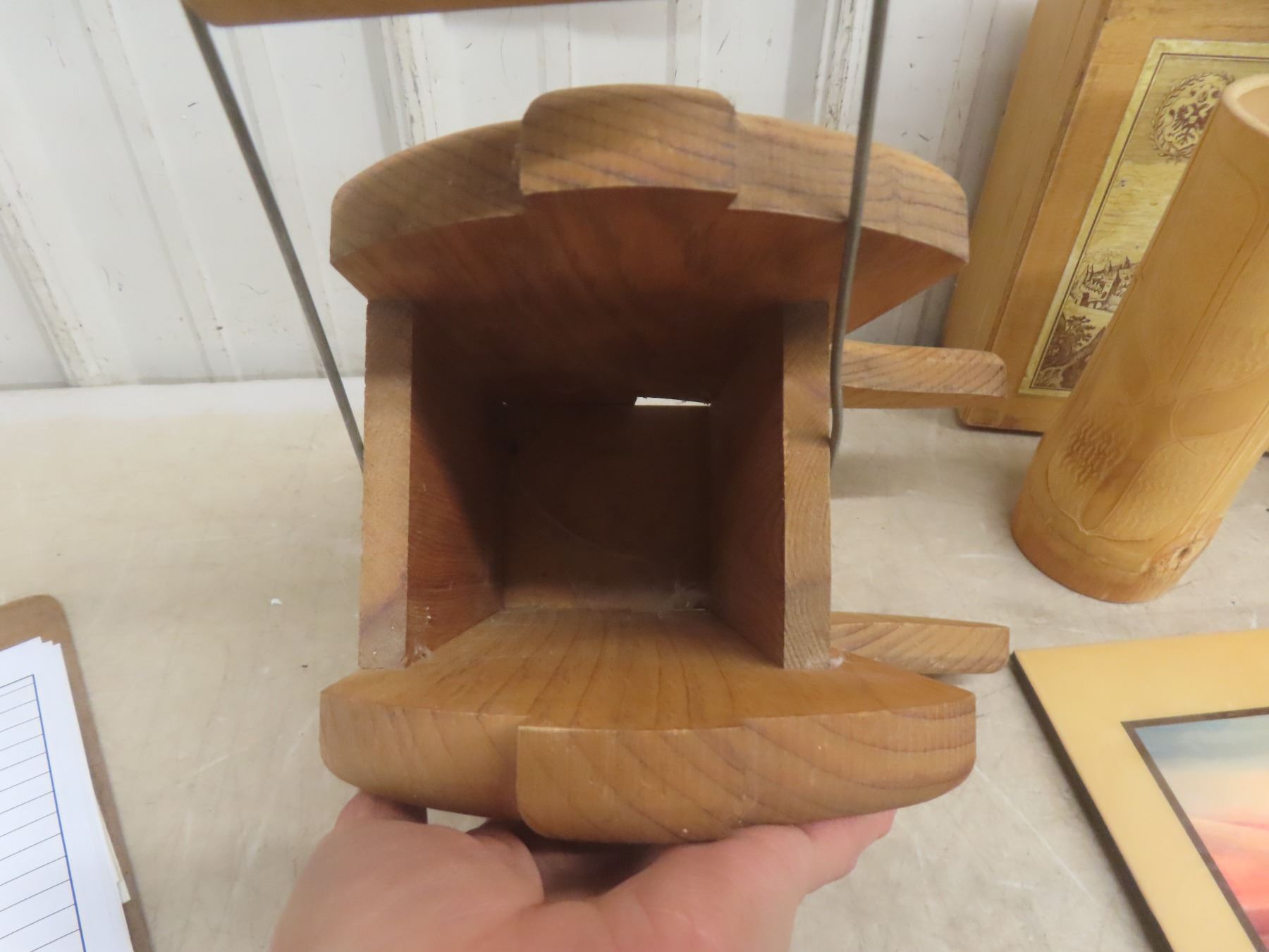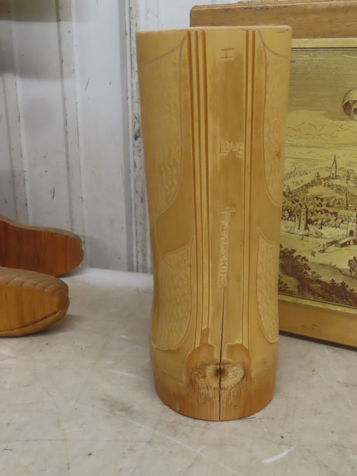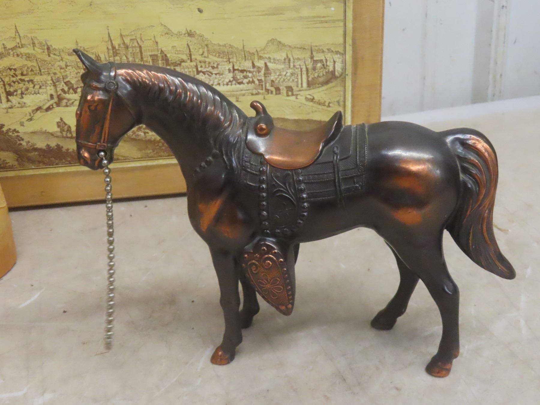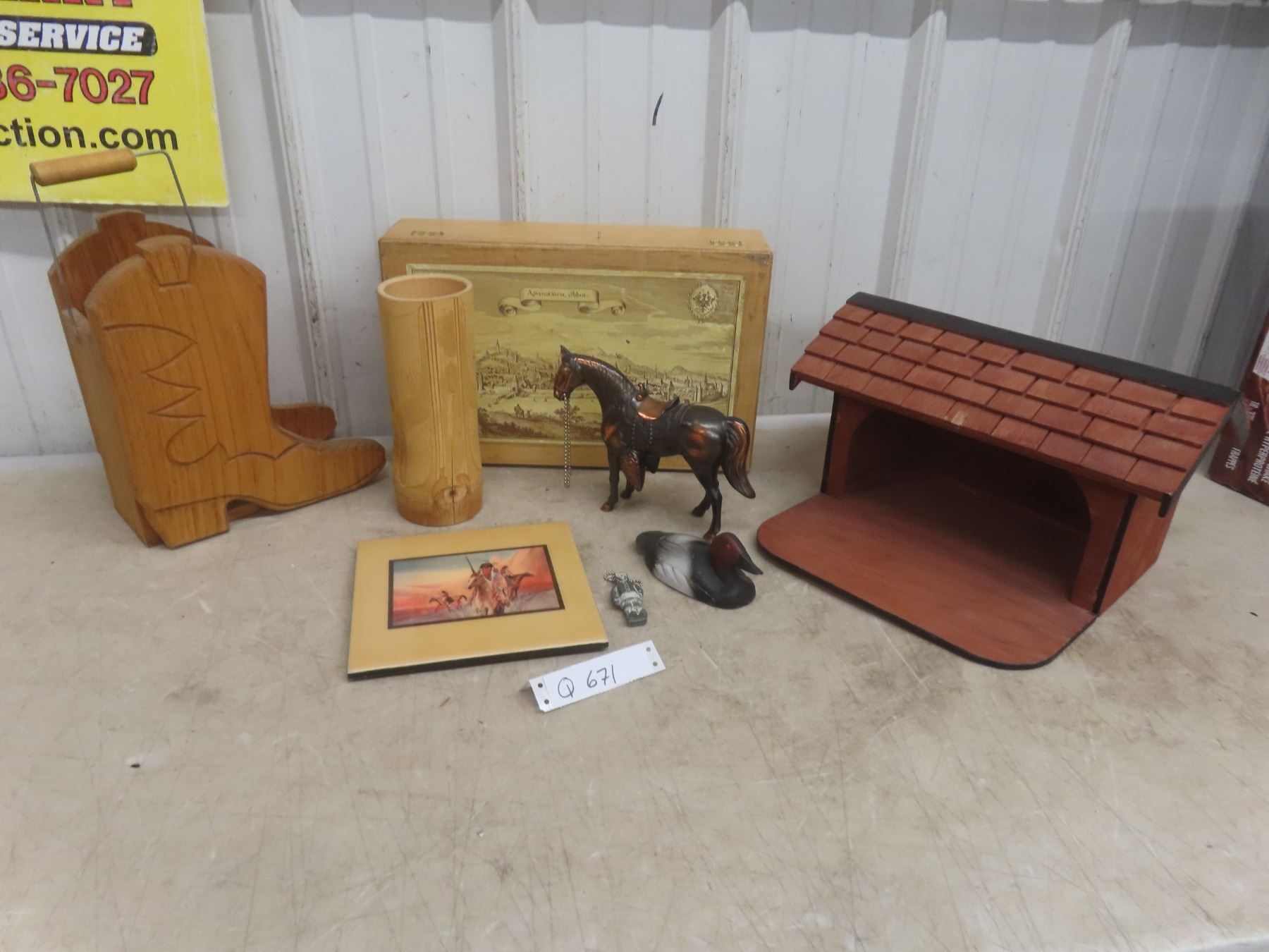Lot 671 Wood Bird Feeder, Brass Horse, Bamboo Carved Vase, and More