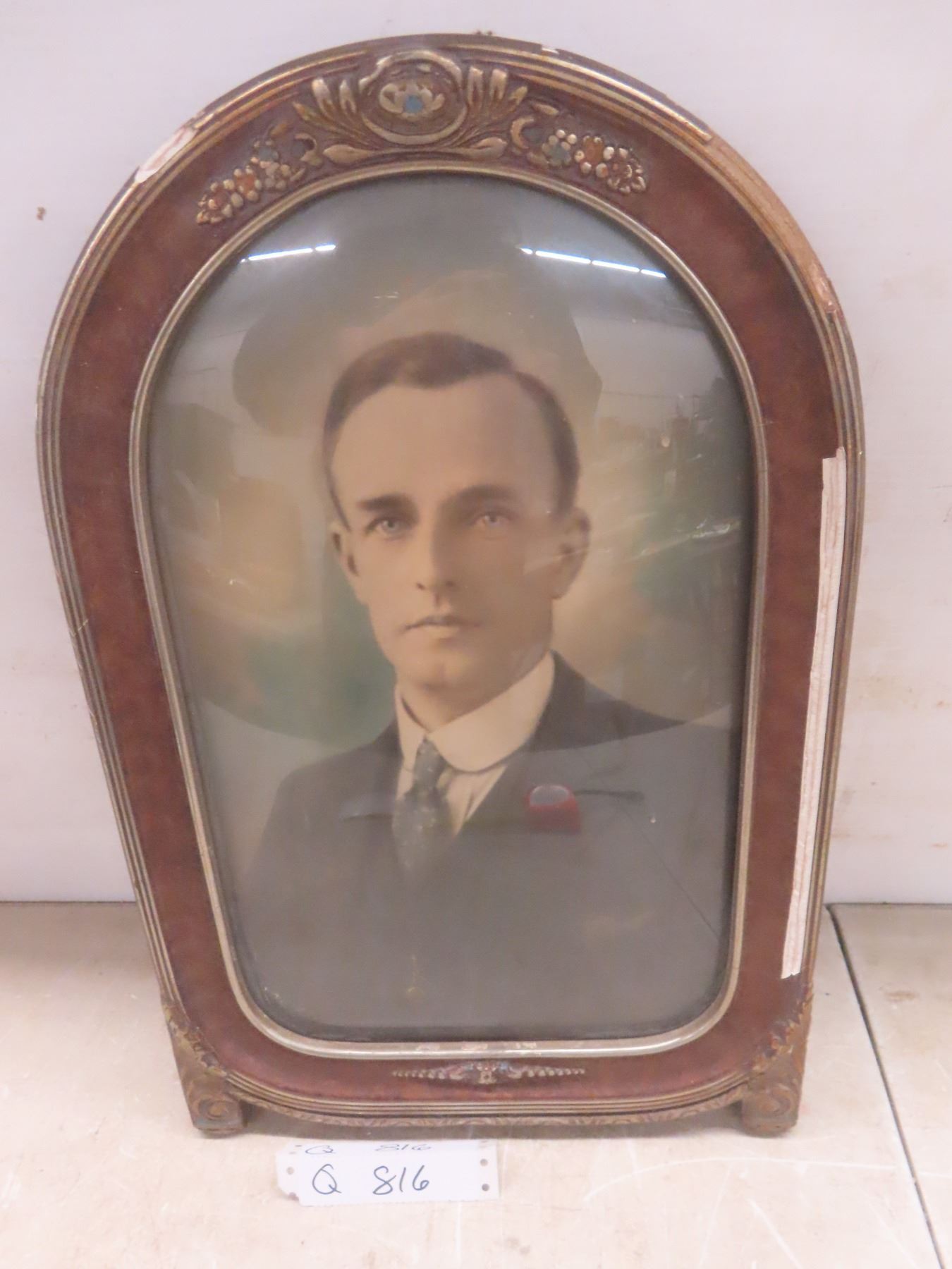 Lot 816 Old Portrait Photo in Frame With Convex Glass, 12 1/2" x 19"