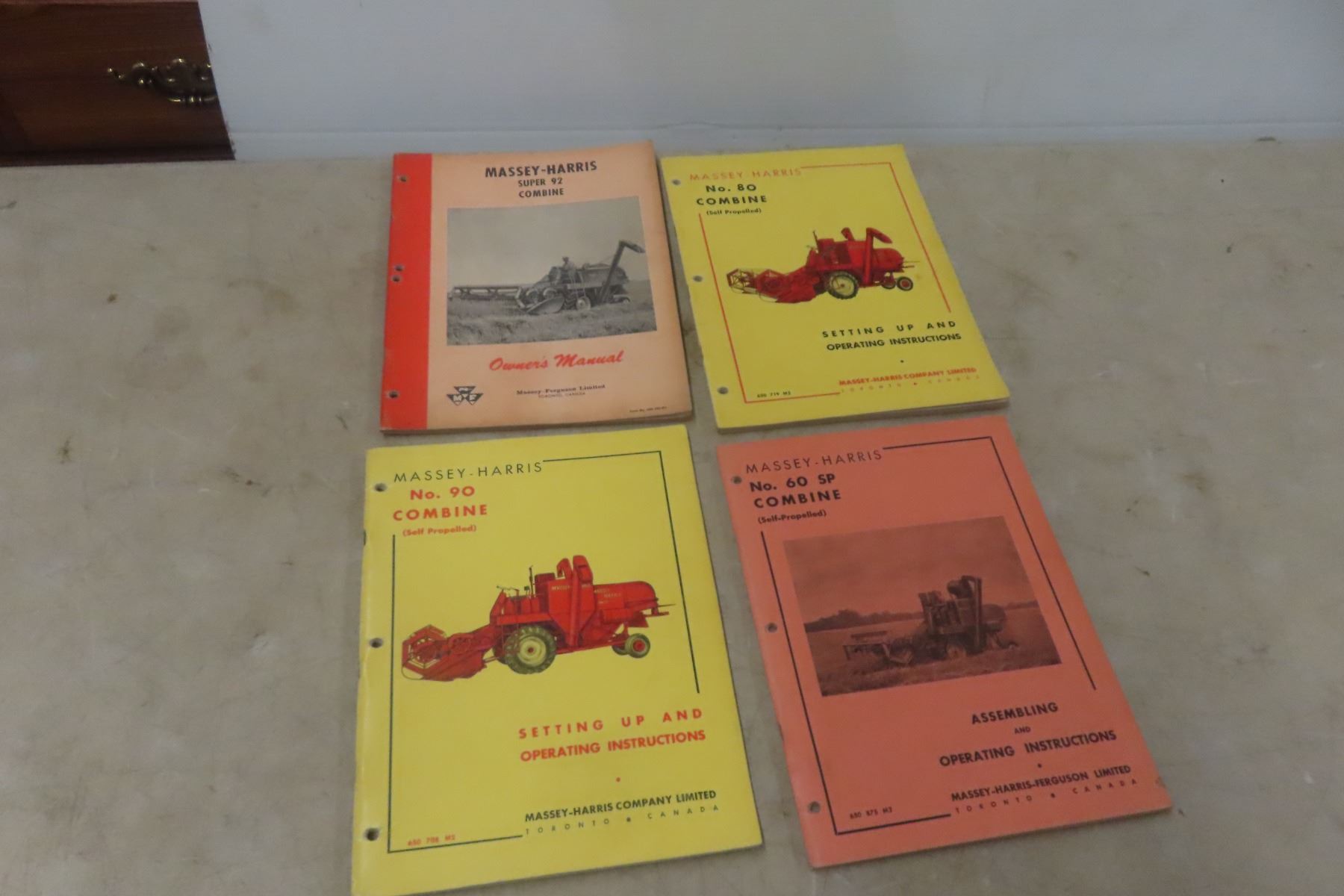 Lot 833 4 Vintage Massey-Harris Combine Manuals, MH60, MH80, MH90, MH92