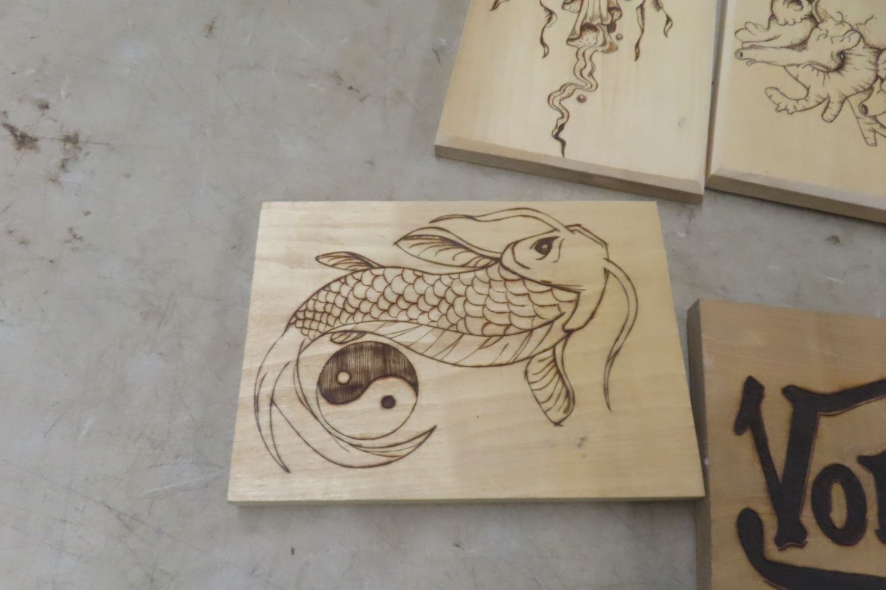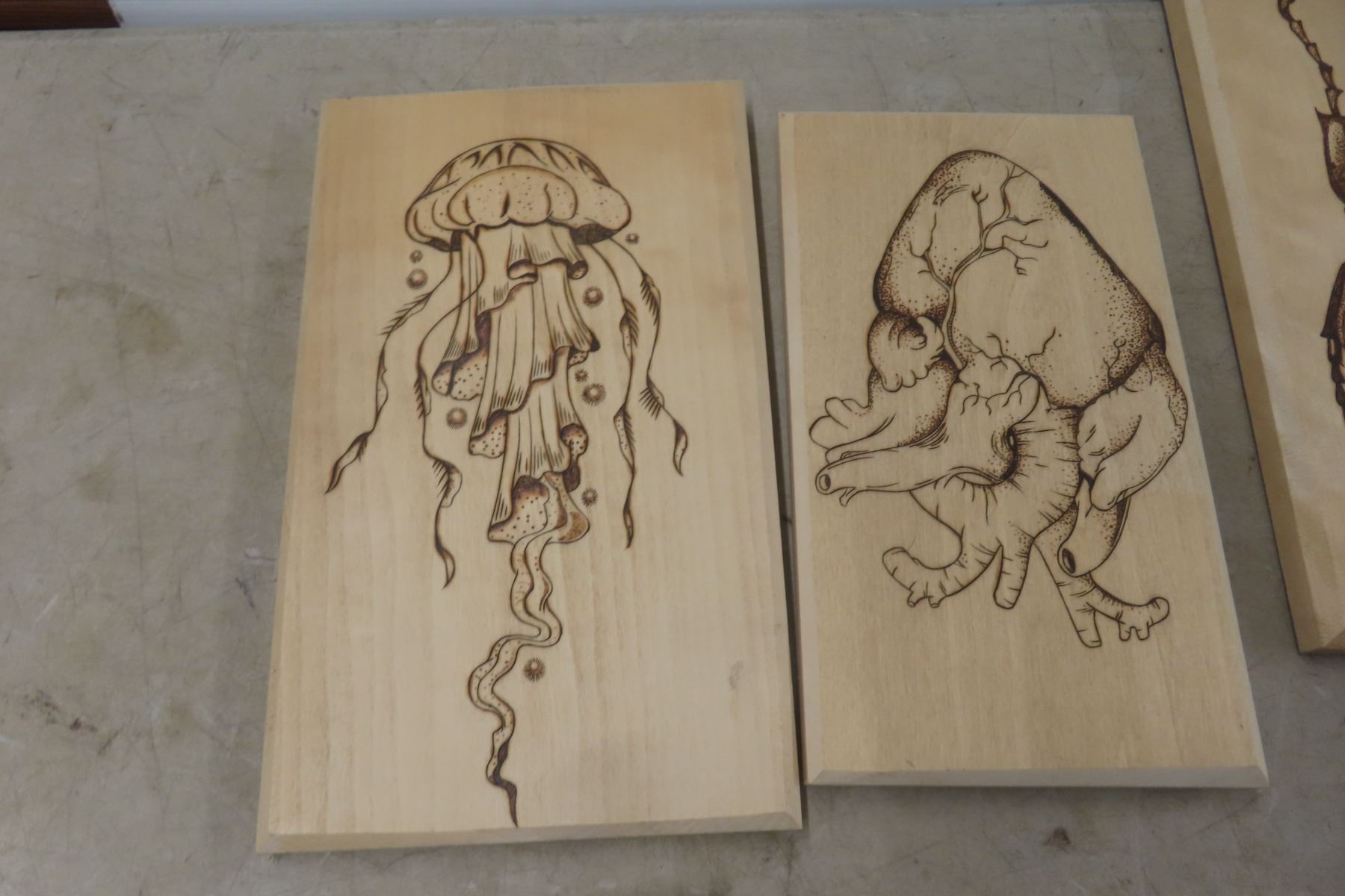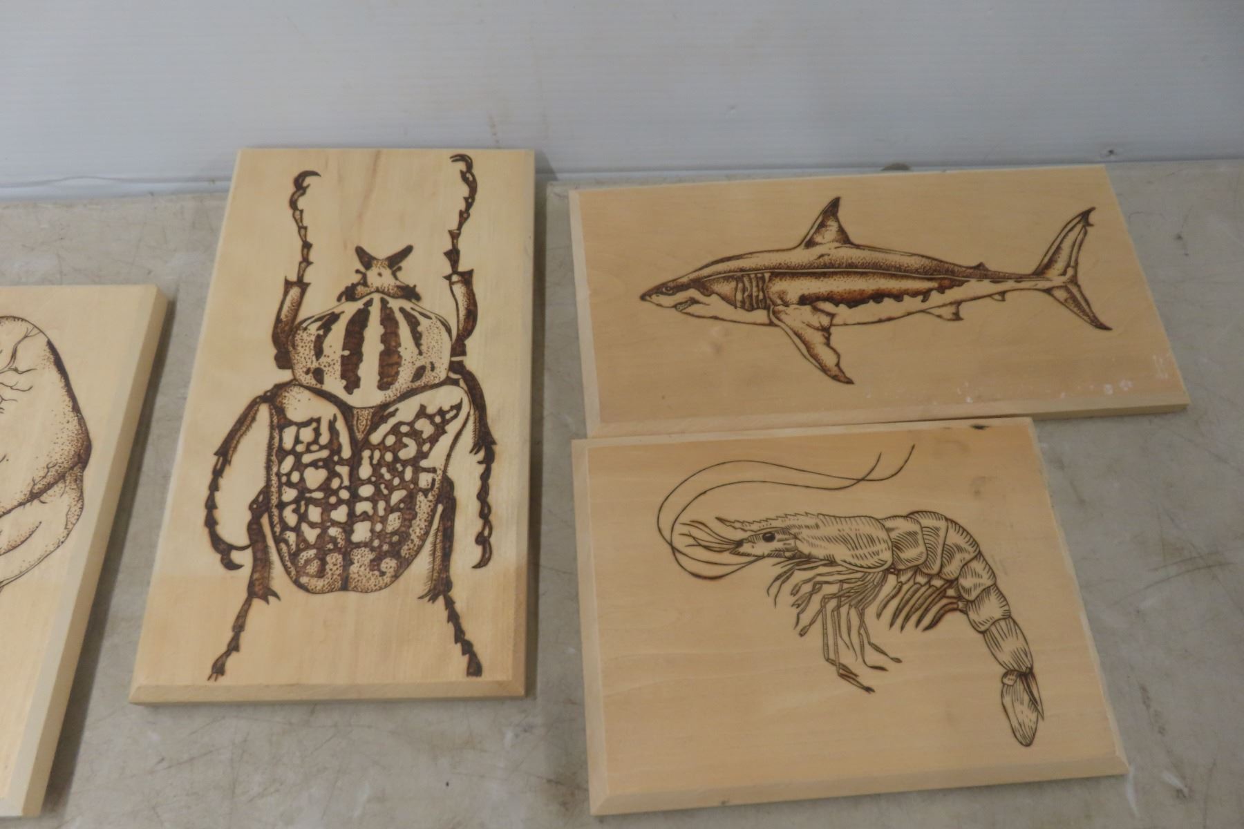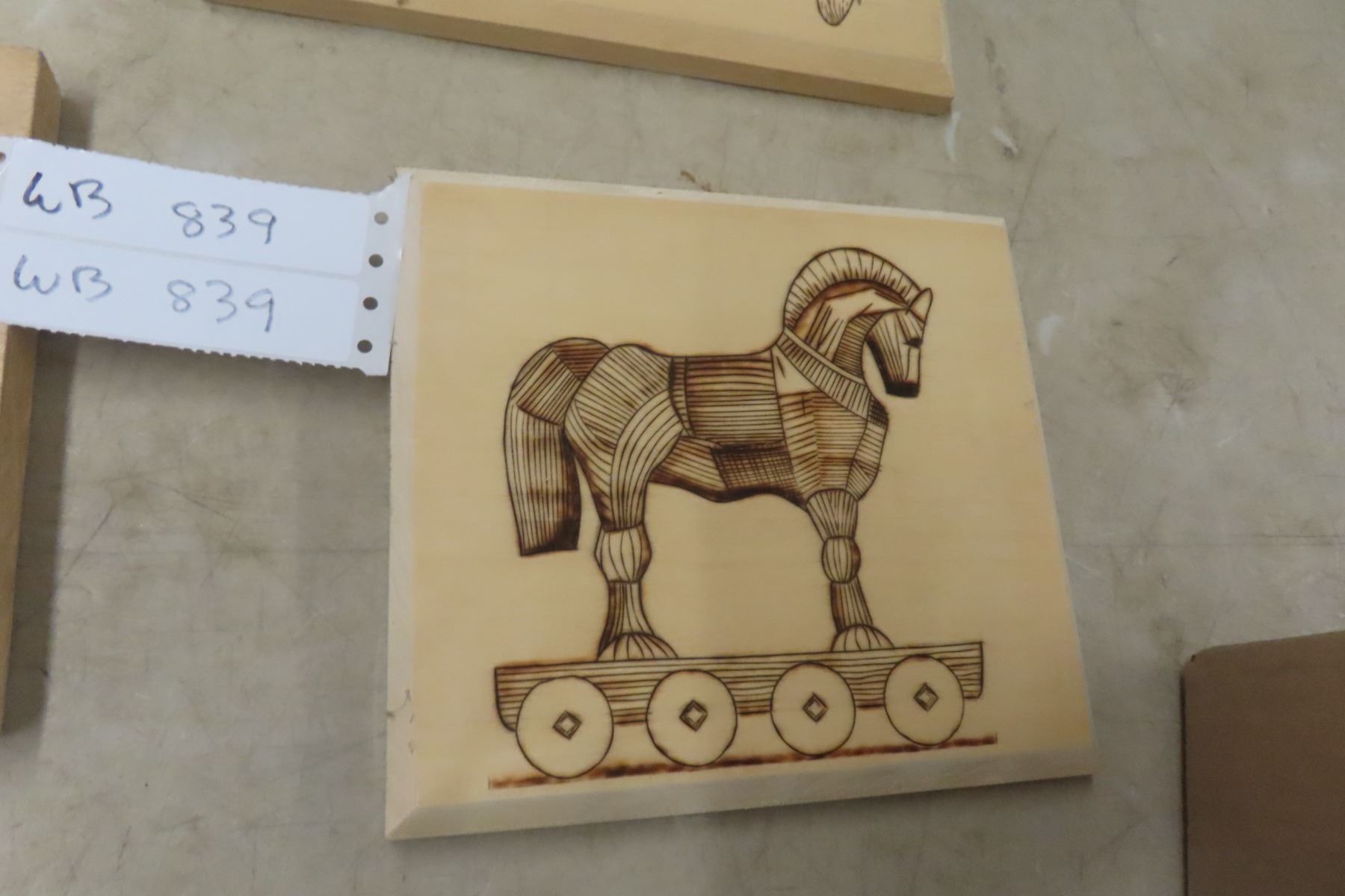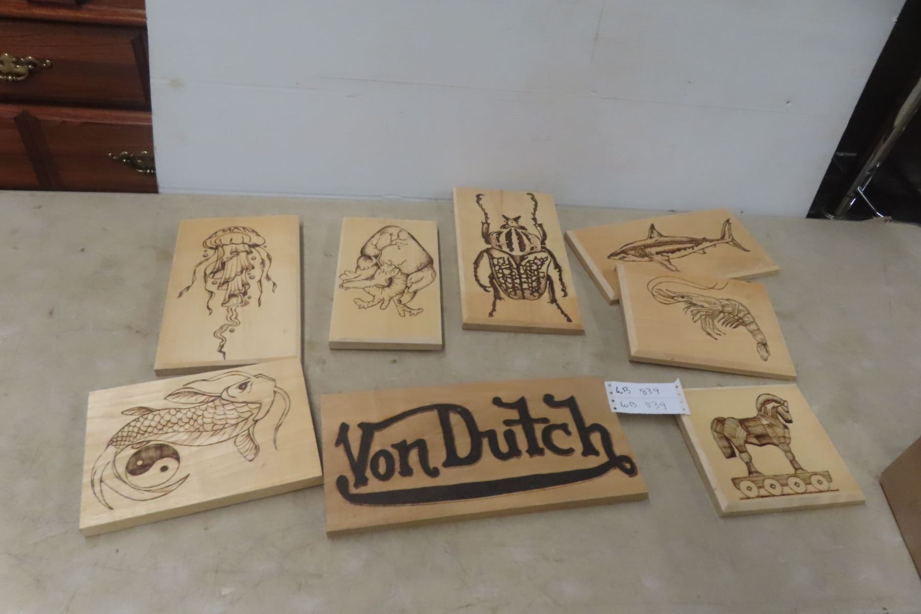 Lot 839 Vintage Wood Burning Craft Wall Pictures, Quantity 8