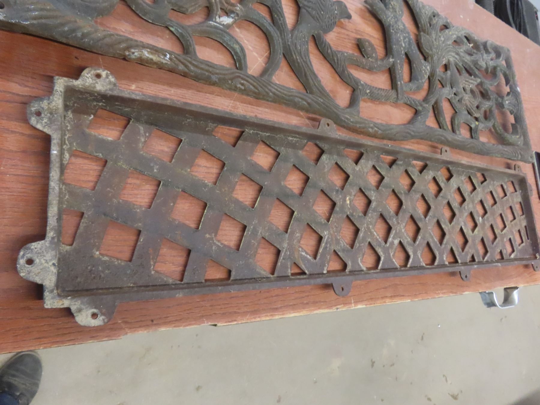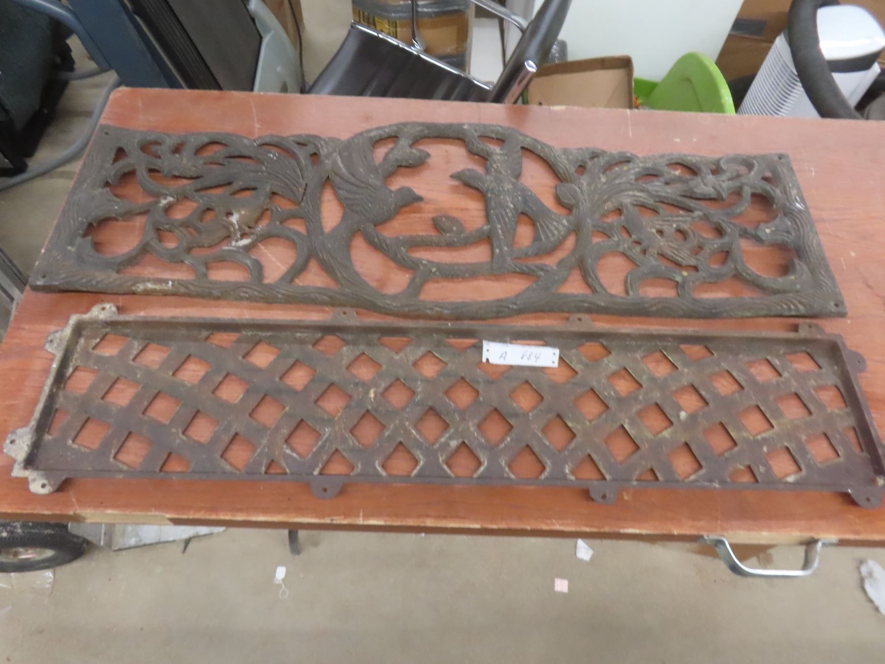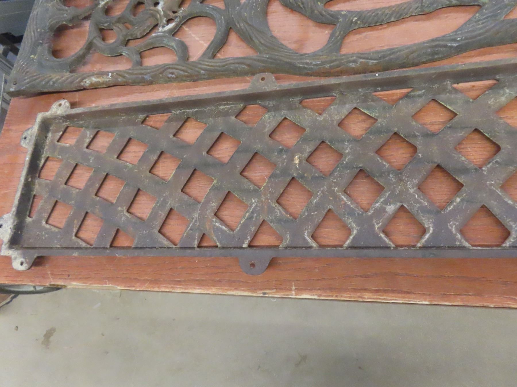Lot 884 Cast Iron Garden Bench Back, 17" x 47", and Cast Iron Grate or Vent Cover, 9 1/2" x 45"