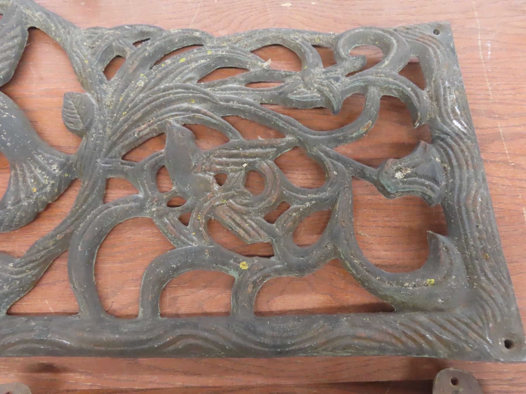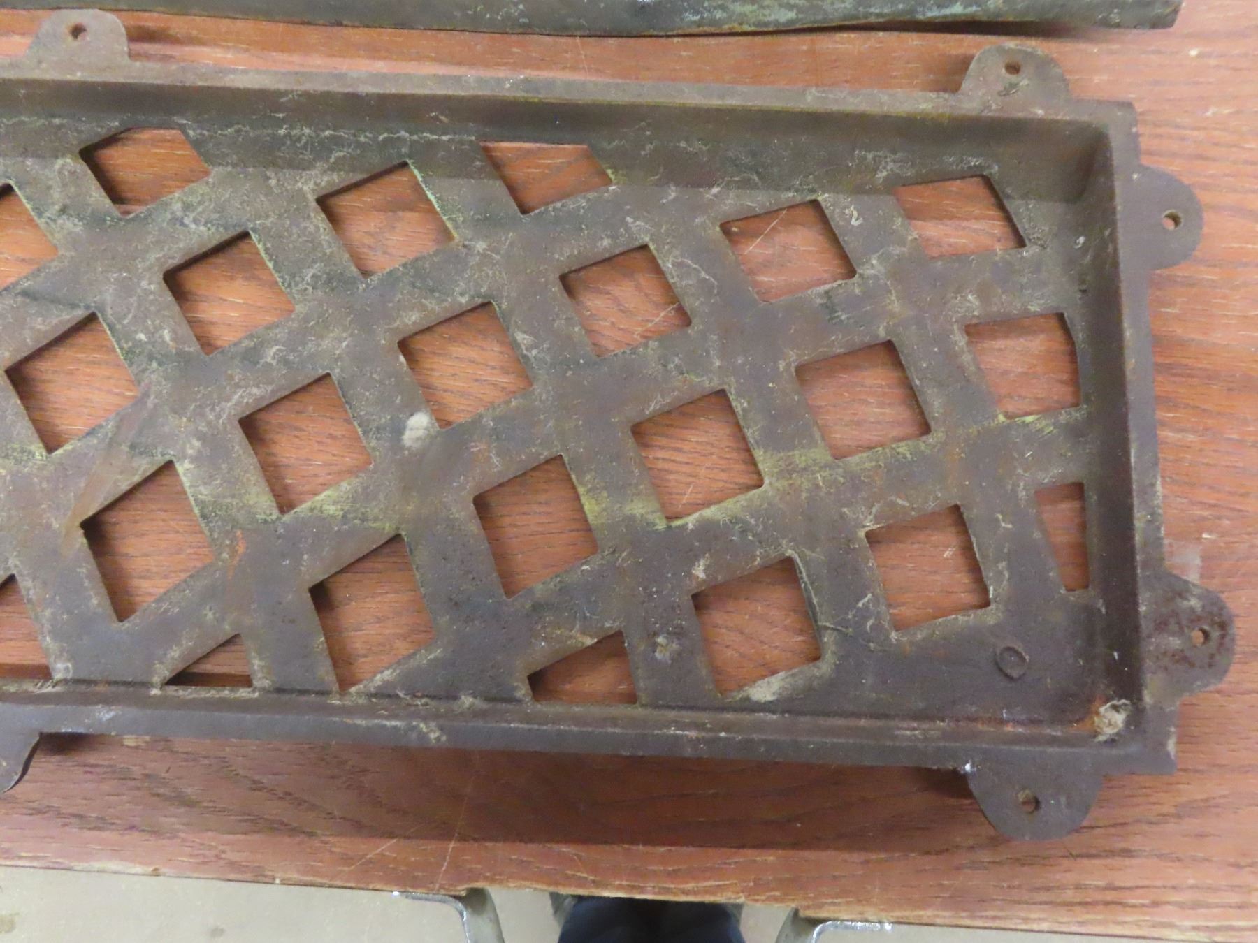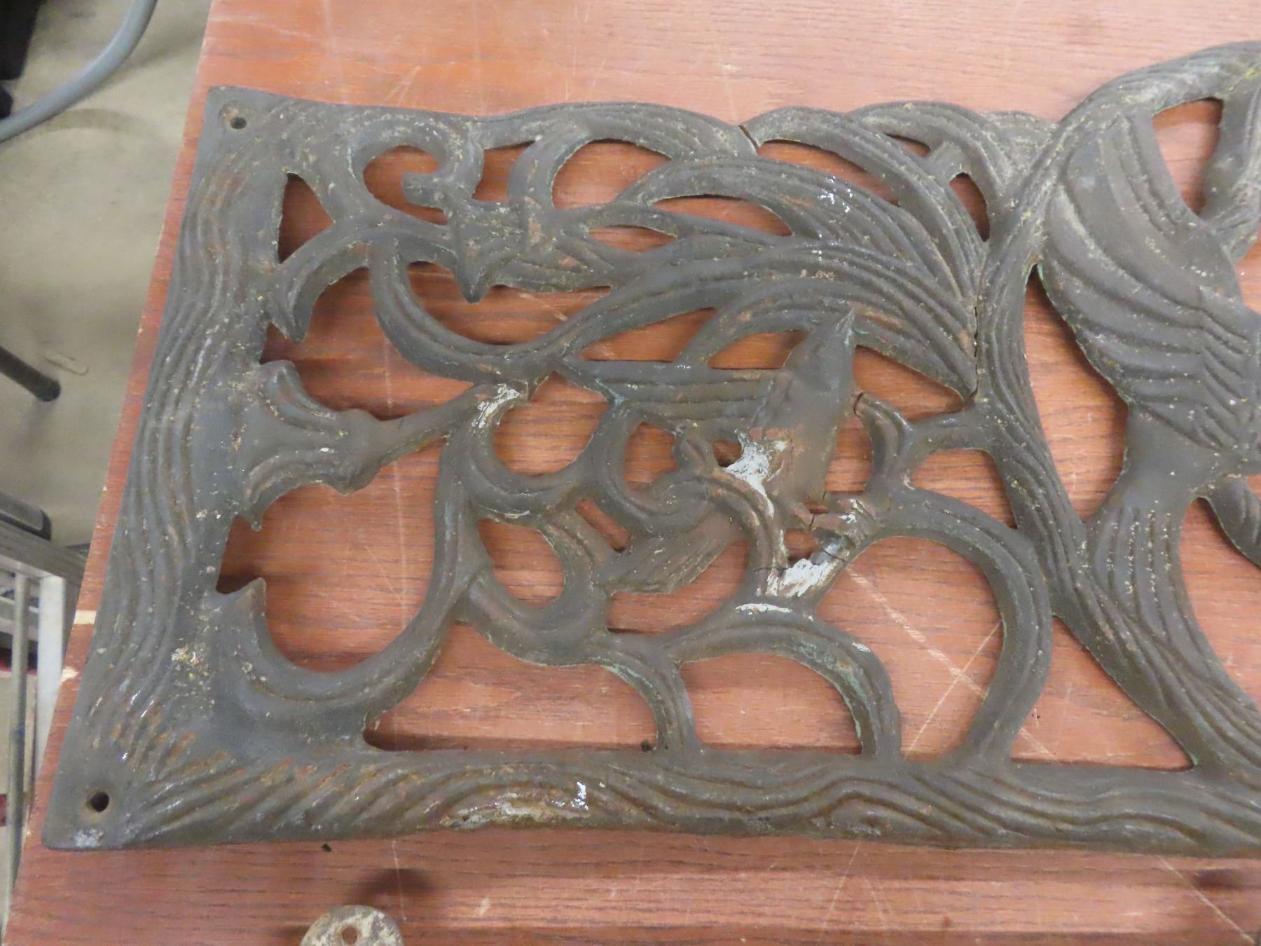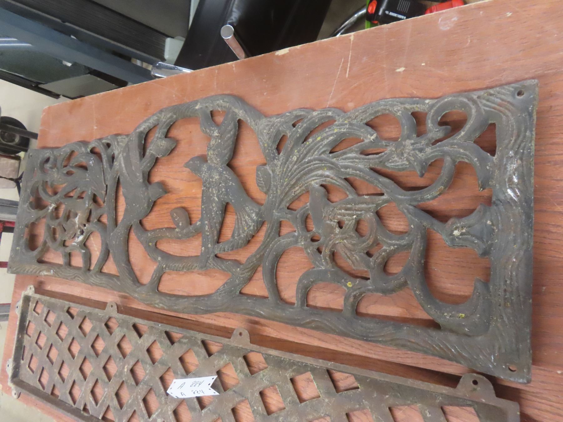 Lot 884 Cast Iron Garden Bench Back, 17" x 47", and Cast Iron Grate or Vent Cover, 9 1/2" x 45"