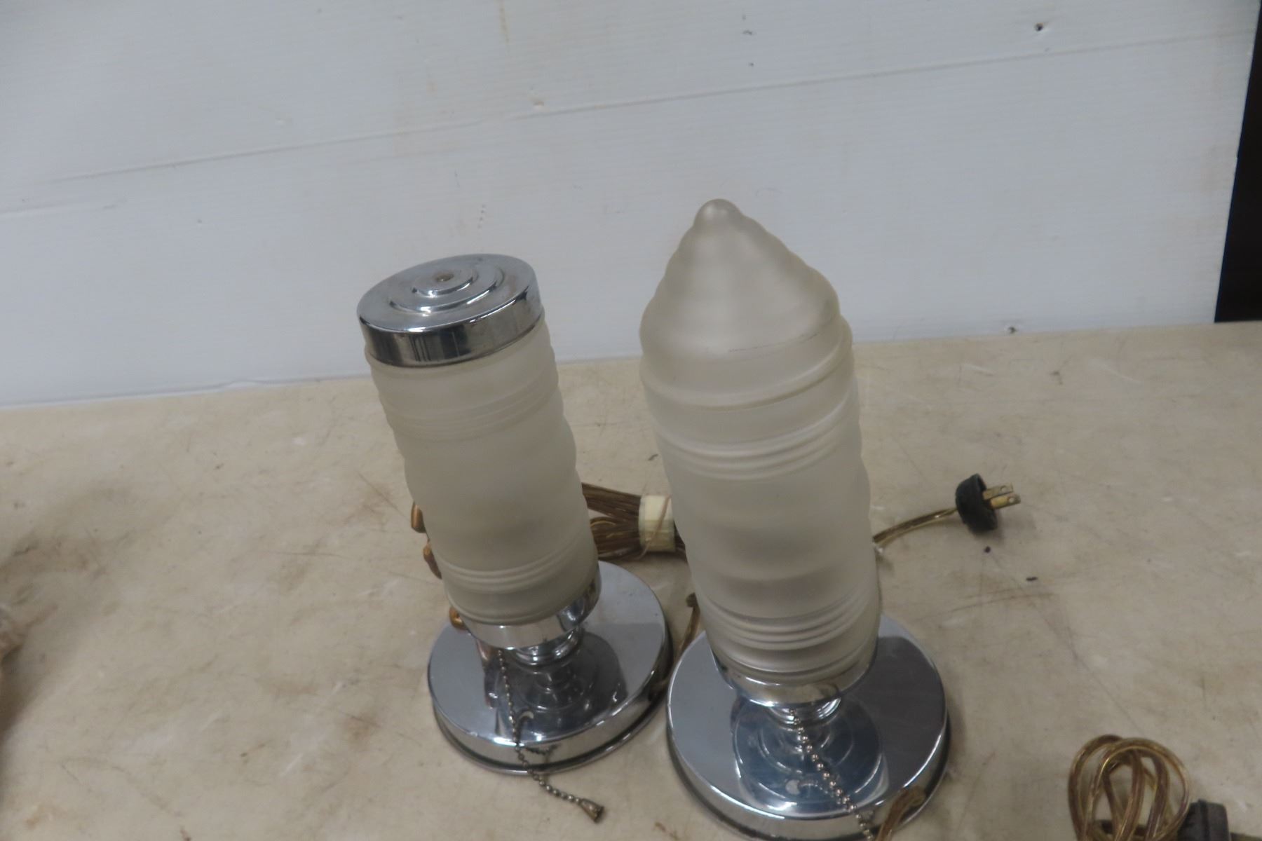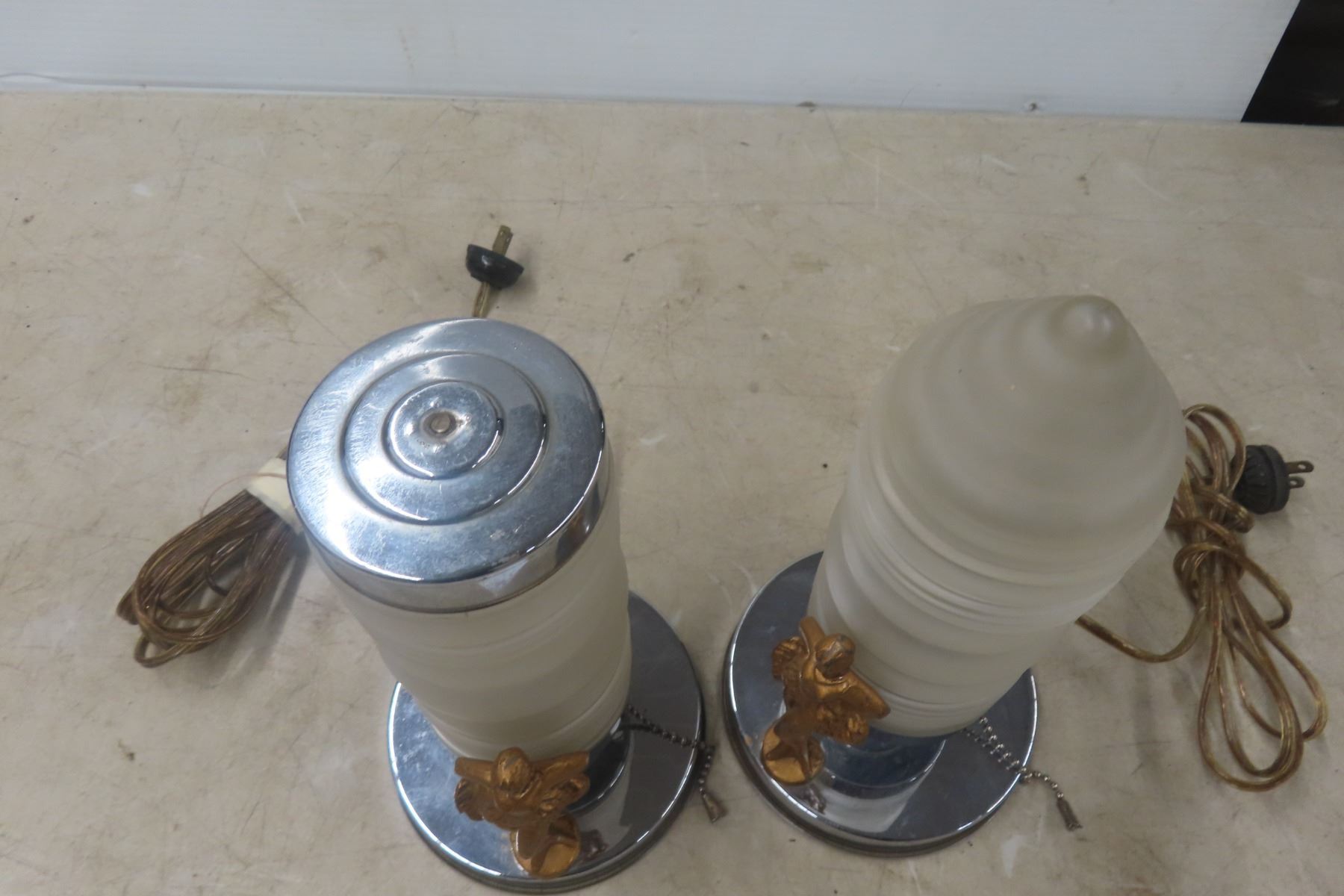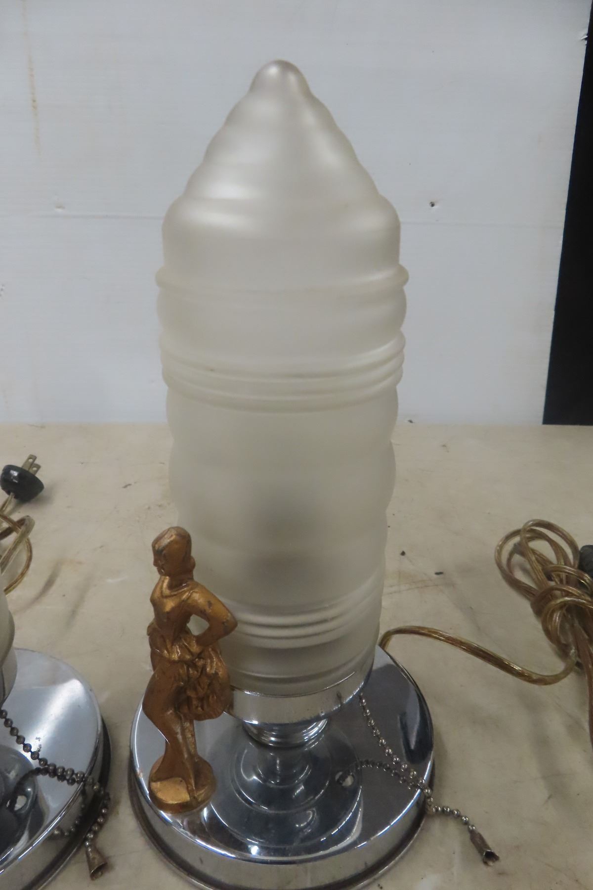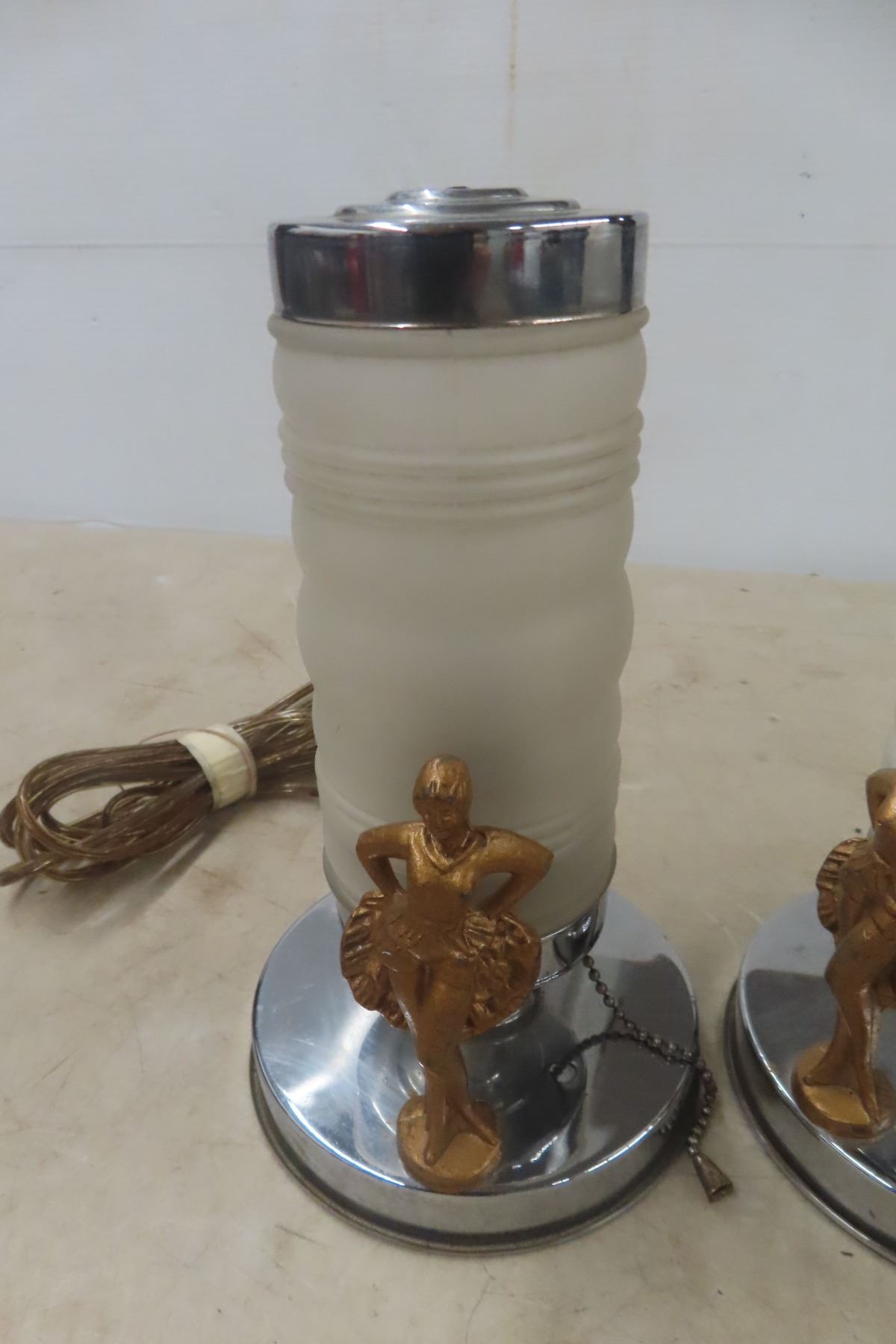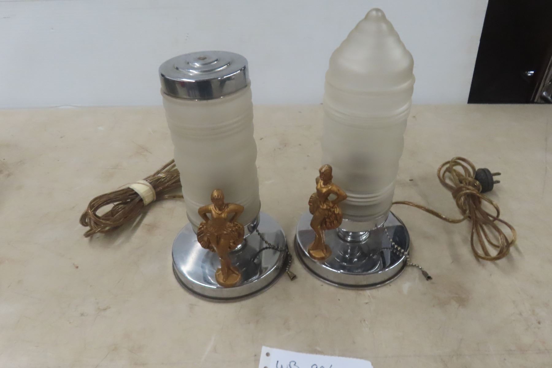 Lot 906 Antique Pair of Art Deco Desk Risqué Lamps, Working