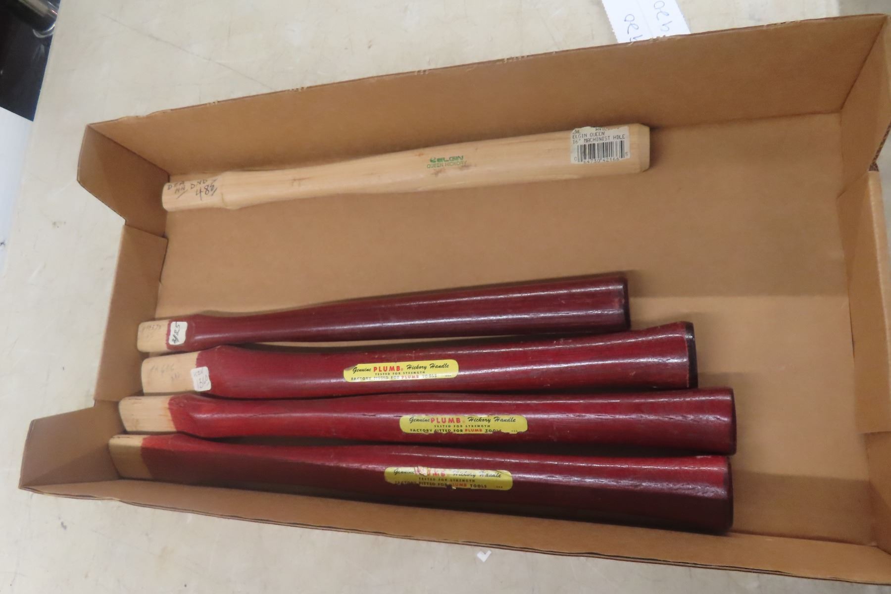 Lot 920 5 Hickory Wood Axe, Hatchet & Hammer Handles, New Old Stock, Longest Handle 18"