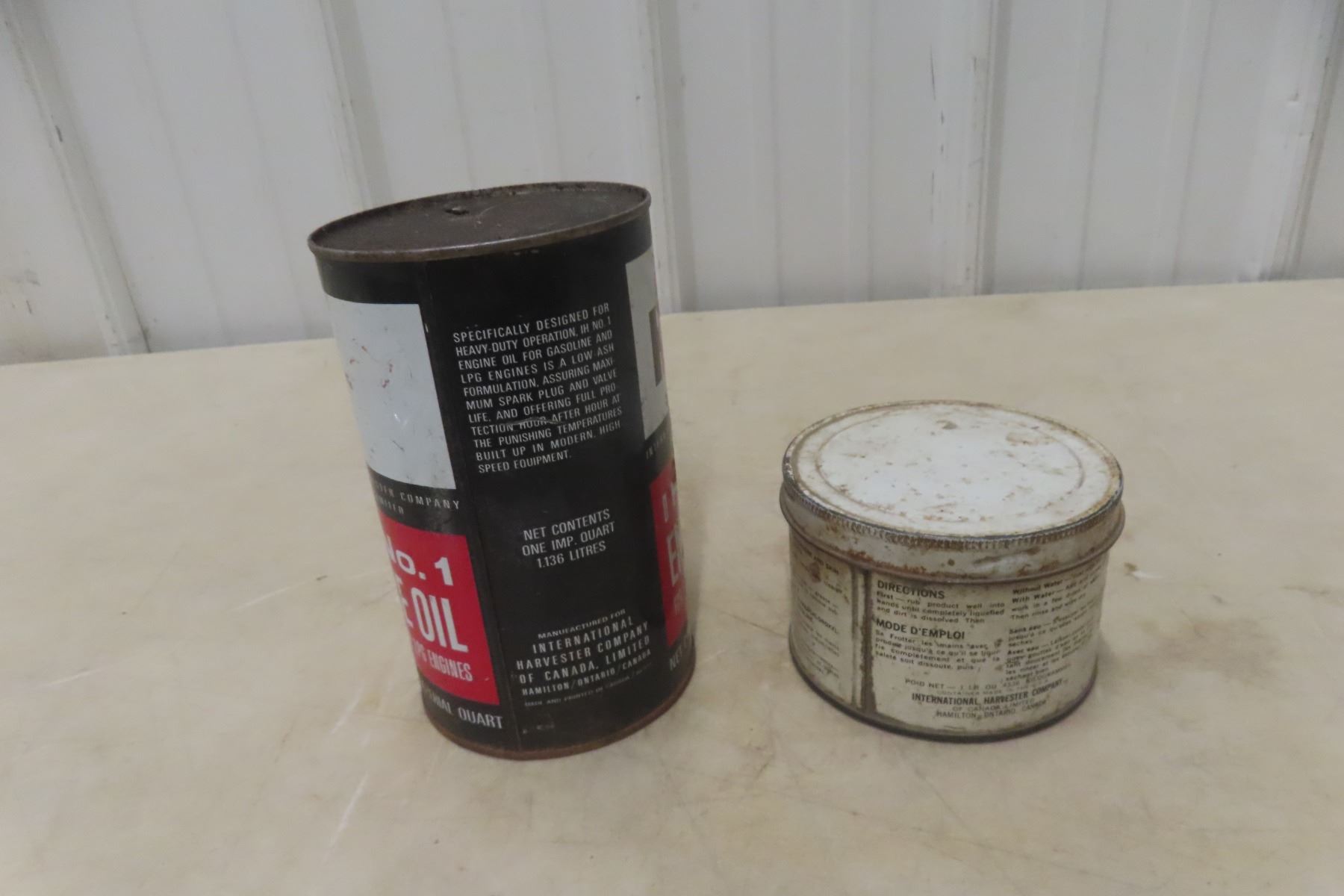 International No. 1 Engine Oil Quart Can And Hand Cleaner Can