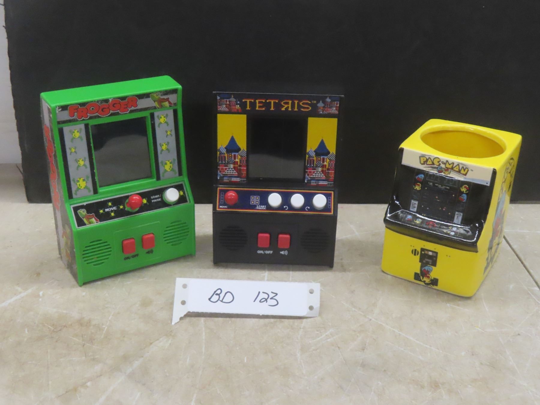 Lot 123 Two Vintage Mini Arcade Games Frogger and Tetris Plus Pac-Man Arcade Mug