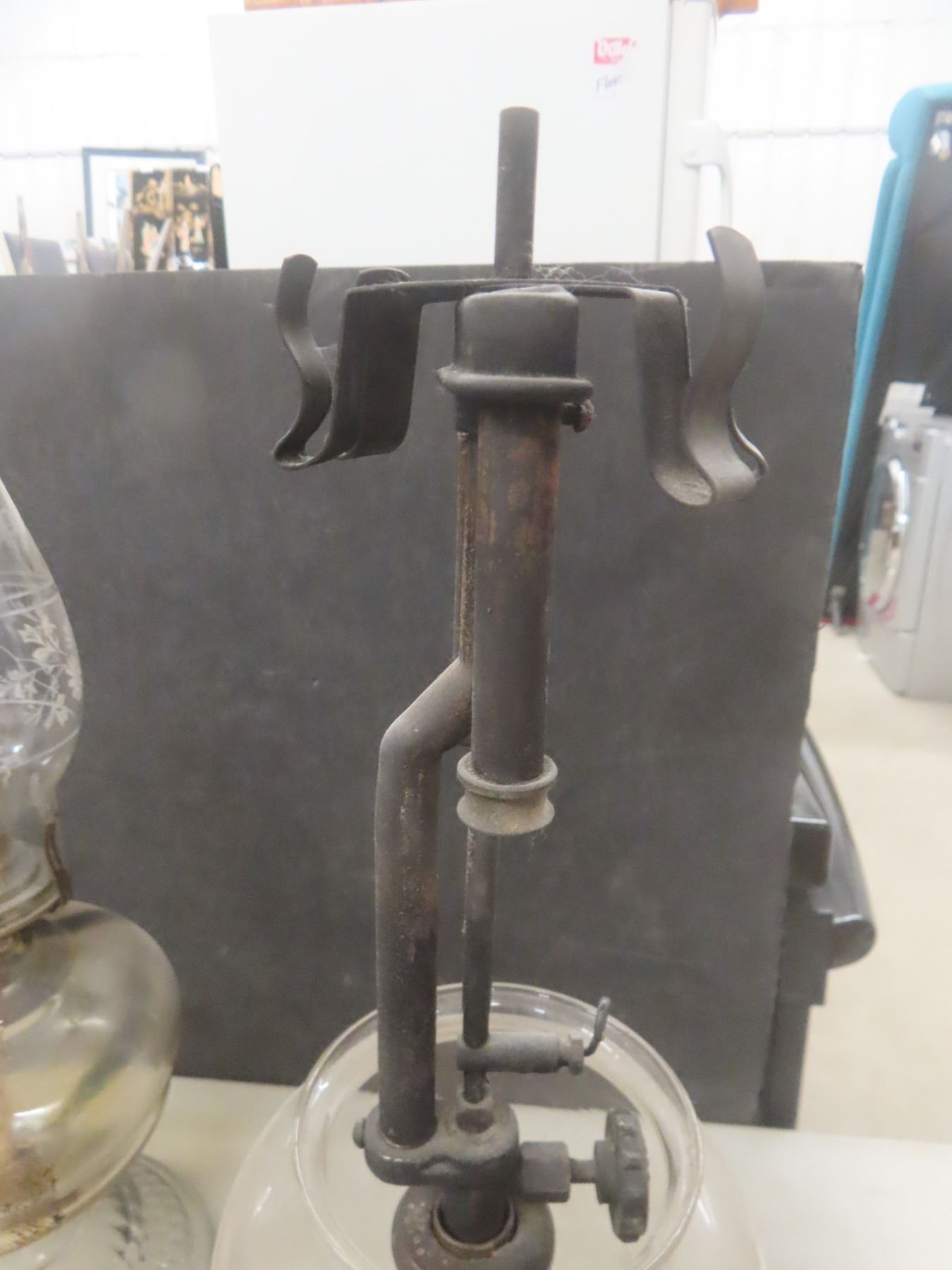 Lot 302 Coal Oil Lamp, Electric Brass Base Oil Looking Lamp 19" Tall, Vintage Coleman Lamp