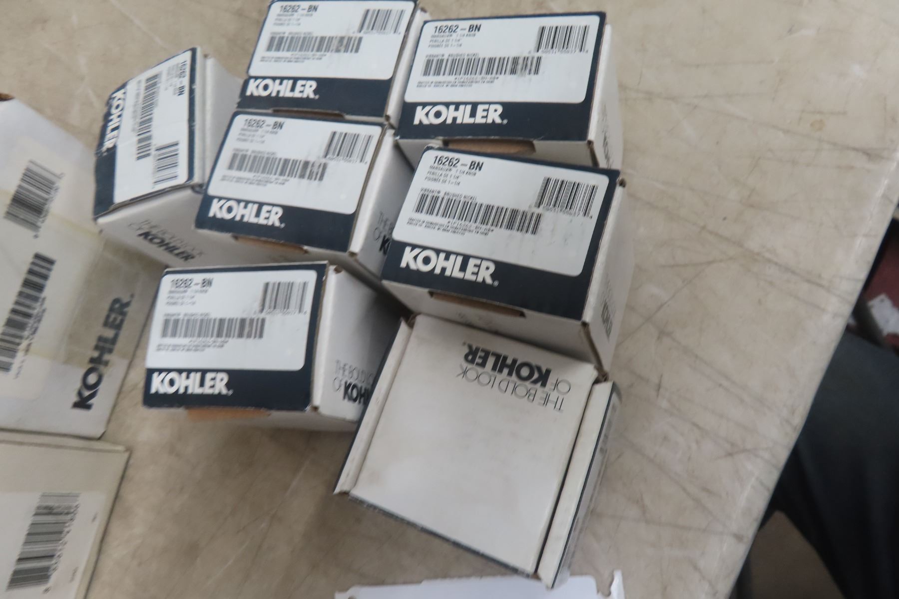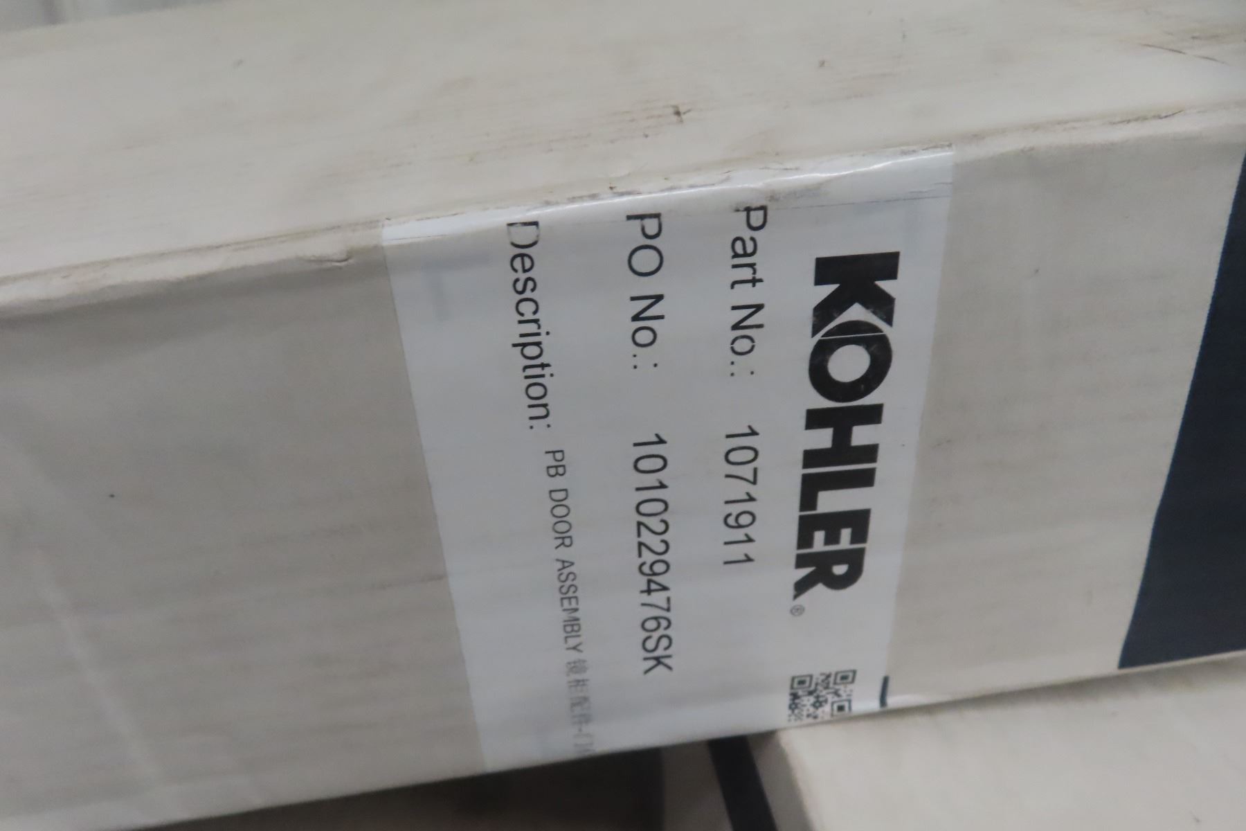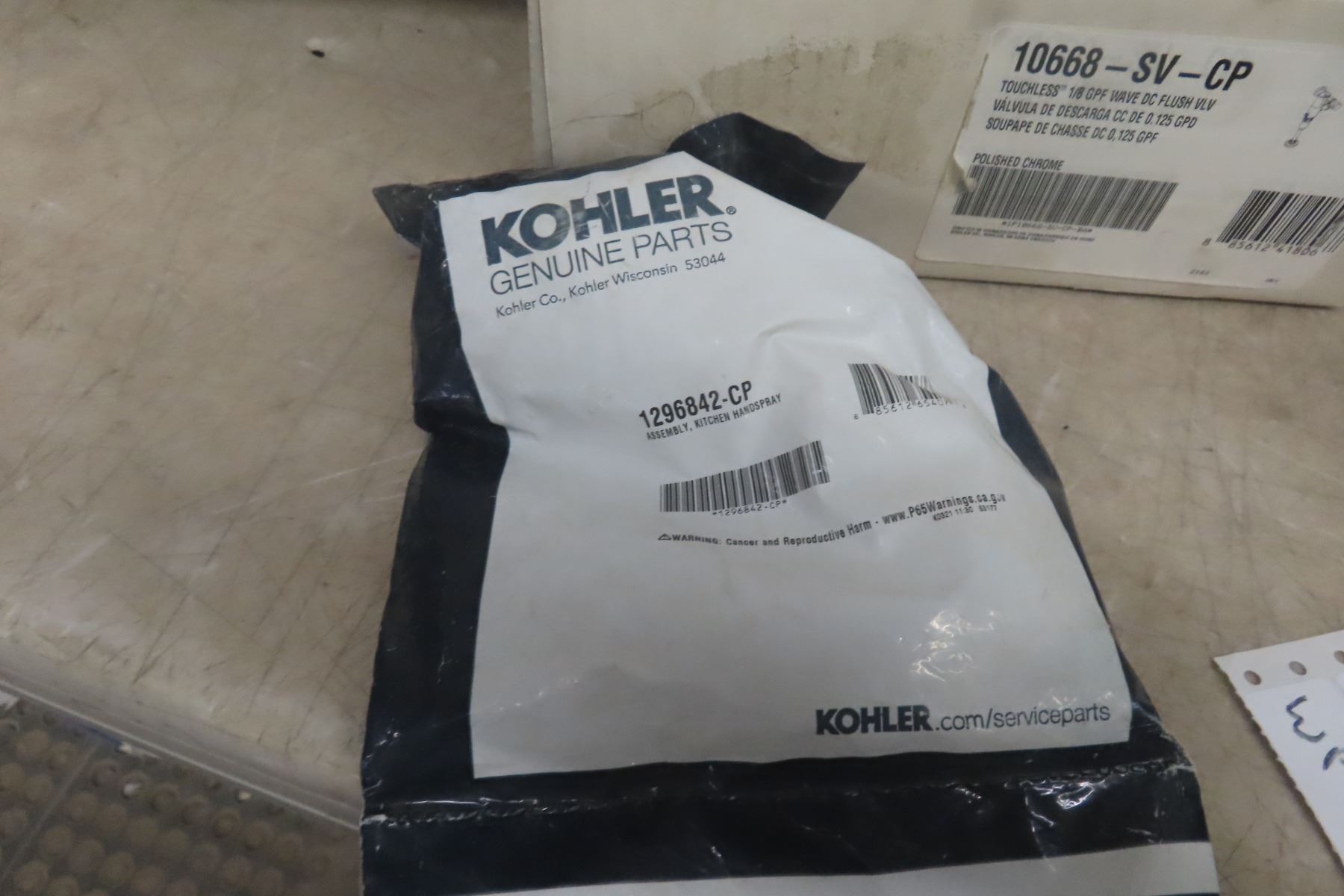 Lot 443 New Kohler Items - Door Assembly, Touchless Wave Flush, Kitchen Hand Spray, Lever Assembly, and Mor