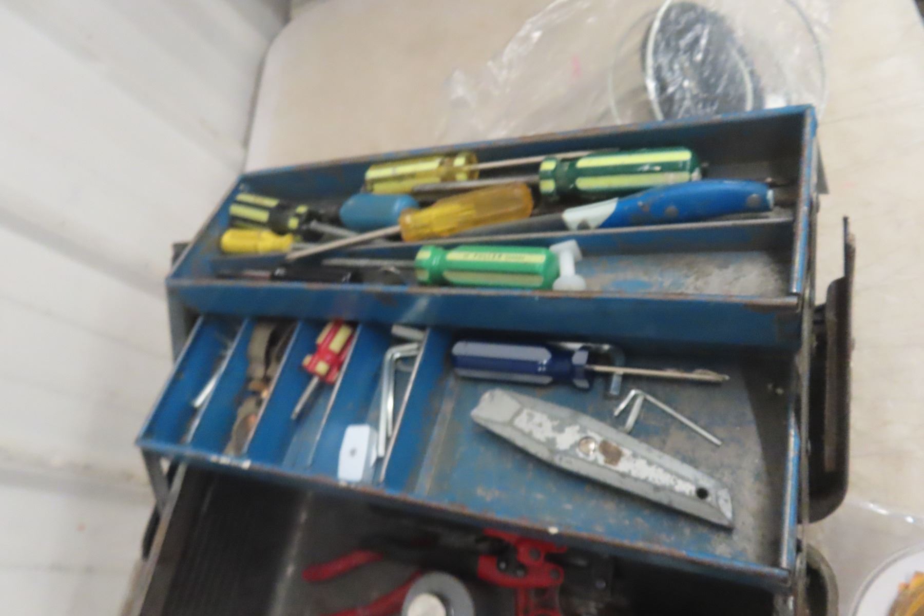 MetalTool Box Bolt Bin With Drill Bits and Screwdrivers