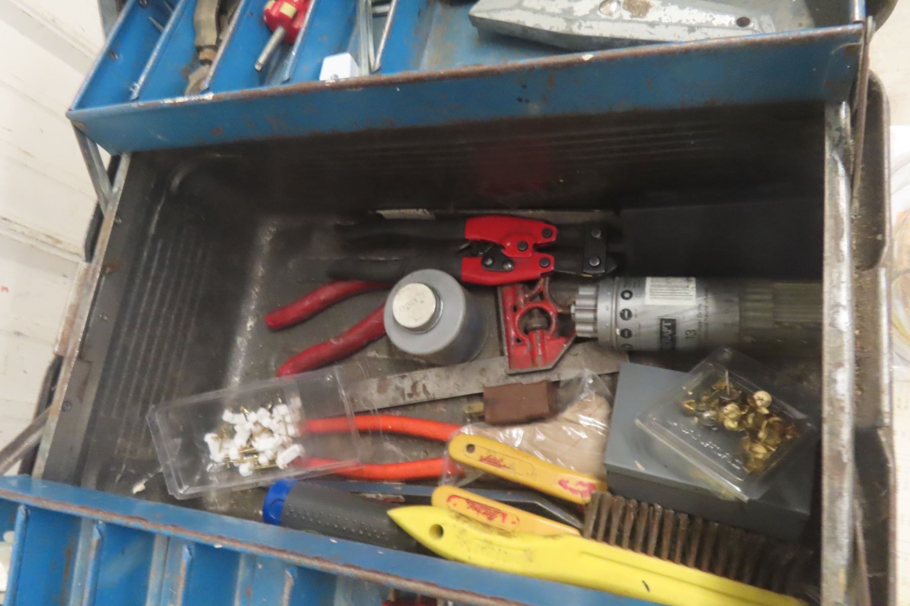 Lot 523 MetalTool Box Bolt Bin With Drill Bits and Screwdrivers