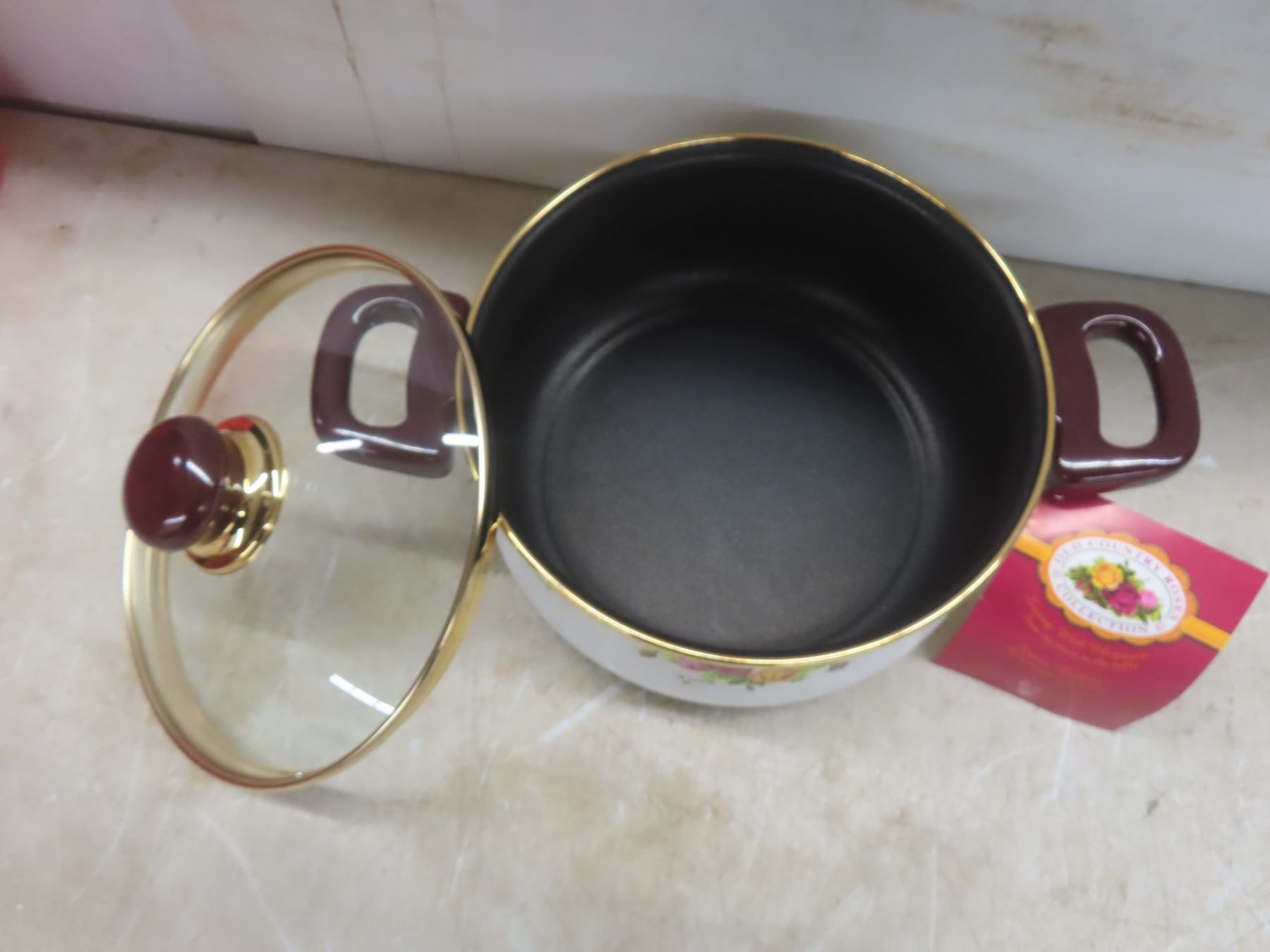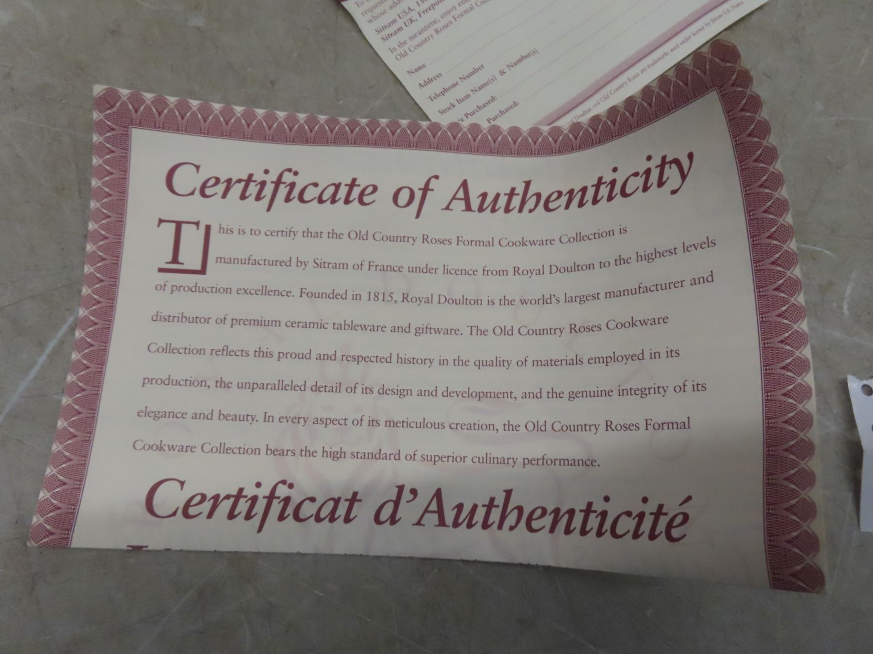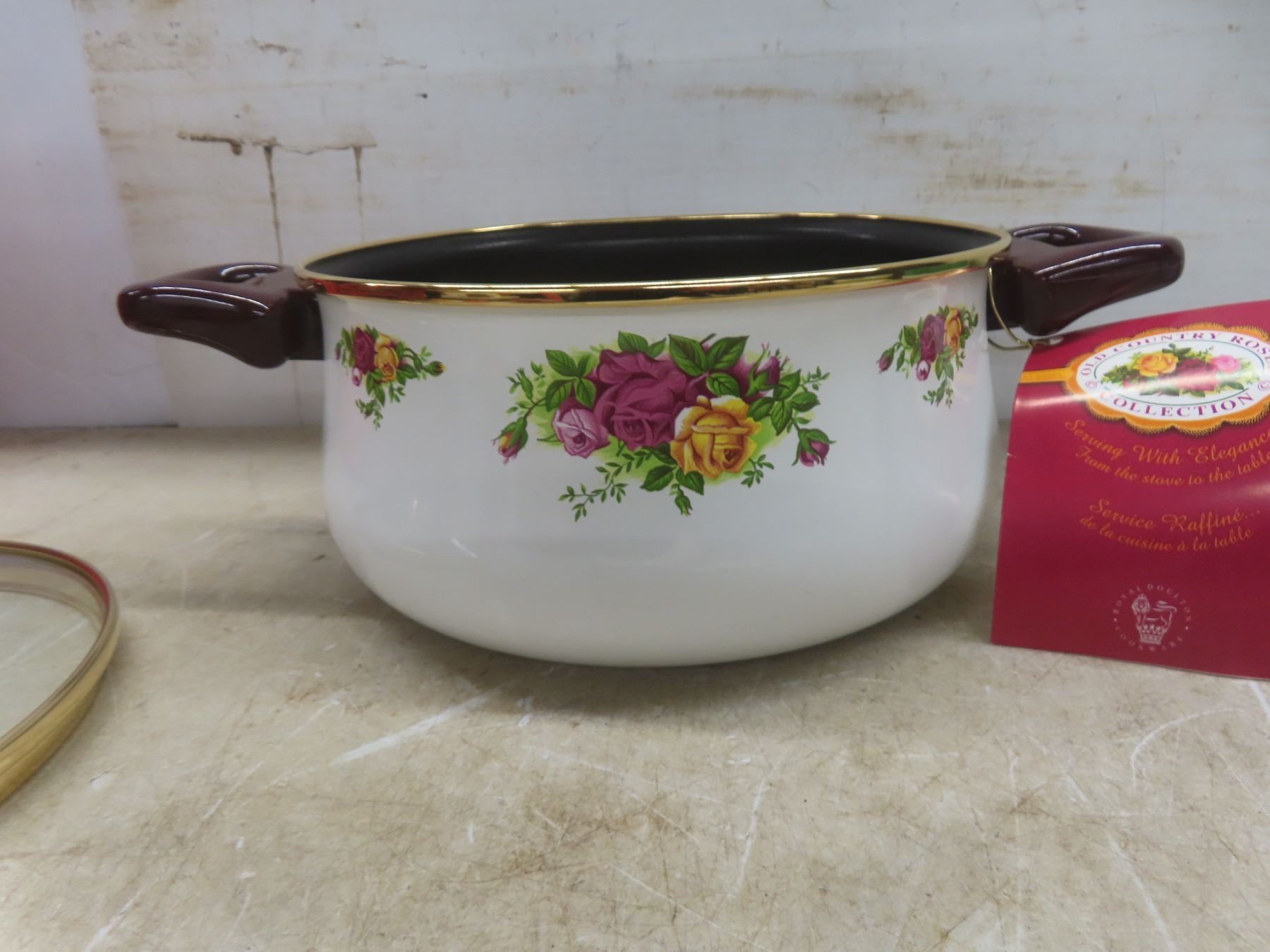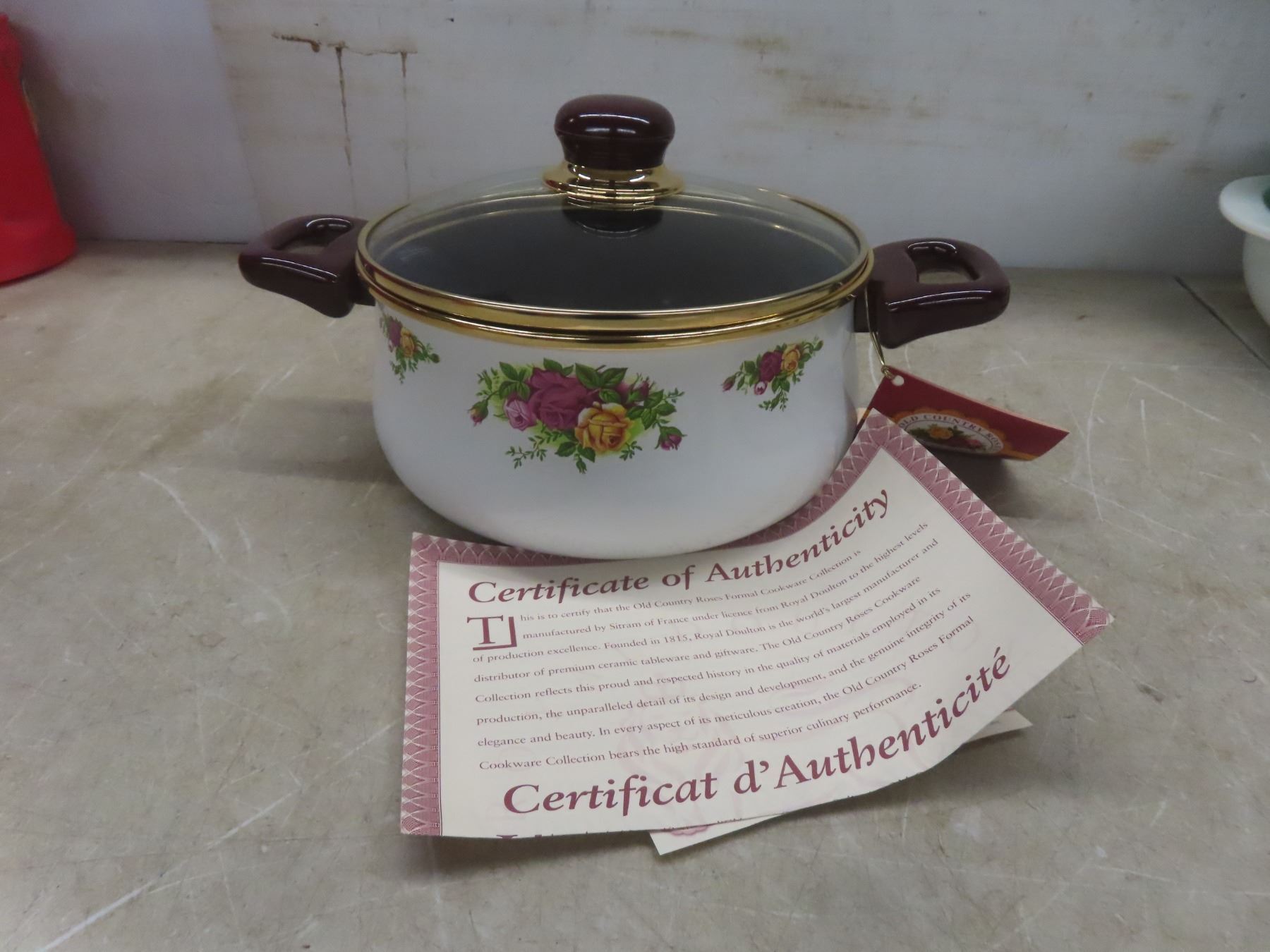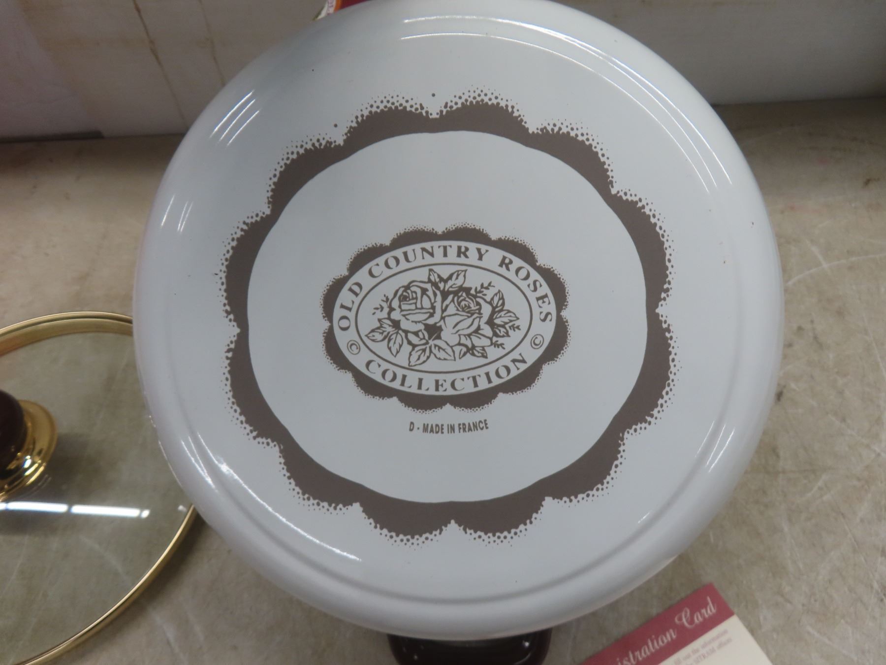 Lot 587 4 Pyrex Mixing Bowls, Covered Casserole Dishes, and Old Country Roses Formal Cookware With Lid