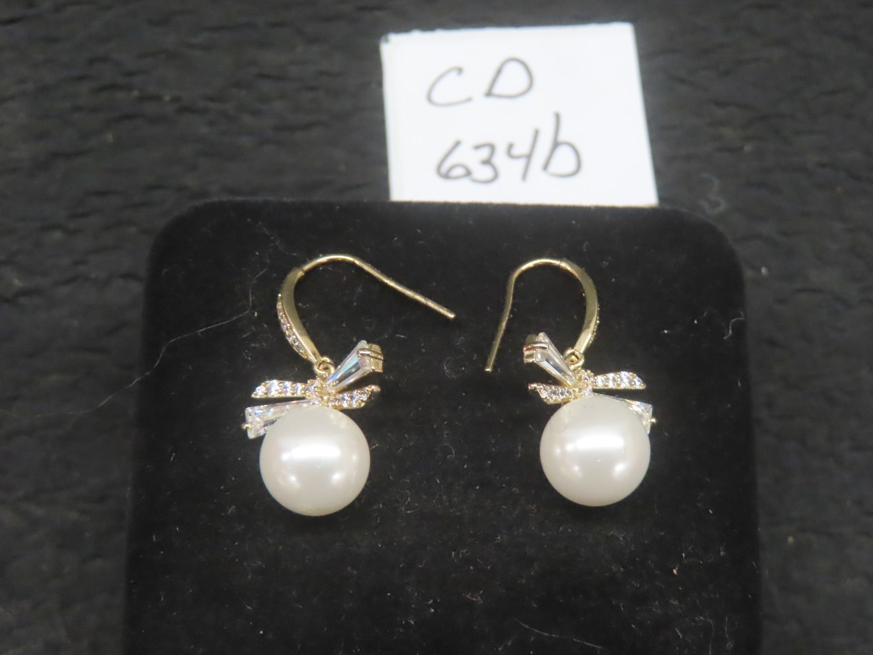 Lot 634B New 14K Gold-Plated 10.0mm Synthetic Pearl Fishhook Earrings