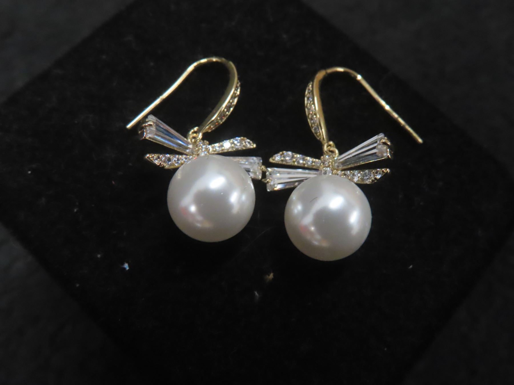 New 14K Gold-Plated 10.0mm Synthetic Pearl Fishhook Earrings