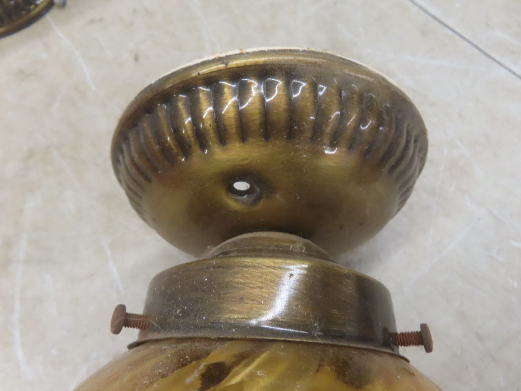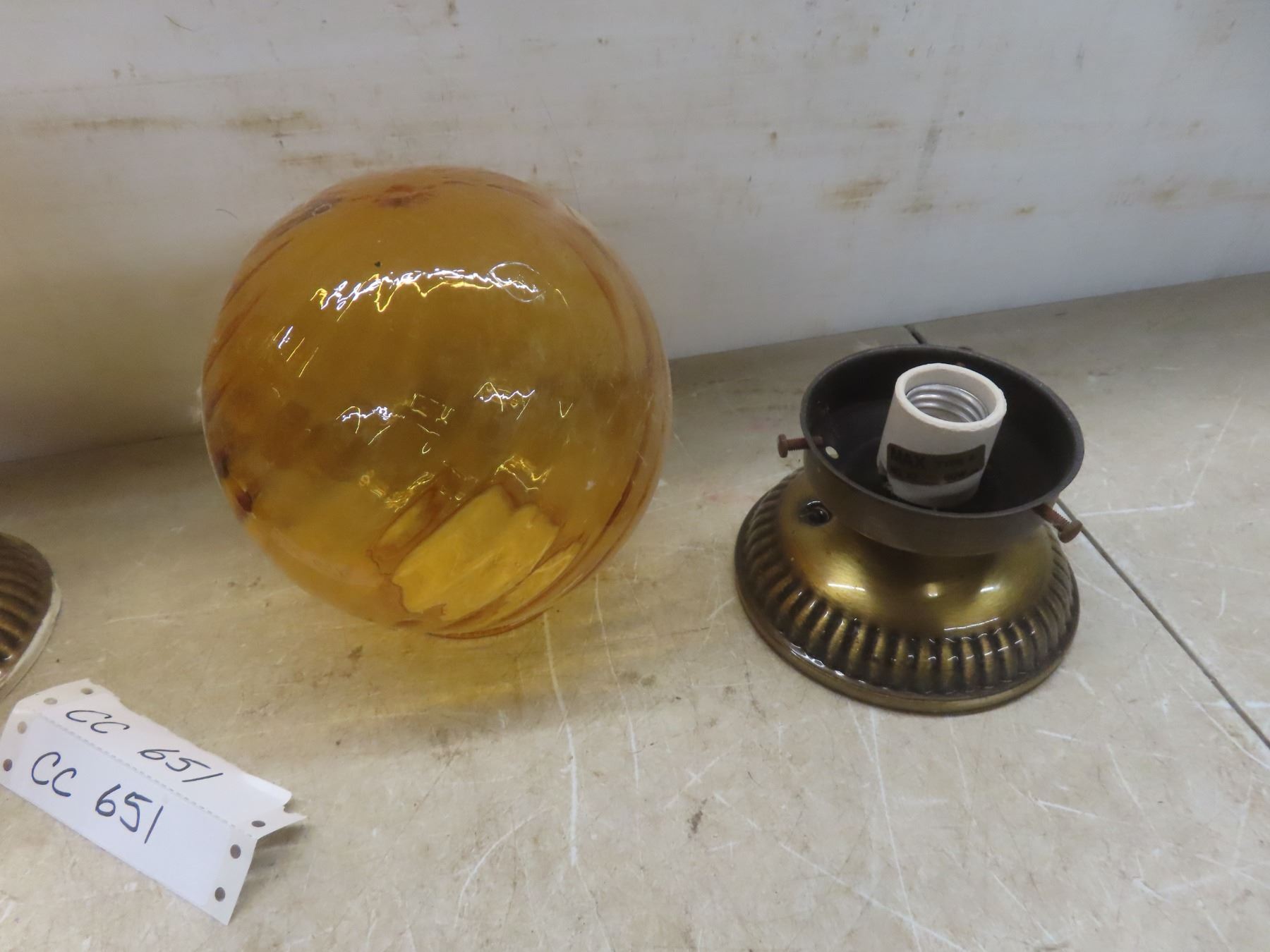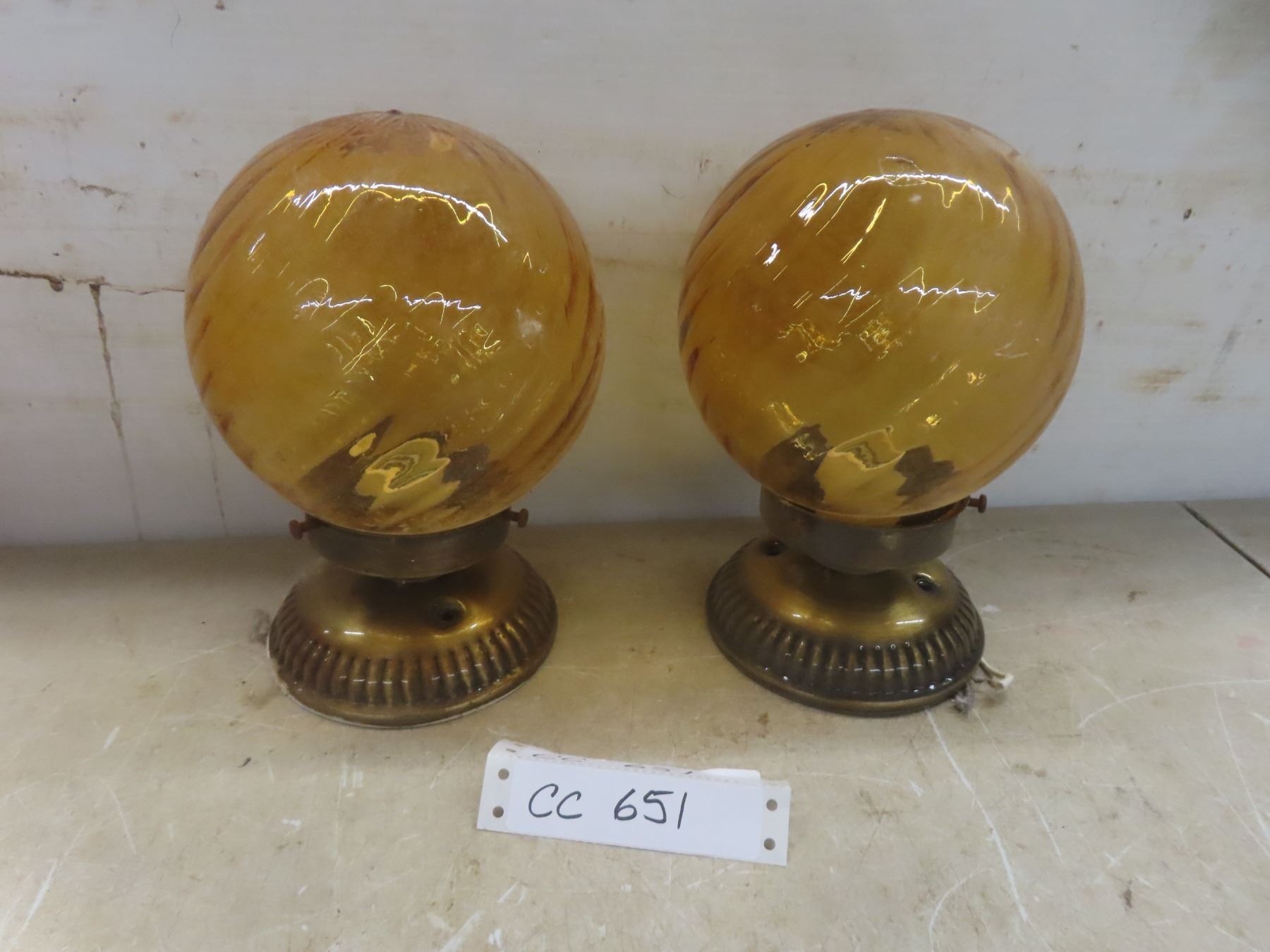 2 Ceiling Mount Light Fixtures w/Amber Coloured Globes