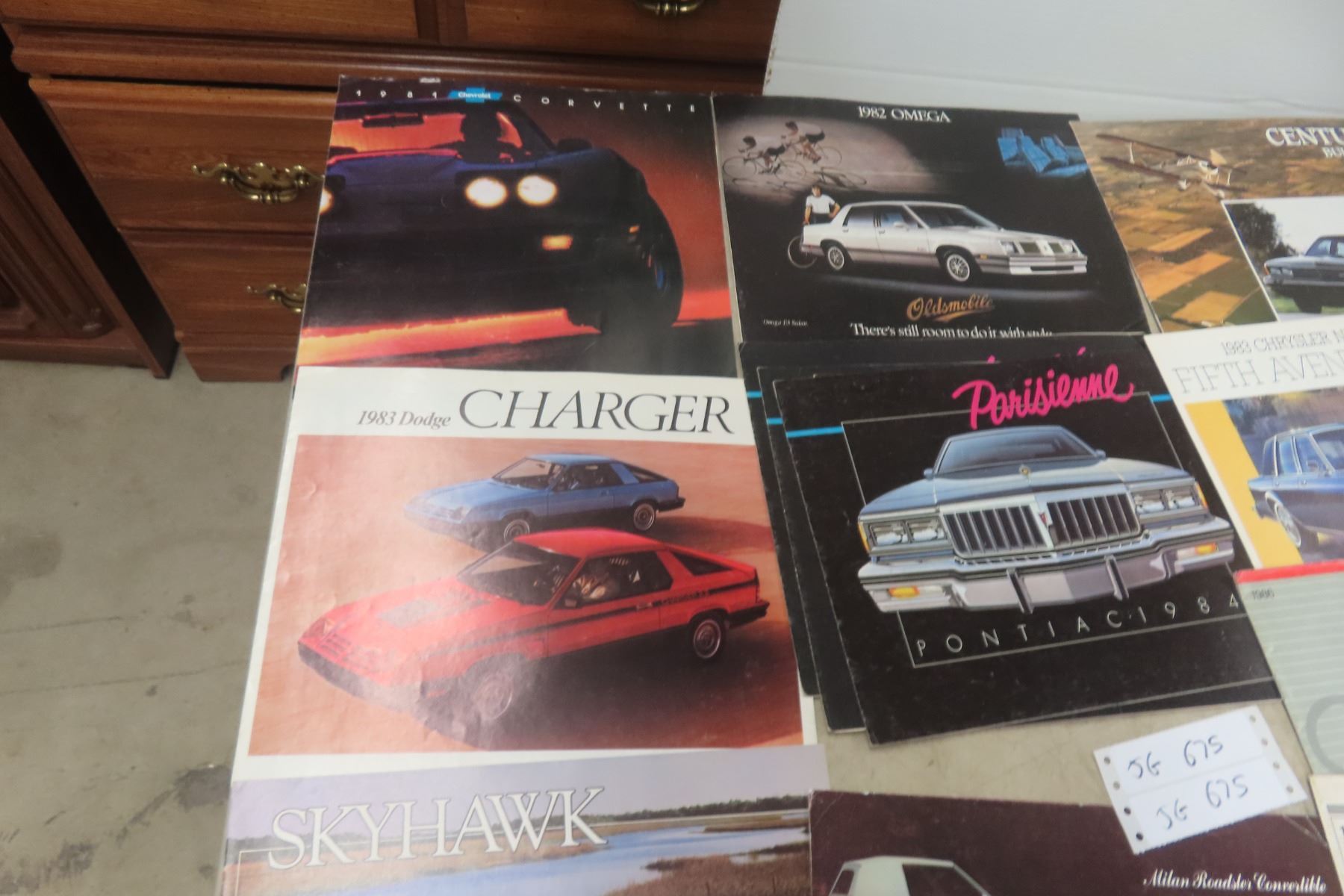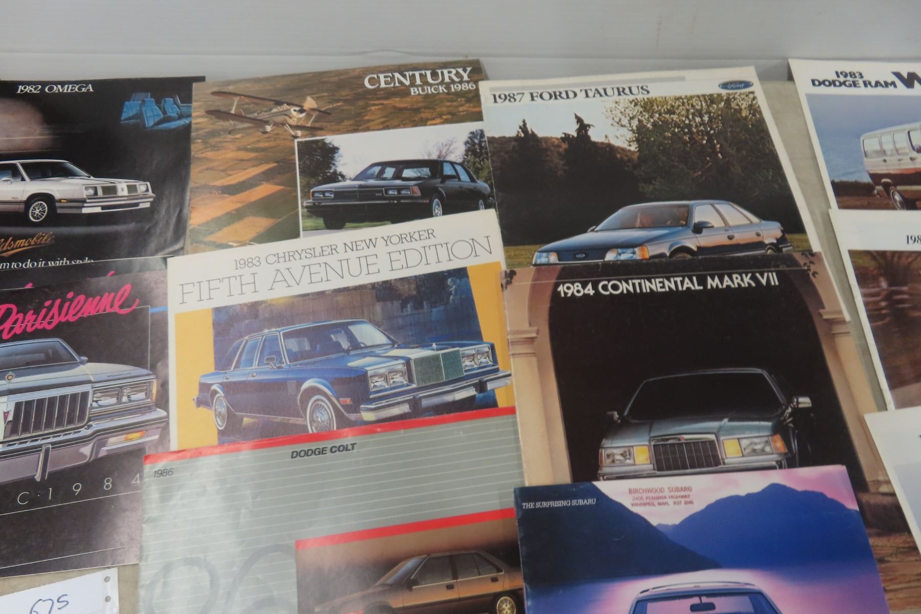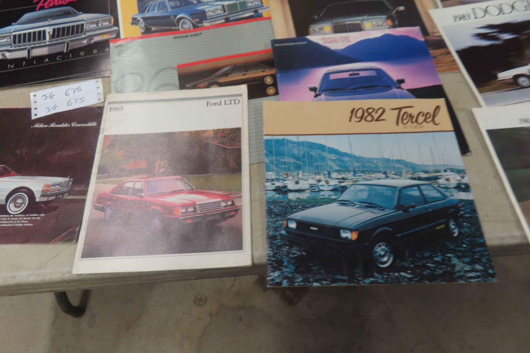 Lot 675 124 Vintage Auto Dealership Sales Brochures From the 1980s - Dodge, Olds, Pontiac, Ford +