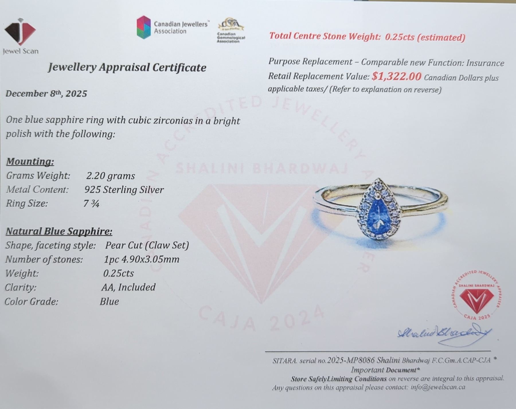 Lot 776B 2.2 ct Certified Silver Sapphire gemstone Ring ($1,322 Appraisal)