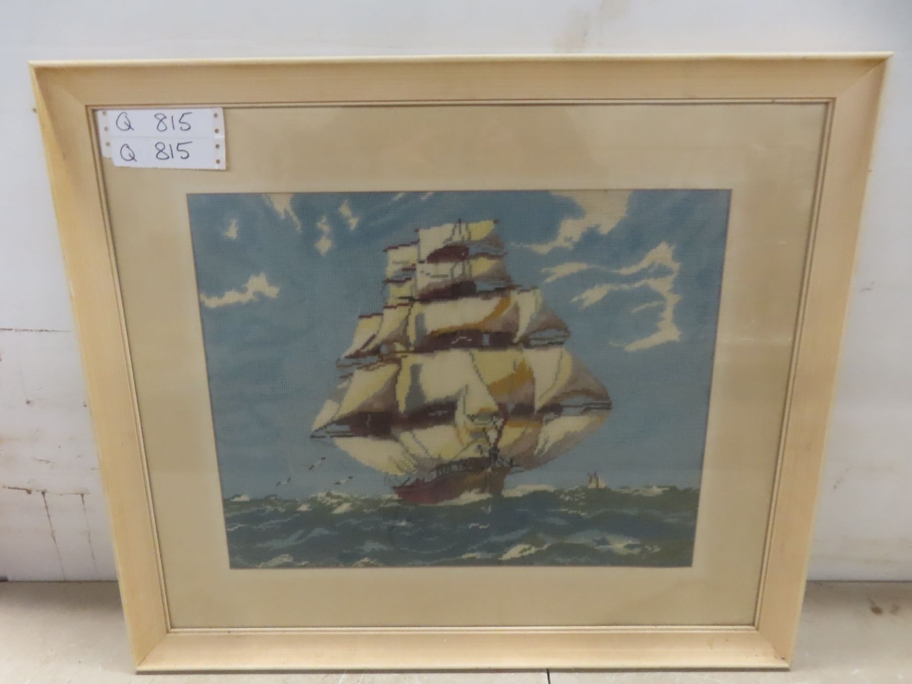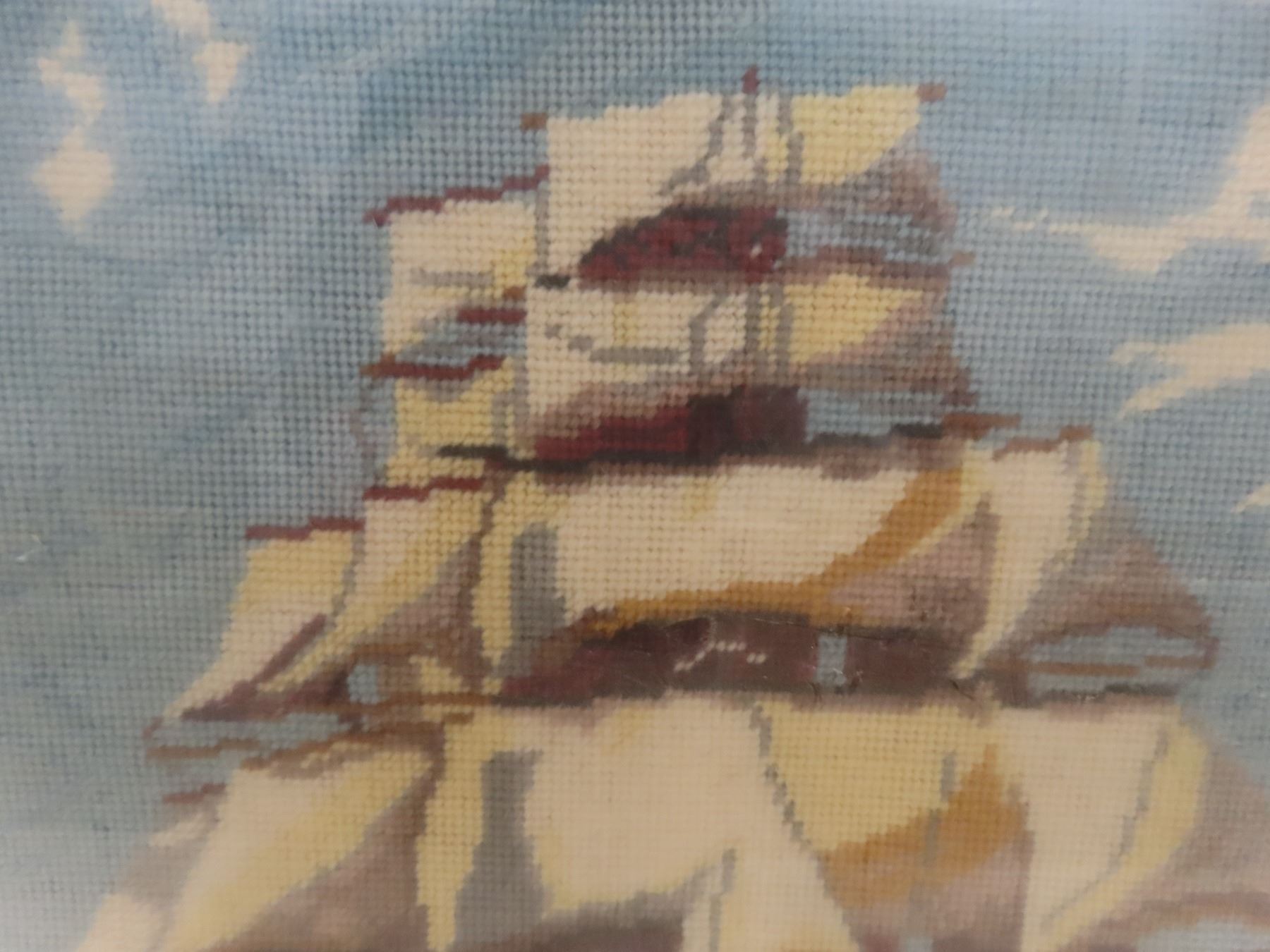 Lot 815 Large Framed Petit Point of a Ship, 27 1/2" x 23 1/2"