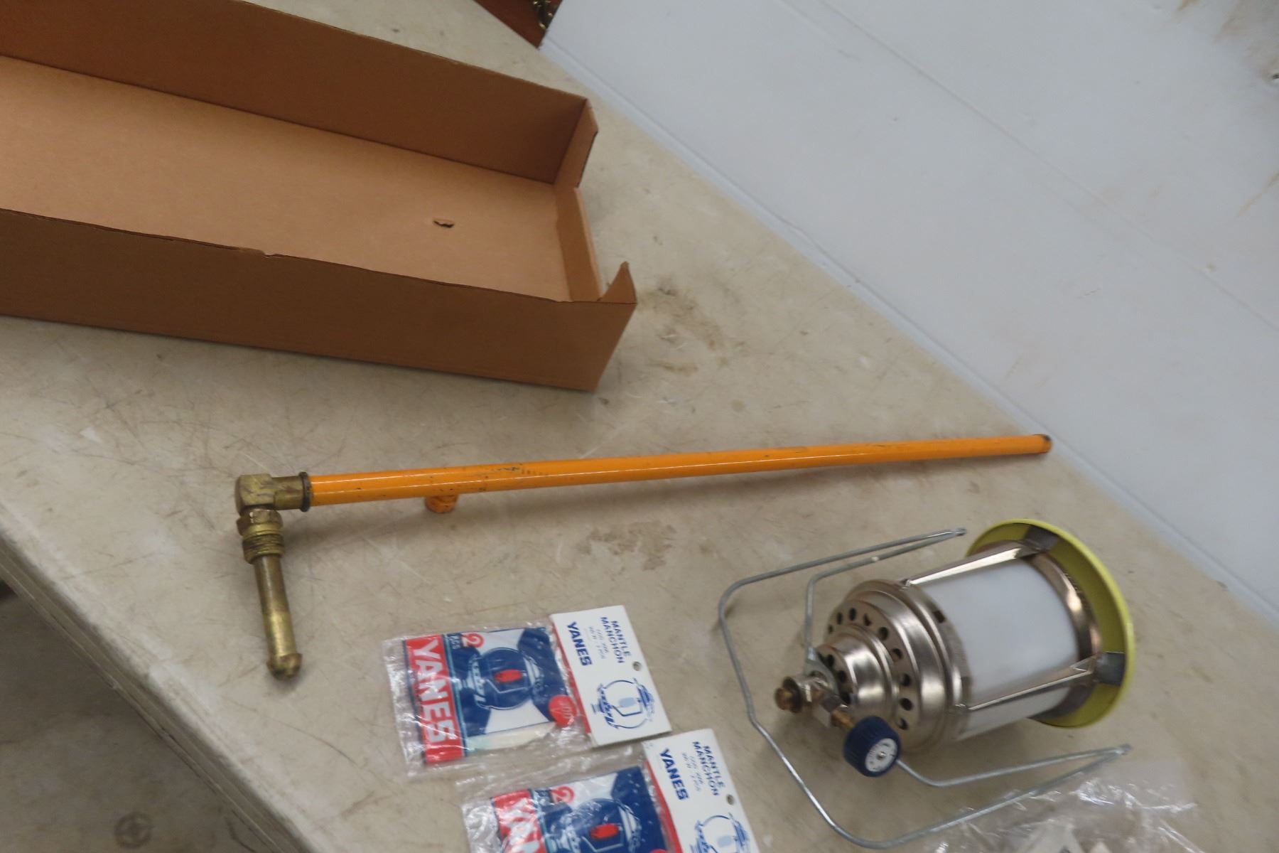 Lot 828 Vintage Primus Supra X2152 Sweden Propane Lantern With 5 Mantles, Camp Heater, Attachment, and Inst