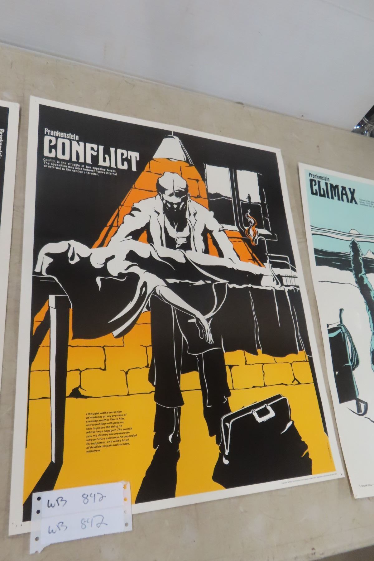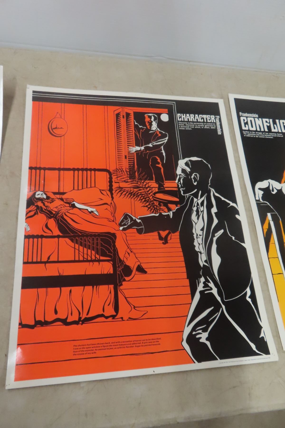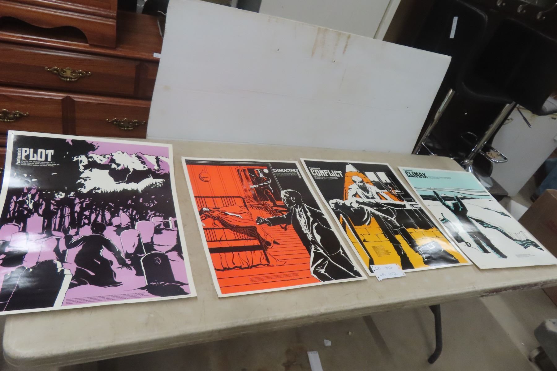 Lot 842 4 Vintage Frankenstein Large Laminated Character Posters