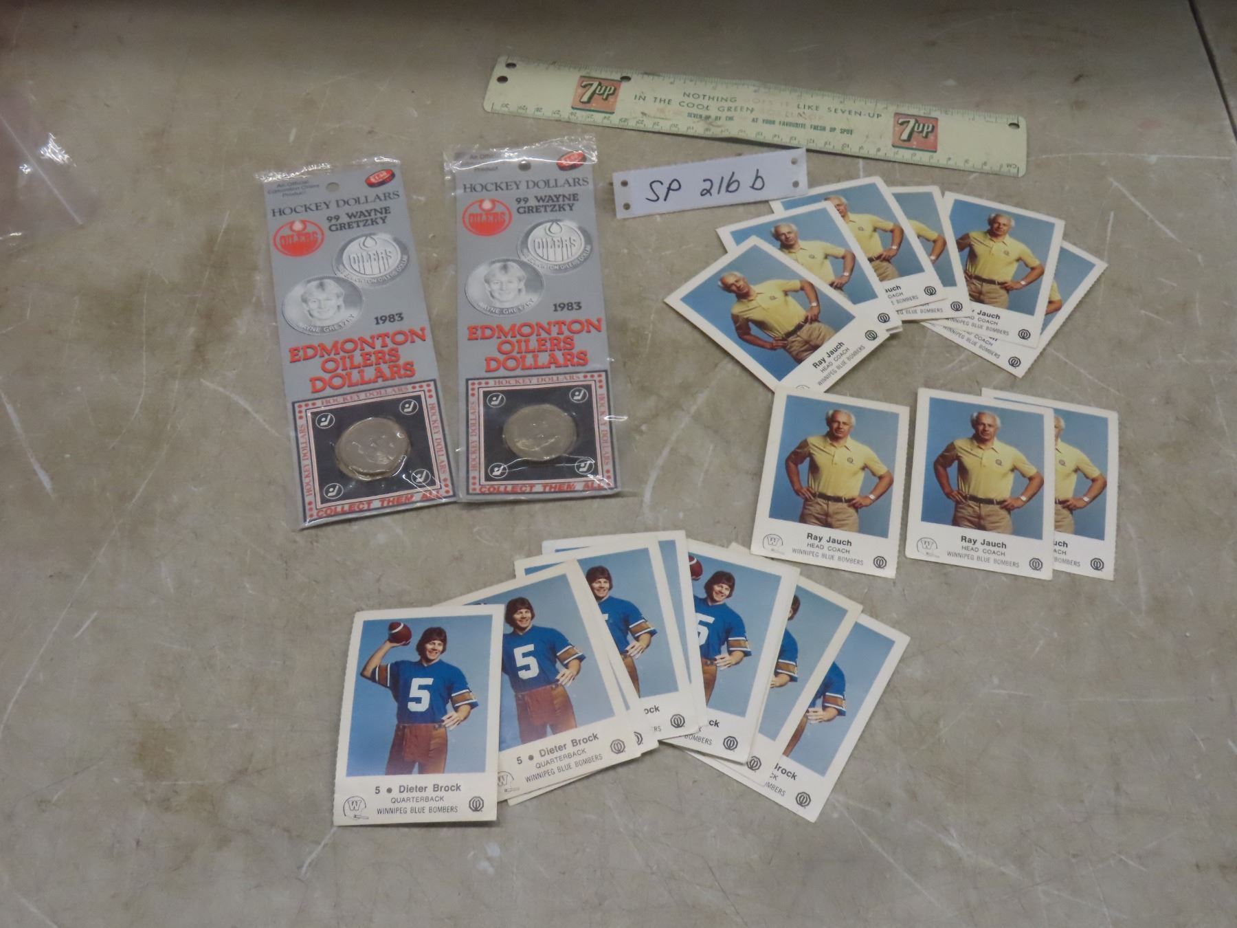 Dieter Brock and Ray Jauch Winnipeg Blue Bombers Football Cards, 7-UP Metal 12 Inch Ruler and Hockey Dollars: Wayne Gretzky