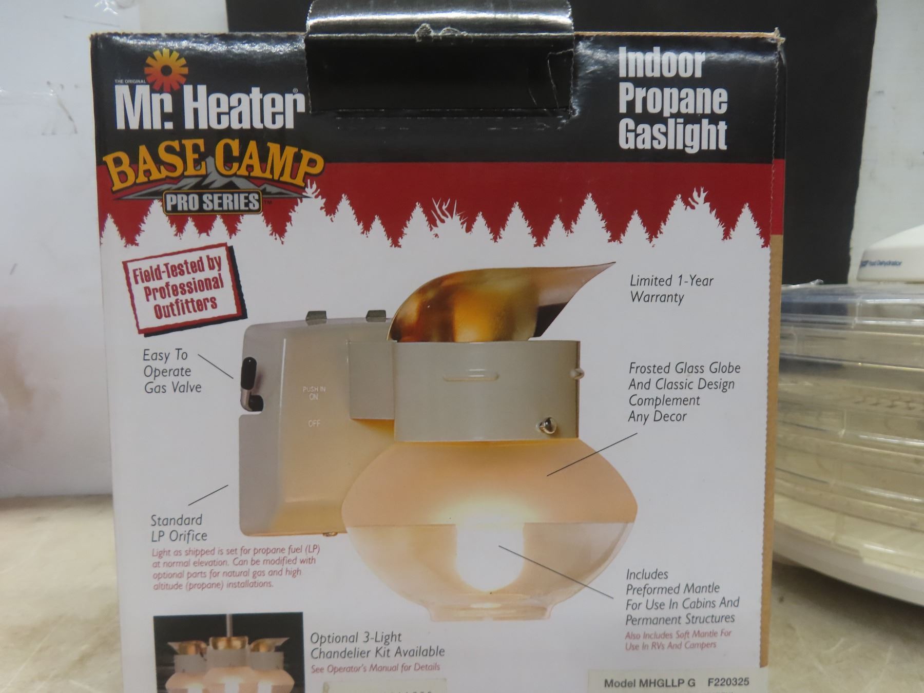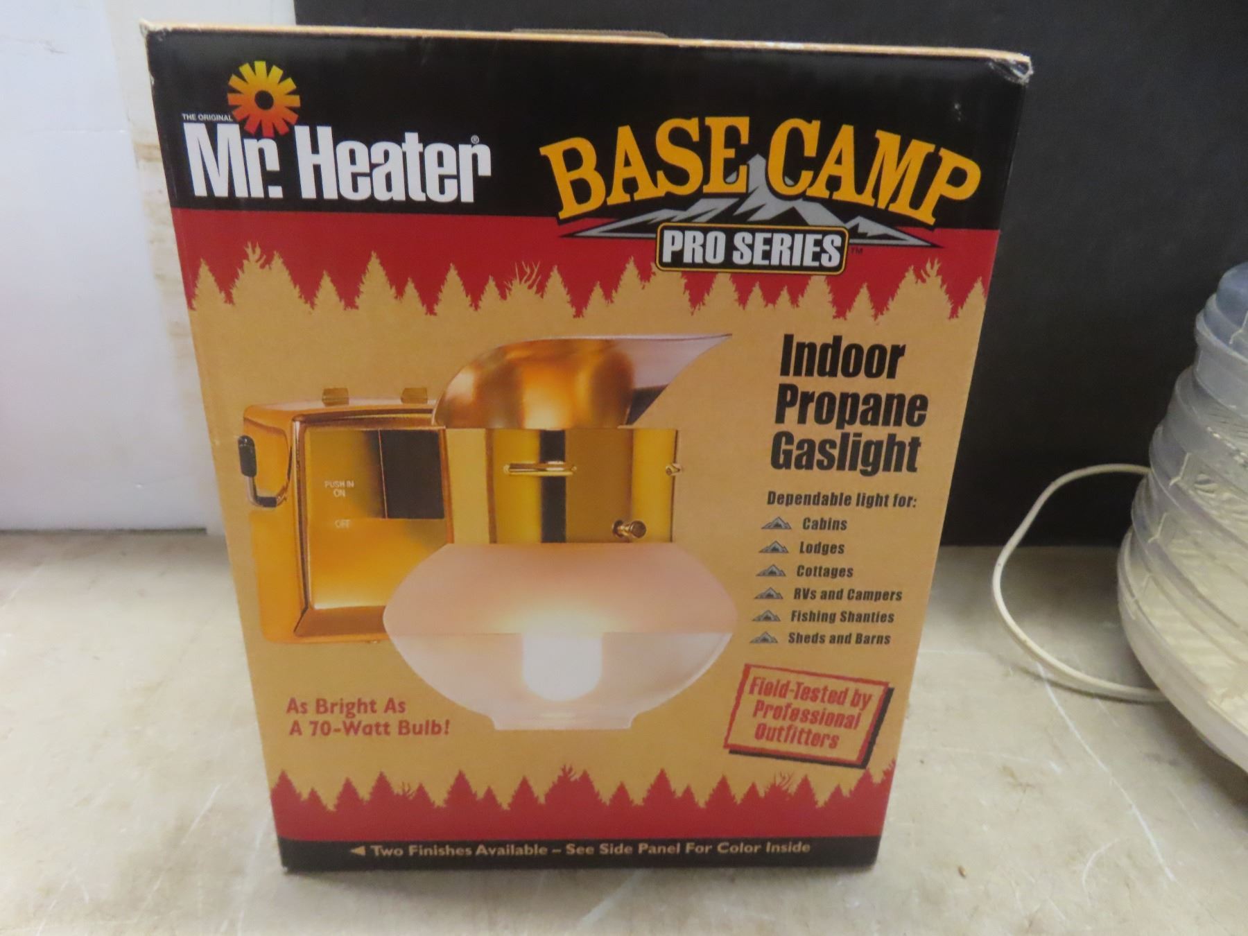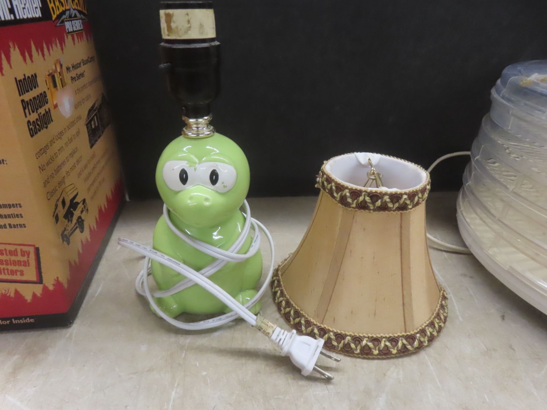 Food Dehydrator, New Mr. Heater Indoor Propane Gas Light, and Ceramic Bedside Lamp (9 1/2" High) With Shade