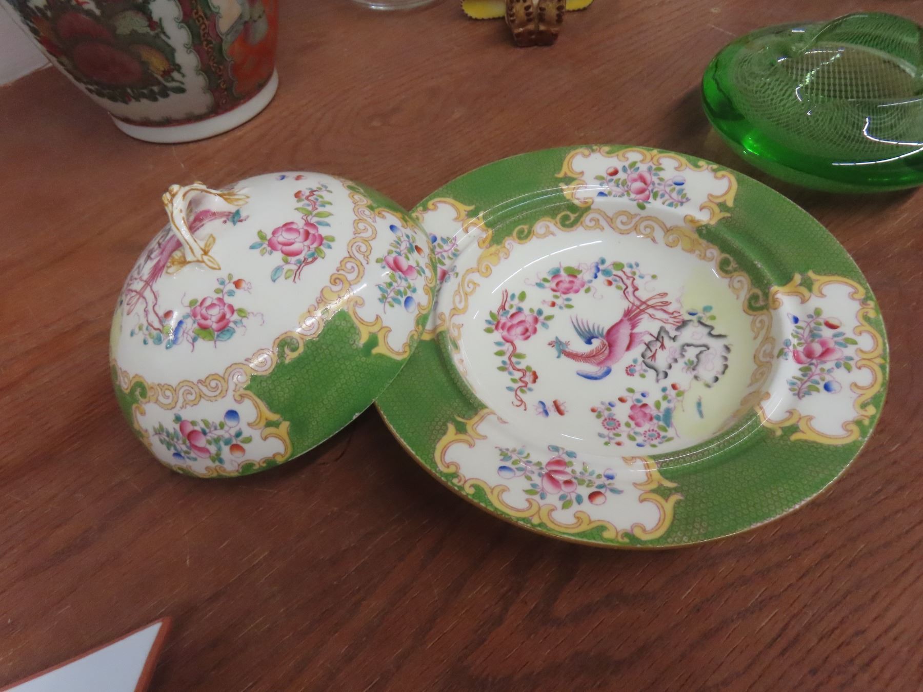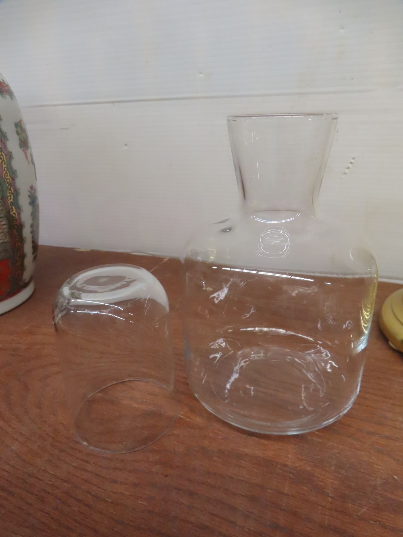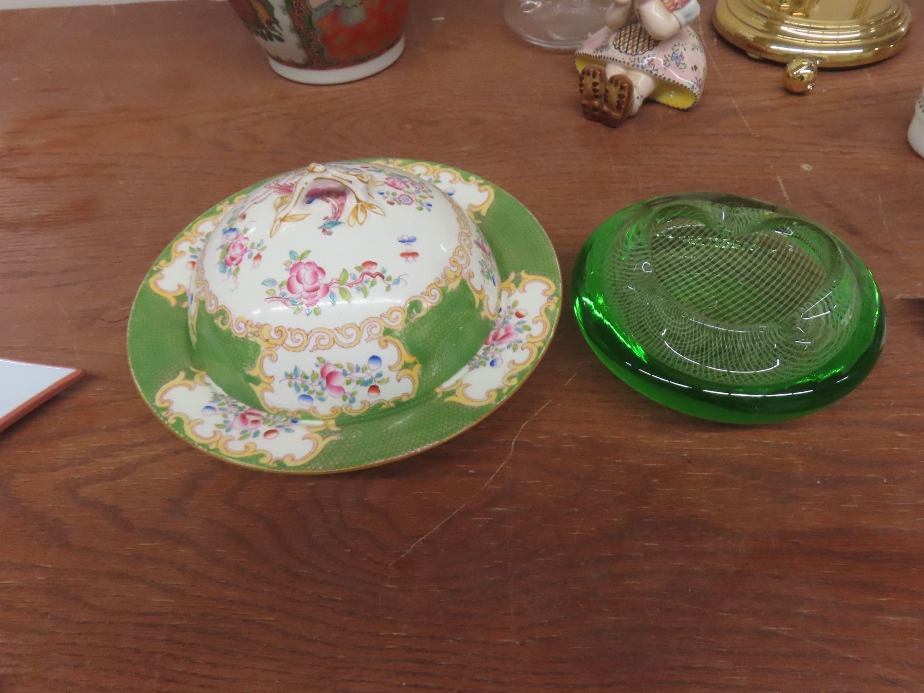Art Glass Ashtray, Covered China Butter Dish, 4 Coffee Mugs, Vase, Figurine, Anniversary Clock With Damage