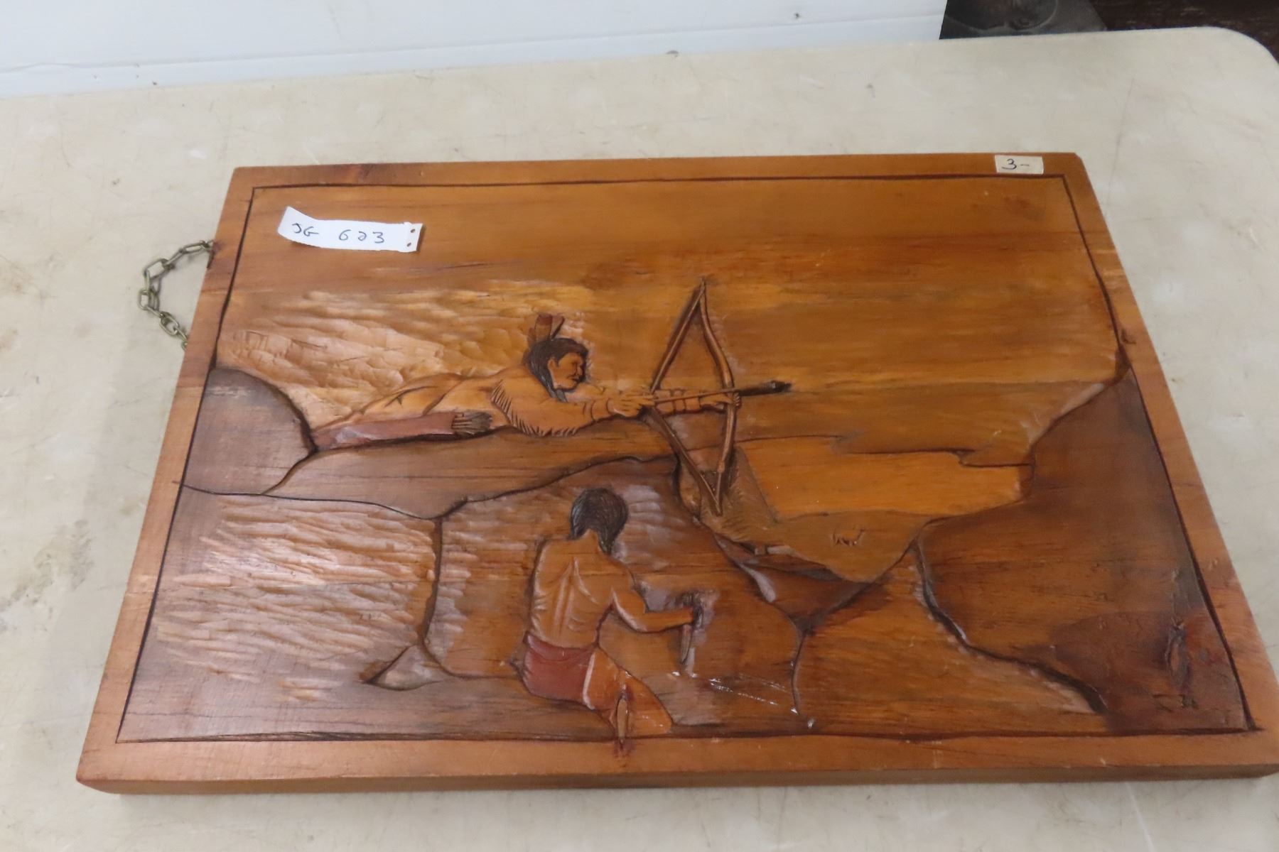 Lot 623 Native Indigenous Wooden Carving of Hunters by Murray Courchene, Finished by Lillian Fontaine, "