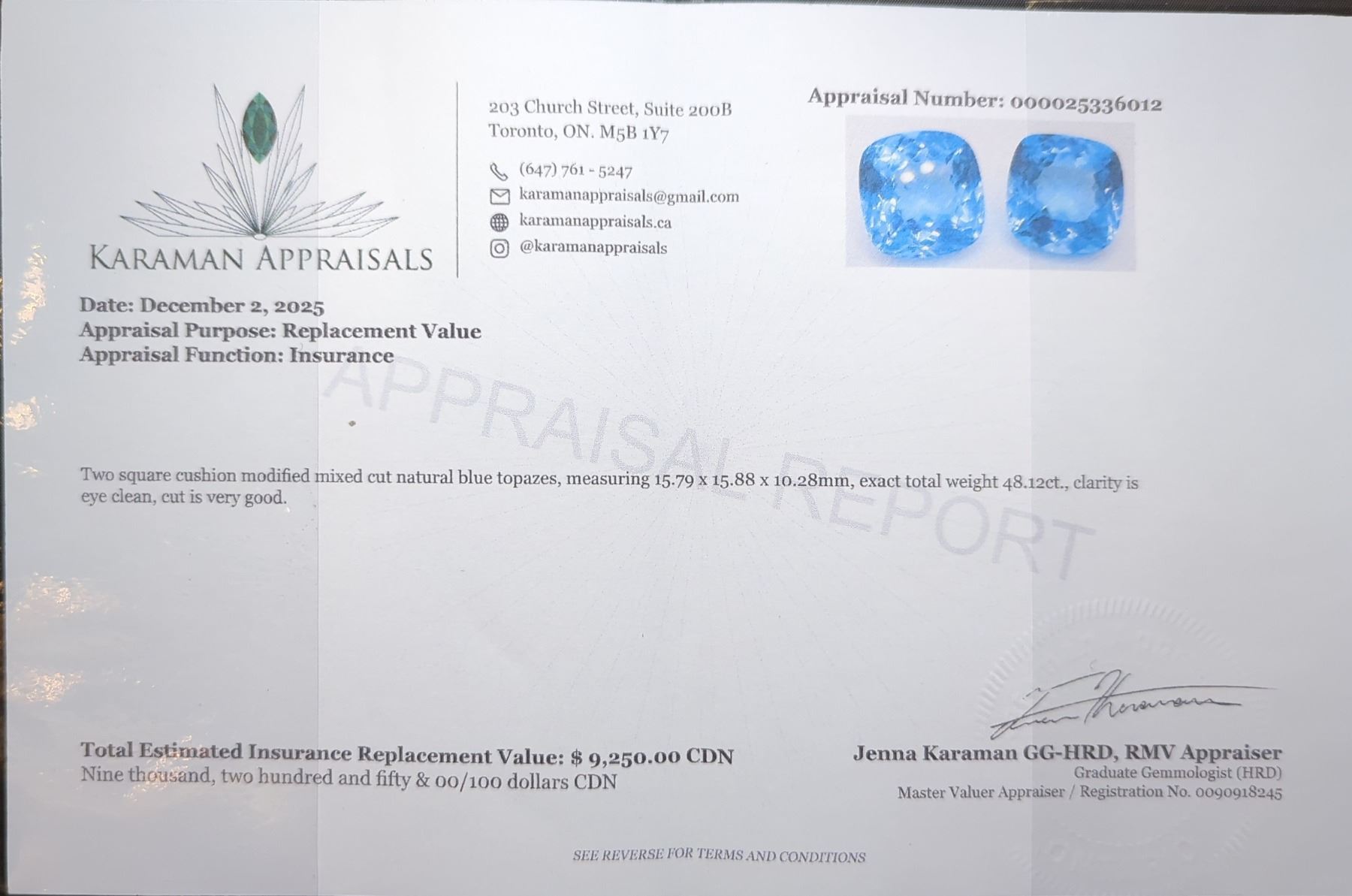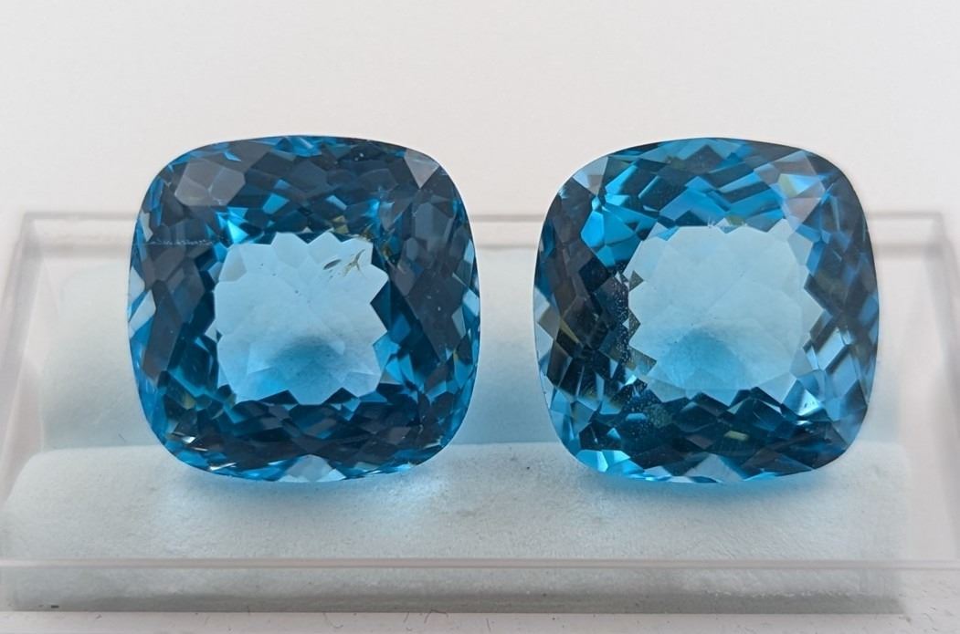 48.12 ct Certified Royal Blue Topaz gemstone Pair ($9,250 Appraisal)