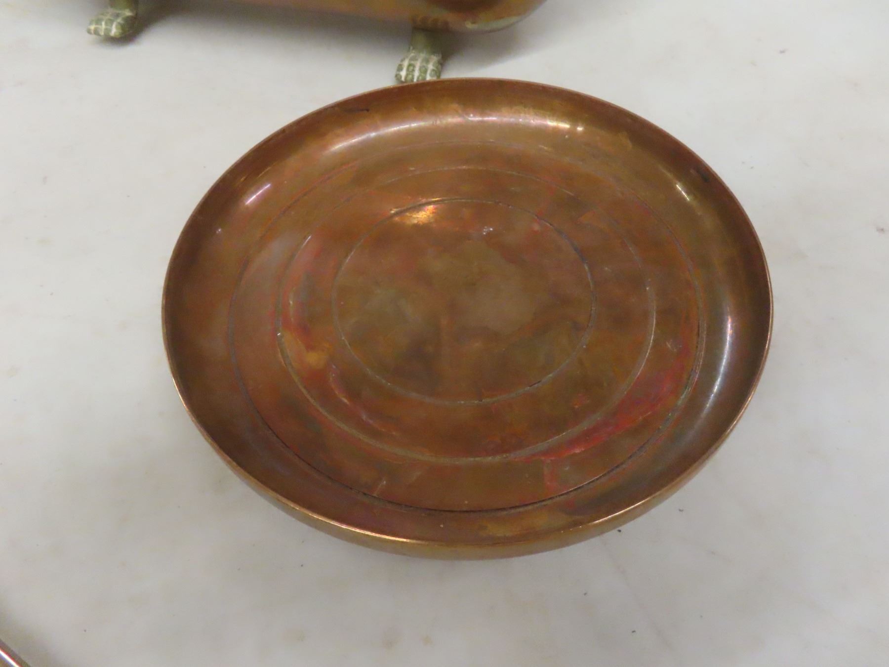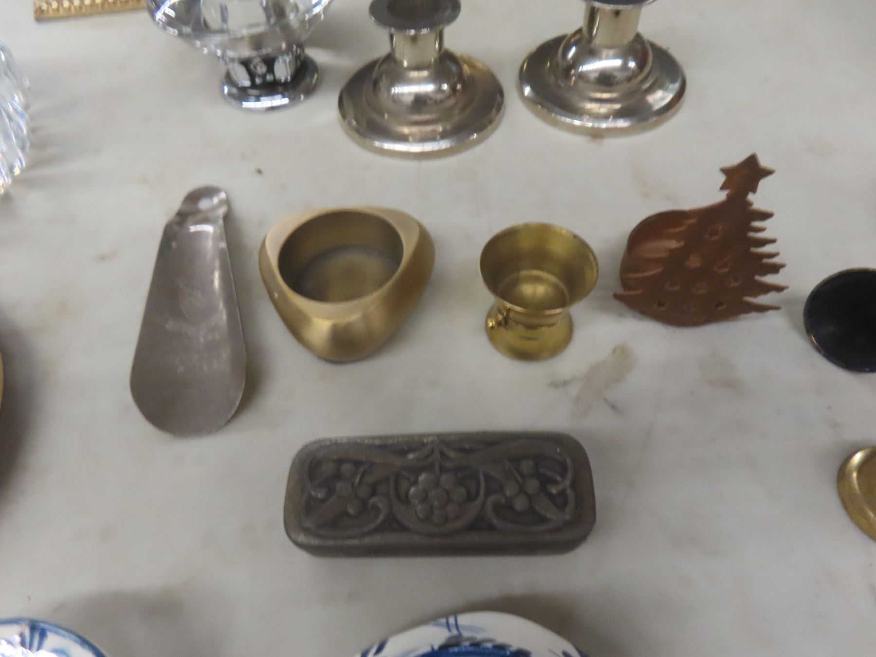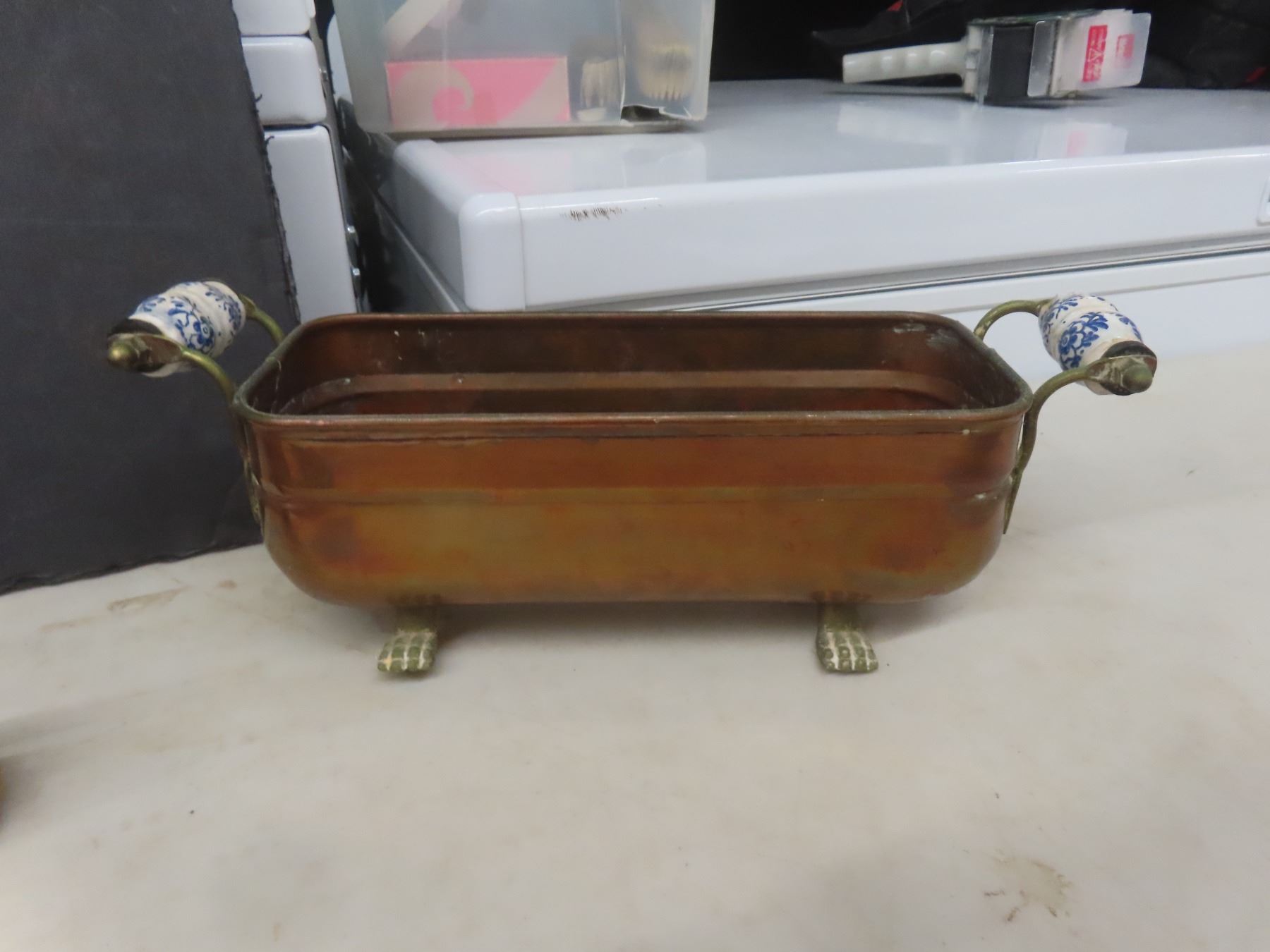 Lot 812 Miniature Copper Planter, Brass Candle Holders, Candlestick Holders, Crystal Ashtray